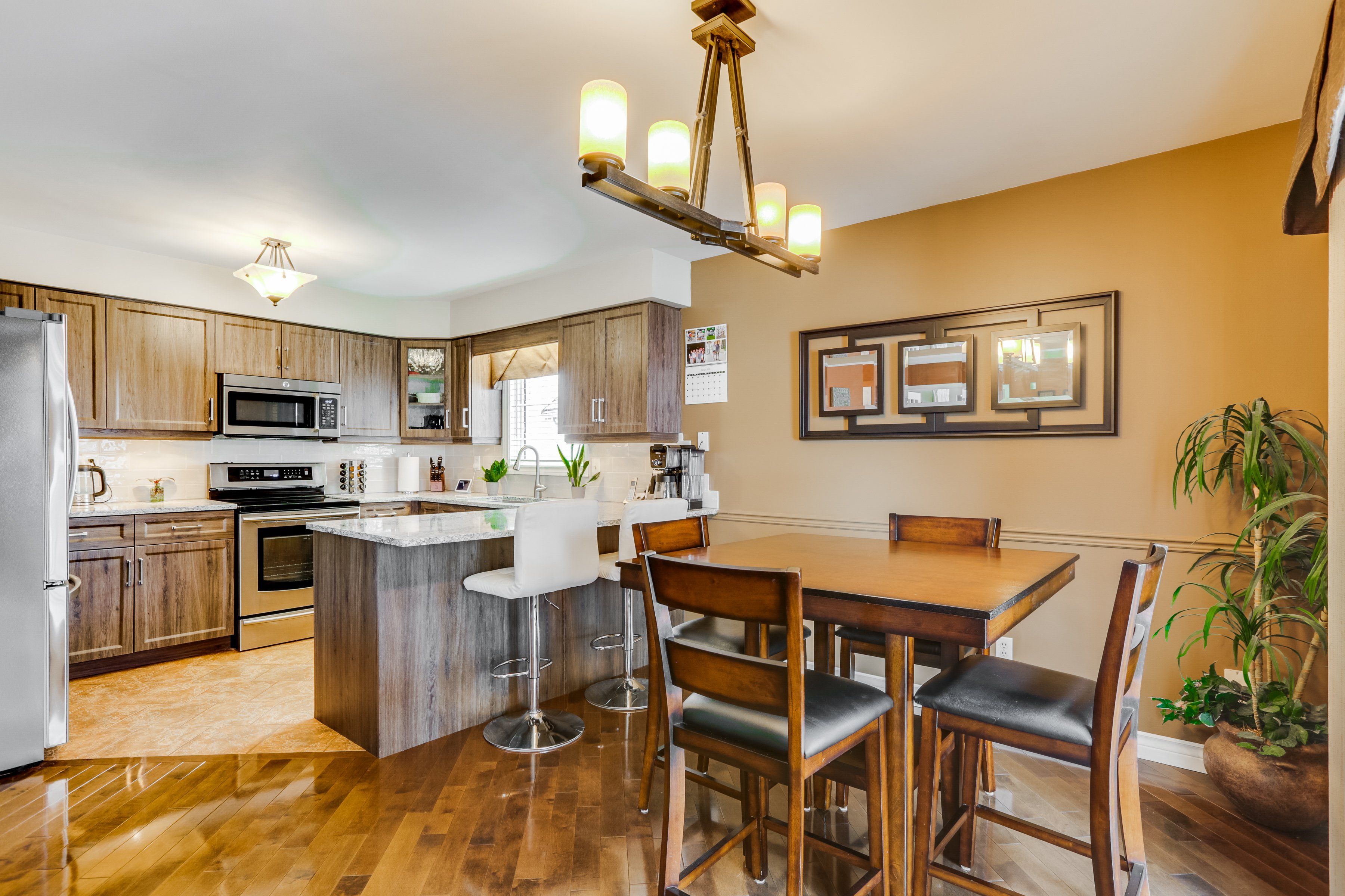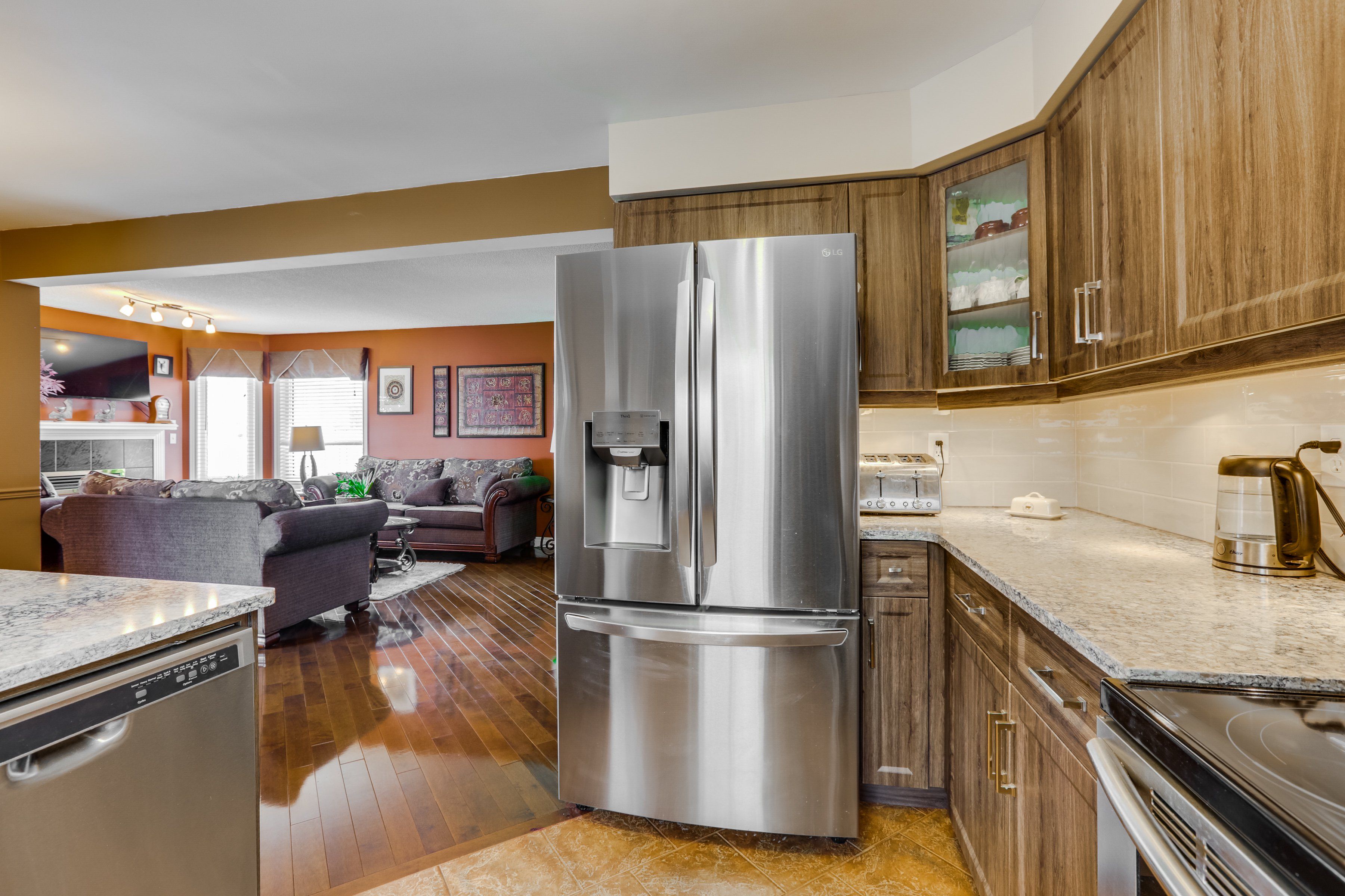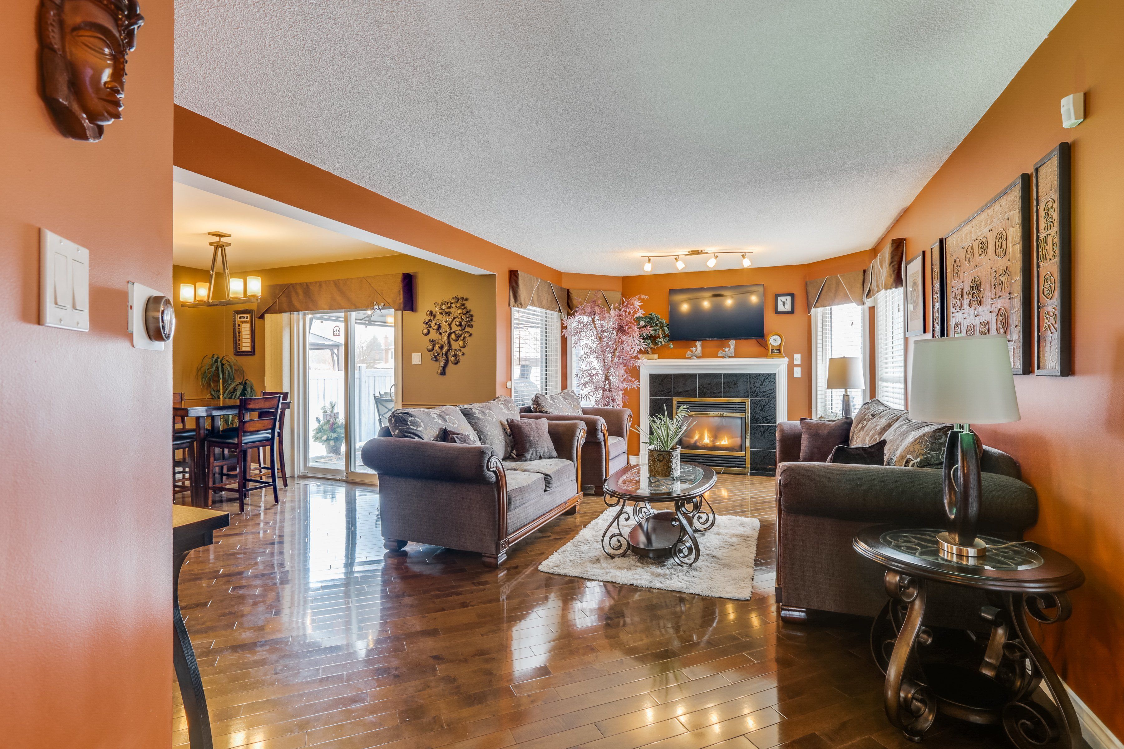This spacious 2-storey, detached home has instant appeal starting with its charming wrap-around covered front porch & welcoming sitting area. The double car garage is upgraded with a new electric vehicle charger and smart organization with an enclosed ceiling storage system. Step inside to a bright, double-height foyer & enjoy completely carpet-free living throughout the home. The main level features a generous living room anchored by a cozy gas fireplace, a convenient 2-piece powder room, and a beautifully designed kitchen complete with stainless steel appliances, abundant counter space, & a breakfast bar ideal for casual meals or entertaining. The adjoining dinette overlooks the tastefully landscaped backyard, creating a seamless indoor-outdoor connection. A large, separate dining room with double french doors offers an elegant space for hosting family gatherings & special occasions. Upstairs, you'll find 3 well-proportioned bedrooms, including a spacious primary retreat with a walk-in closet and direct access to the dual-entry 5-piece bathroom, thoughtfully designed to also serve the hallway. The fully finished basement expands your living space with a bright rec-room, a full 3-piece bath, laundry room, cold room, & impressive tucked-away storage that keeps everything organized & clutter-free. Outside, the fully enclosed backyard is ideal for entertaining, featuring a cement side walkway, composite deck, composite fencing on one side, manicured grounds and hardscape landscaping, & beautiful mature trees, including a stunning beech tree & japanese maples in both the front & back yards. The sellers are flexible with possession & open to negotiating the furniture for buyers interested in a fully furnished option. Near hwy 401 & veterans memorial parkway, you'll enjoy quick access across the city, the airport, shopping, & nearby businesses, making everyday commuting effortless. This is a home that truly reflects pride of ownership inside and out.