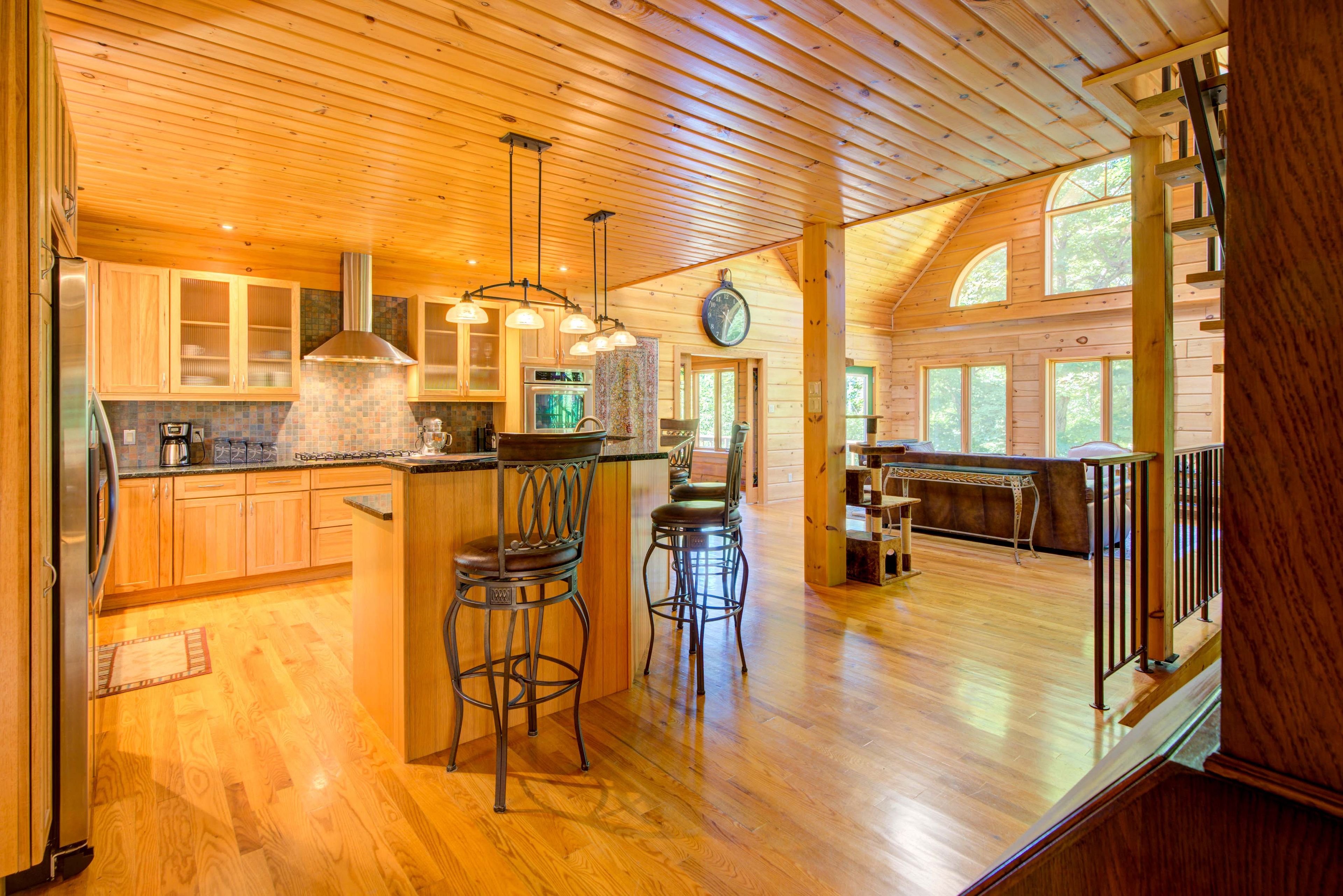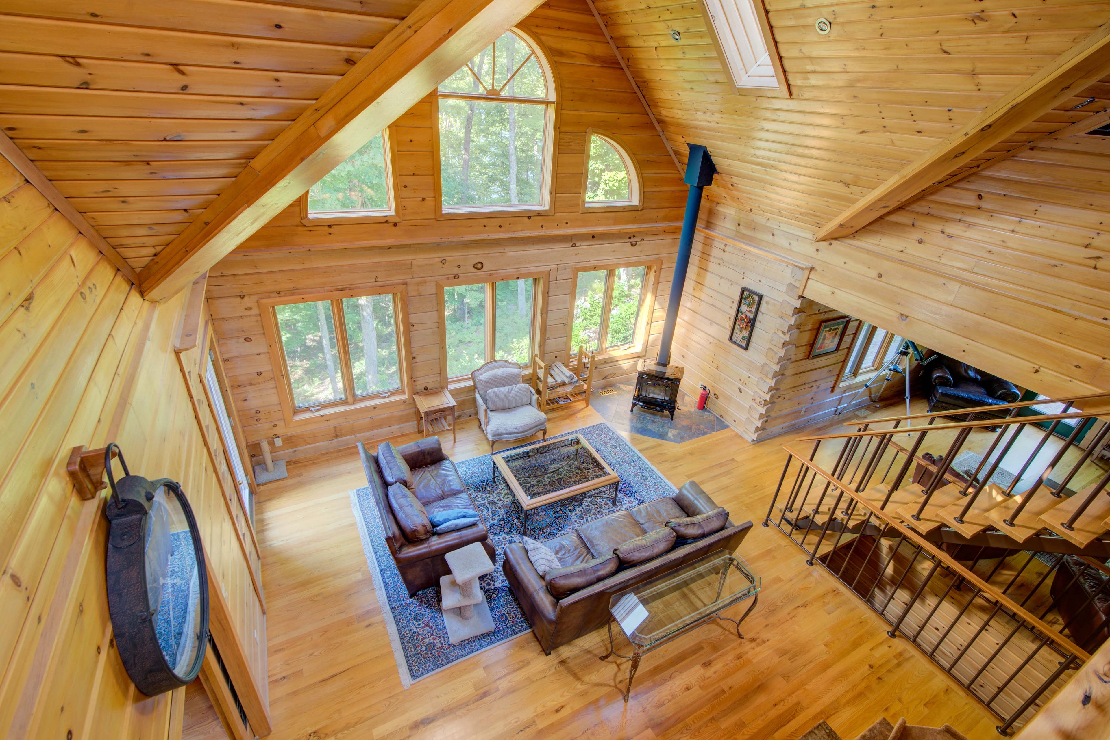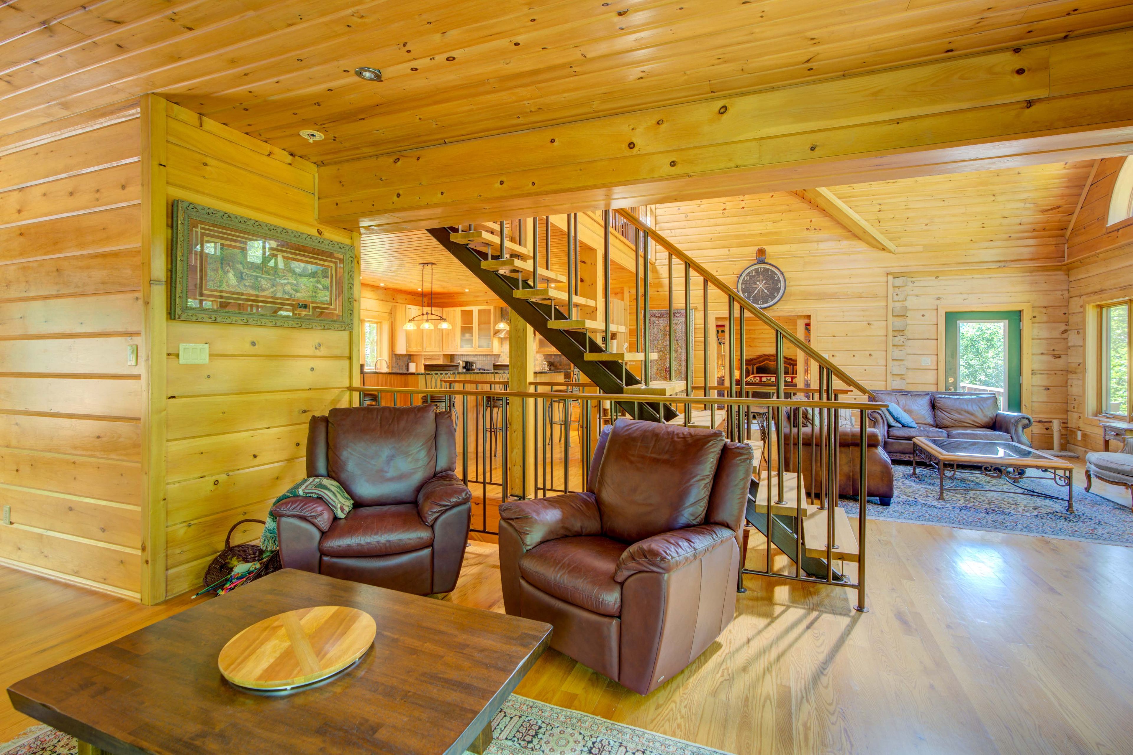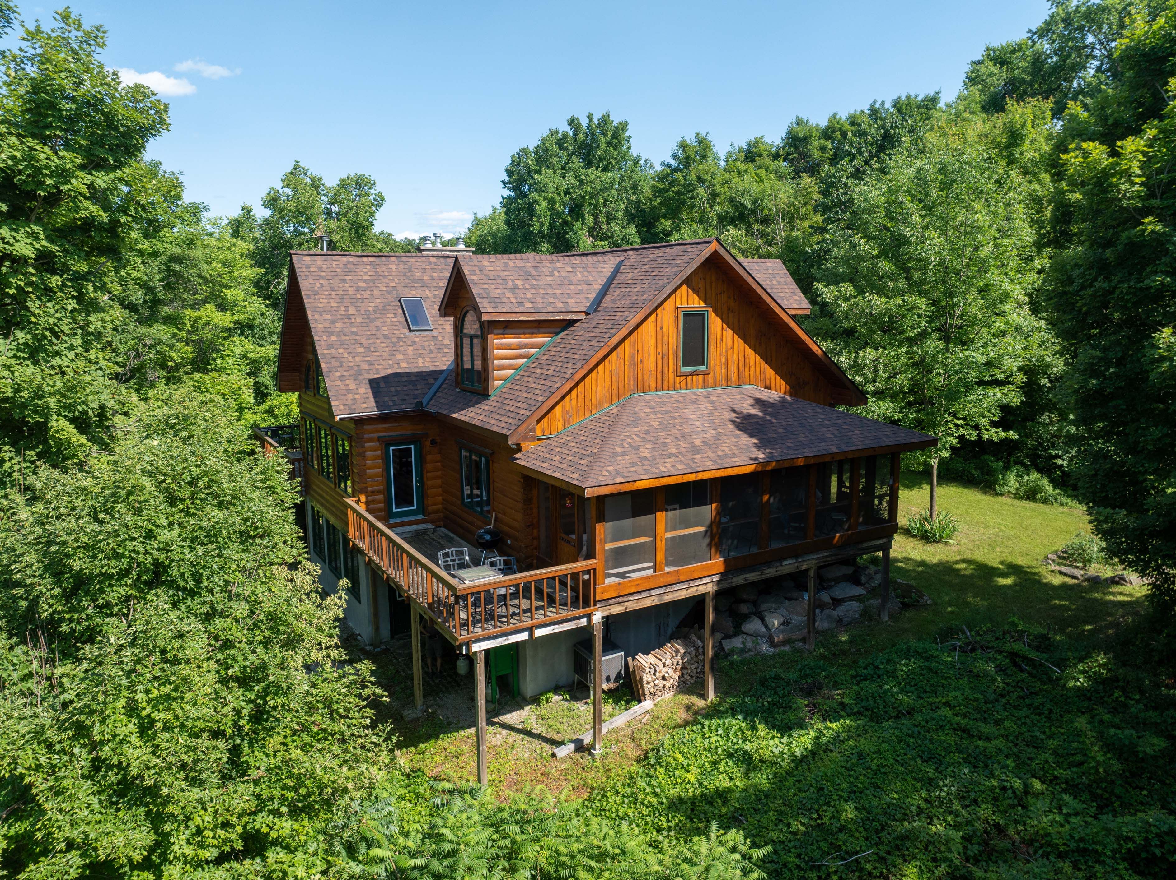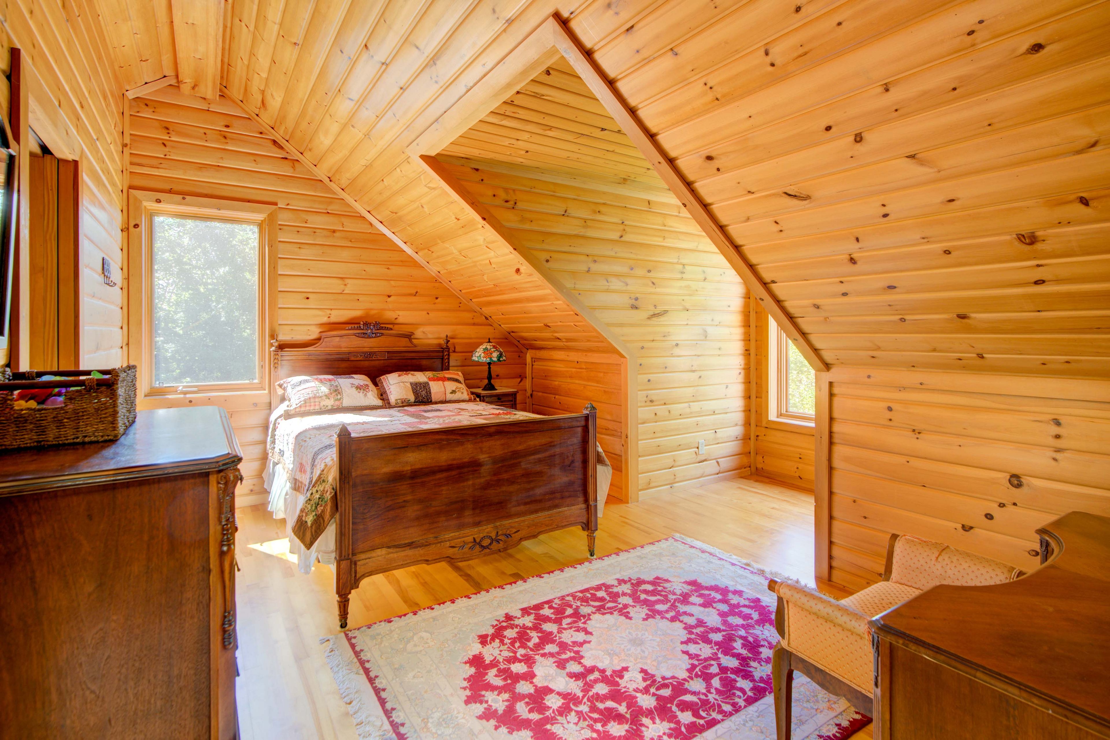Hidden gem on little crosby lake just north of westport! This stately colonial concept log home sits immersed in trees on 6 acres of land with total privacy. Upon entering the home, you will find yourself in awe looking at the grand living room with beautiful windows and large custom hickory kitchen with a 6 burner viking cooktop, double wall ovens, miele dishwasher, granite counter tops and amazing locally sourced red oak flooring. This level has a family room with a granite boulder fireplace, an attached dining area, a 2pc powder room and a welcoming foyer. The primary bedroom has an attached 5pc ensuite with whirlpool tub and access to a large bronze-screened porch which is a wonderful place for your morning coffee. Walking up the custom oak and steel frame stairs to the second level, you will see a large loft area, two bedrooms and a 3pc bathroom. There is a jotul propane stove in one of the bedrooms and all bedrooms have birch flooring. The walkout basement has 9' high ceilings, a workshop, craft room, undeveloped recreation room with a woodstove, cold room and laundry room. There are two doors that access the yard from this level. The house is serviced by a drilled well and septic system and includes a water softener, heat pump, 200 amp electrical service and two 40-gallon electric water heaters. Wandering down the path toward the lake, you will pass a 2-bedroom cedar bunkie with plenty of space for guests. Continuing along the path to the lake brings you to the dock area with a natural shoreline that is a perfect spot for your boat. Along the shoreline to the west is a lovely platform for sitting and enjoying deeper swimming waterfront. Looping back toward the house, there is a catwalk section on the path bringing you back home. There is a large garden shed behind the house - perfect for all your yard equipment. This stunning property is located just 10 minutes north of westport with easy access to all amenities and unique dining and shopping options.