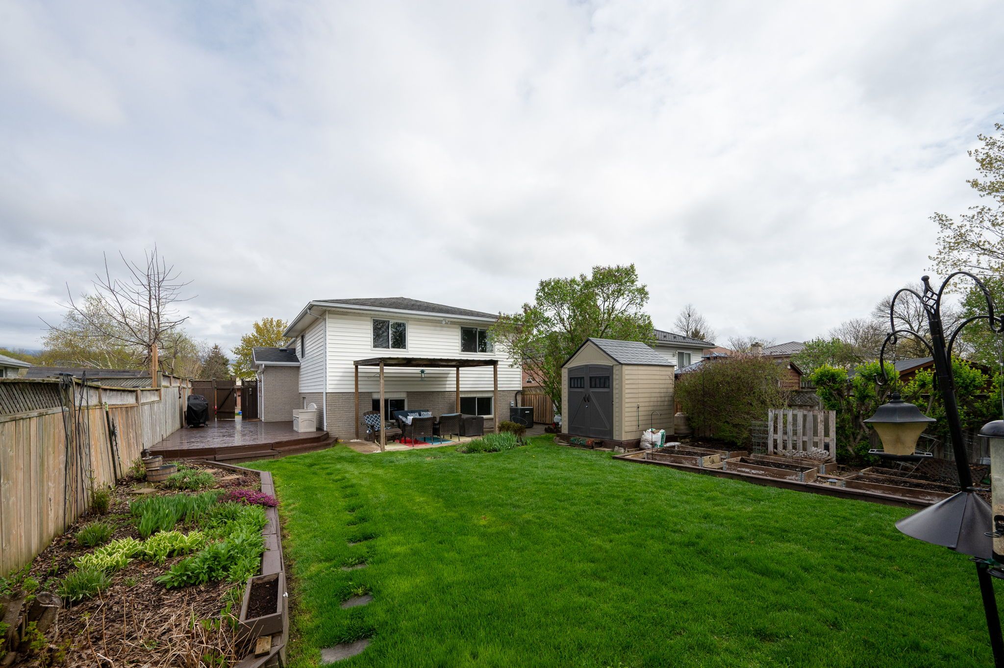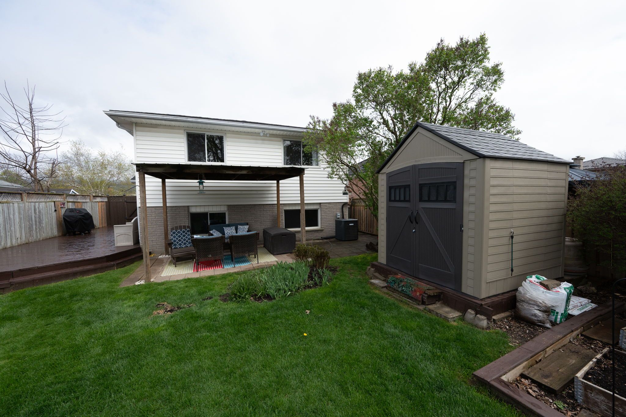 Welcome to this lovingly maintained raised bungalow located in trafalgar heights-set on one of the deepest lots on the street and ready for its next chapter. Inside, a bright, traditional layout offers well-defined spaces that flow seamlessly. The spacious foyer provides plenty of storage and convenient secondary access door to the yard with endless possibilities. Upstairs, the sun-filled living room connects effortlessly to the dining area-perfect for everyday living and entertaining. The kitchen is both functional and stylish, featuring updated cabinetry and countertops along with a pantry. Three comfortable bedrooms and a full bath complete the main level. The lower level offers exceptional versatility, with two separate living areas-one anchored by a cozy gas fireplace-along with a fourth bedroom, second full bathroom, and laundry. Step outside to an expansive backyard with two sheds (one with power), ideal for storage, hobbies, or a workshop. You can't beat this location, close to highways making your commute a breeze and ideally located close to public transit, schools, shopping, restaurants, and more! This home offers everyday convenience in a well-established community. A well-cared-for home offering space to grow, relax, and entertain-this one truly feels like home.