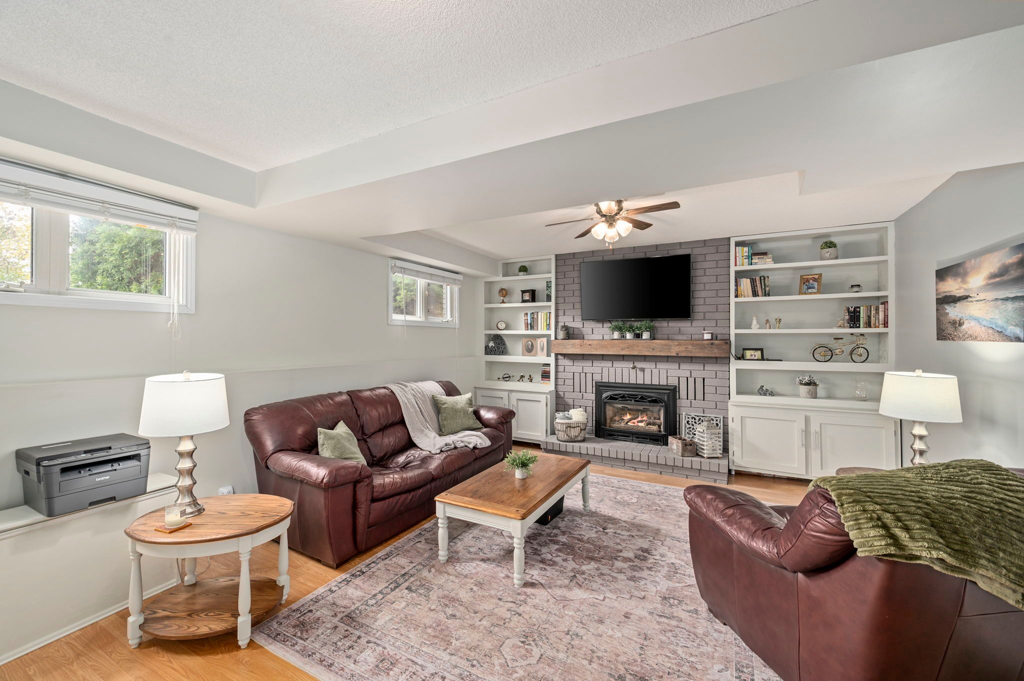 • Versatile lower level with two living areas and a cozy gas fireplace.
