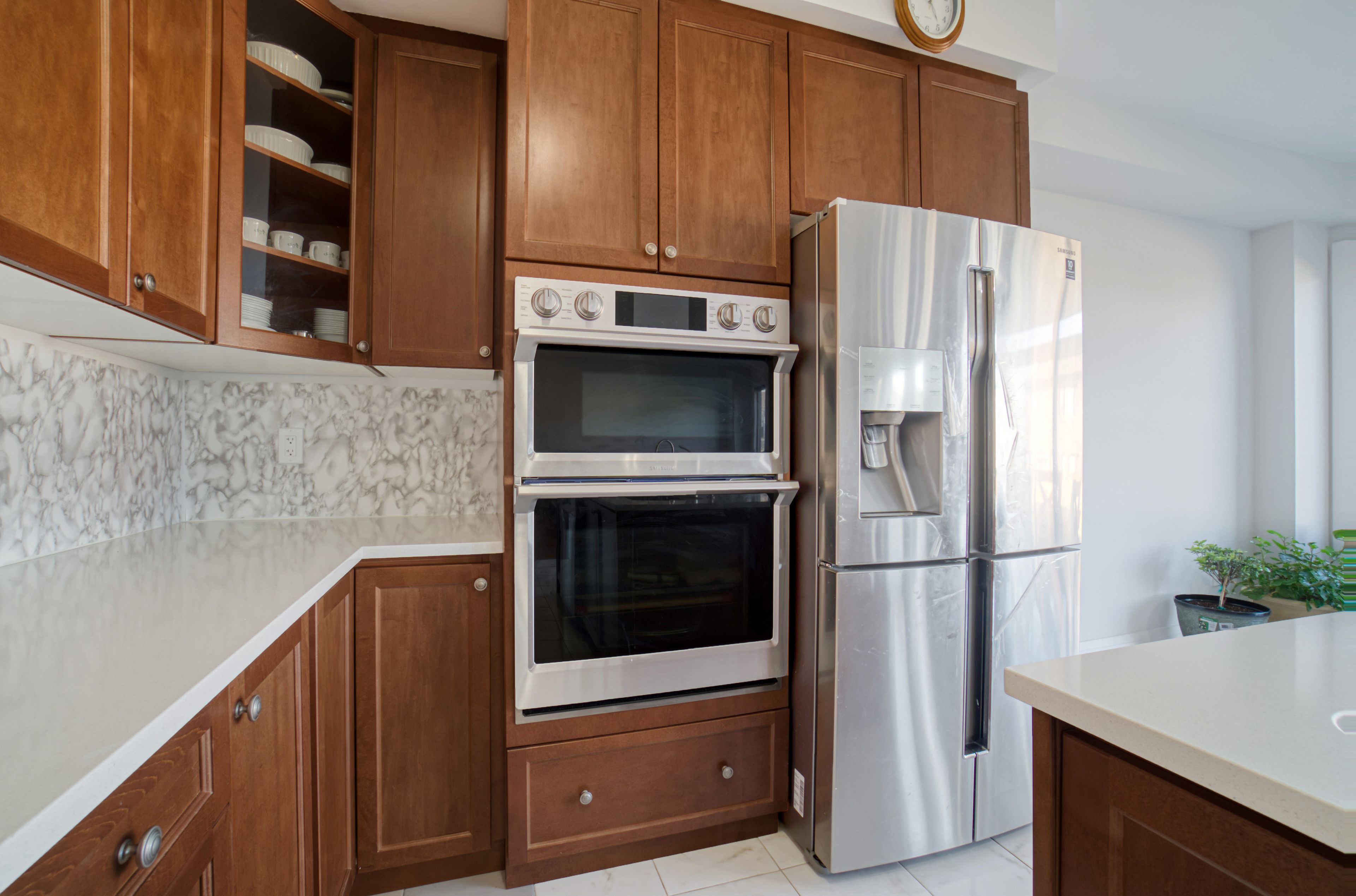 • Well-equipped kitchen with built-in appliances and ample cabinet space.