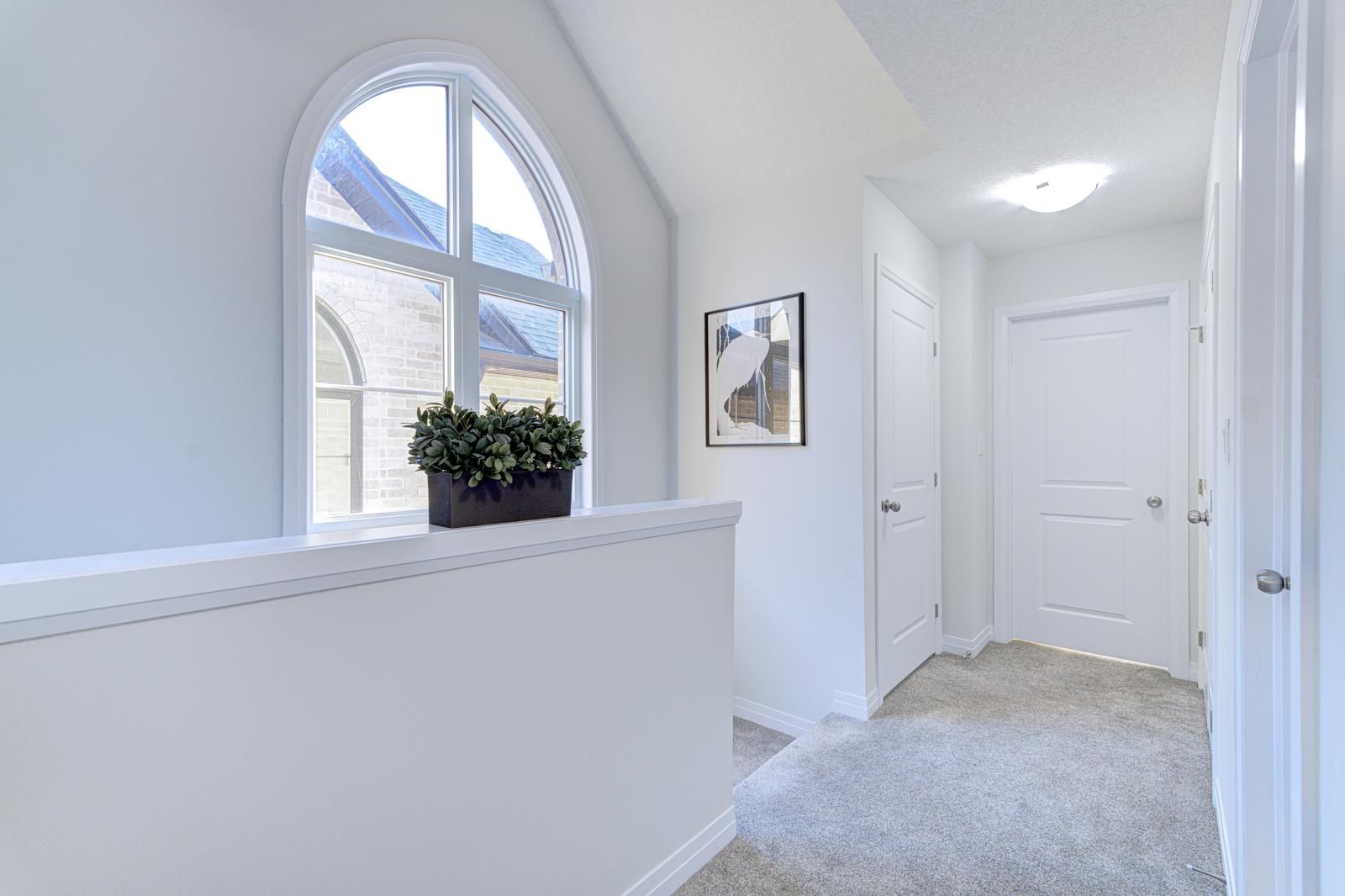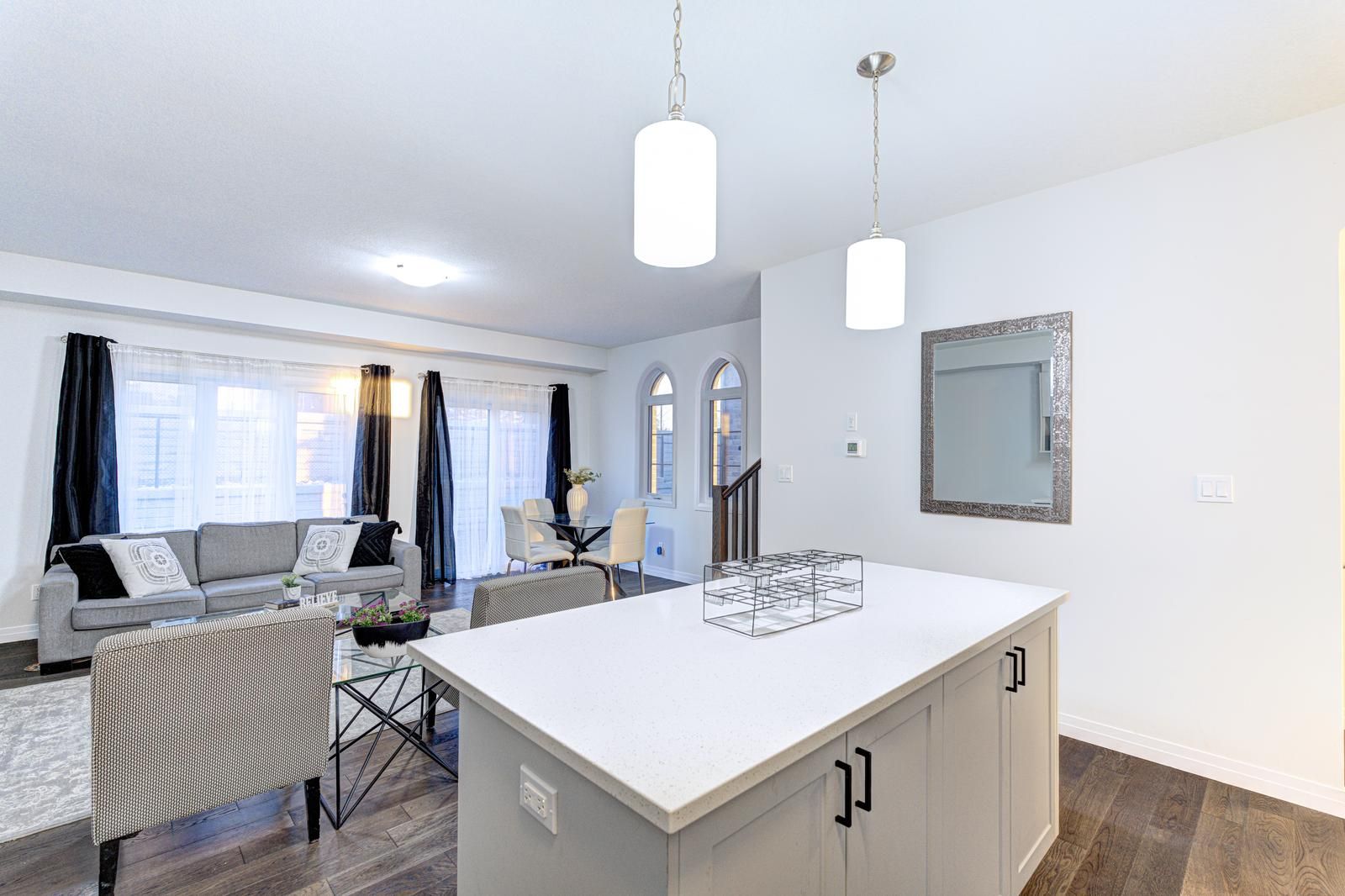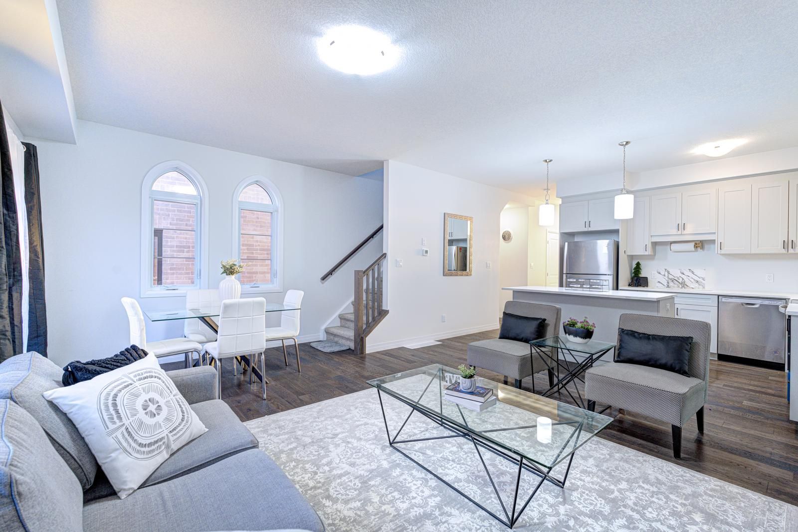 Welcome to 142 queensbrook crescent, a beautifully designed freehold end-unit townhome in the highly desirable westwood village community. This home sits on a premium lot and comes with the added benefit of no condo fees. The main floor features an open-concept layout with elegant engineered hardwood and tile flooring, seamlessly connecting the living, dining, and kitchen areas. The modern kitchen is highlighted by a large island, quartz countertops, and plenty of natural light from the expansive windows, creating a warm and airy atmosphere. Upstairs, you'll find three spacious bedrooms, including a primary suite with a walk-in closet, a luxurious ensuite with double sinks, and a glass walk-in shower. The convenience of second-floor laundry adds even more functionality to the home. Built by ridgeview homes, an award-winning builder, this property showcases quality craftsmanship and premium finishes throughout. Located within a thoughtfully planned community, residents have access to local shops, restaurants, downtown cambridge amenities, parks, scenic trails, and a proposed future school. Don't miss the chance to own a home in one of cambridges most sought-after neighborhoods. Move in with confidence and make it yours.