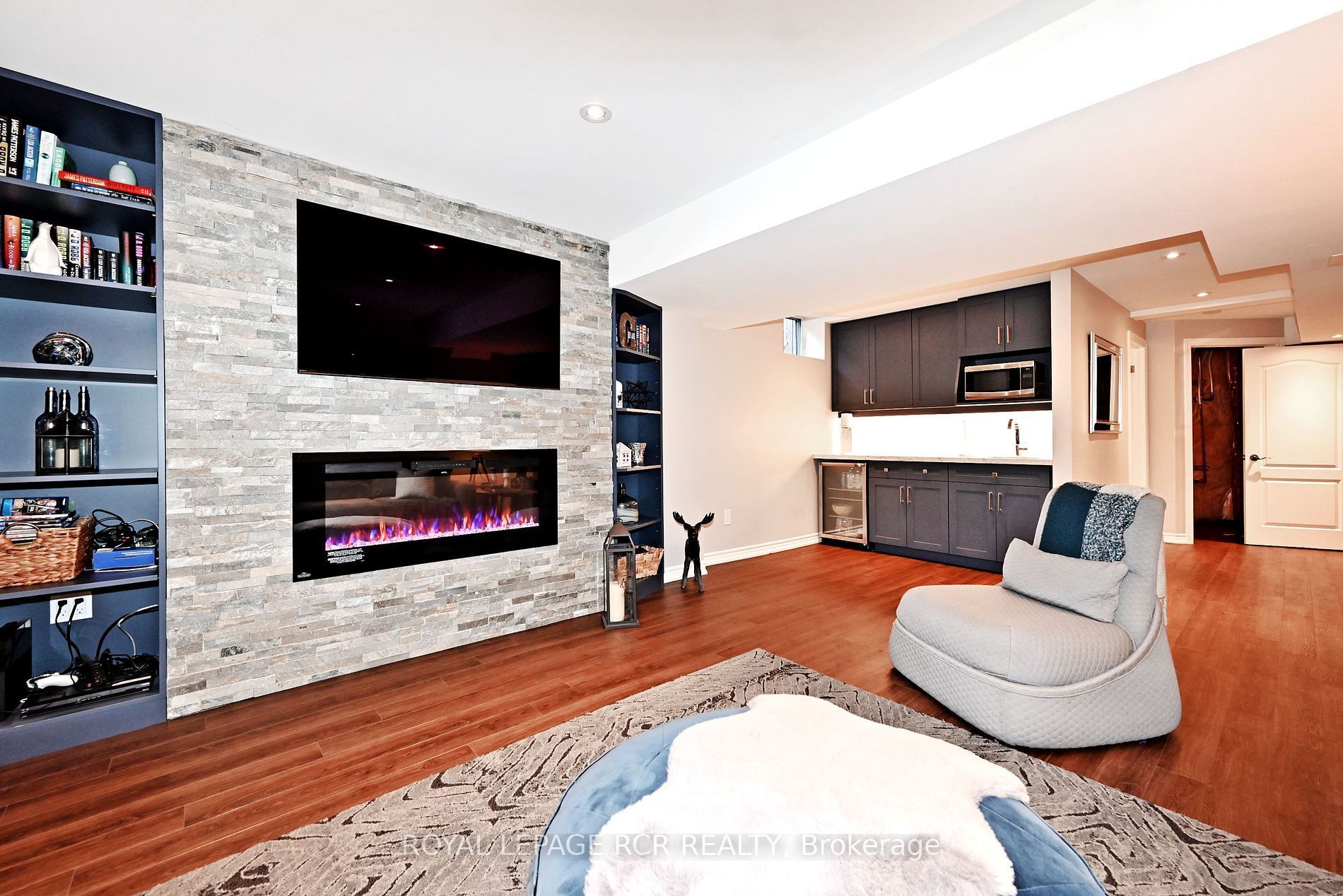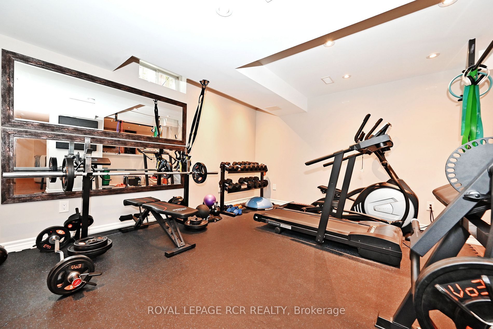 • Finished basement featuring a rec room, gym, and wet bar.