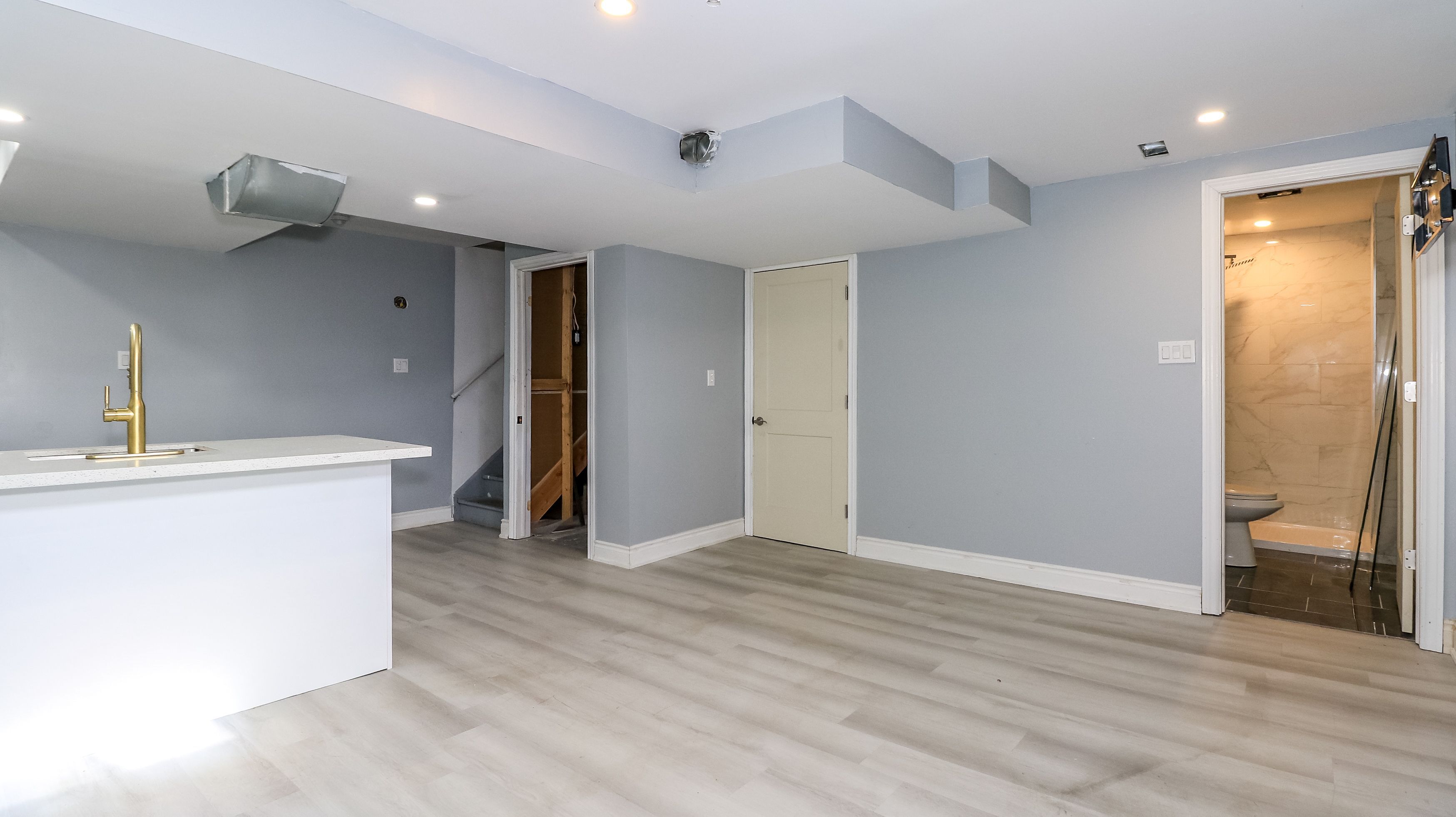 • Finished basement includes a second kitchen and office space.