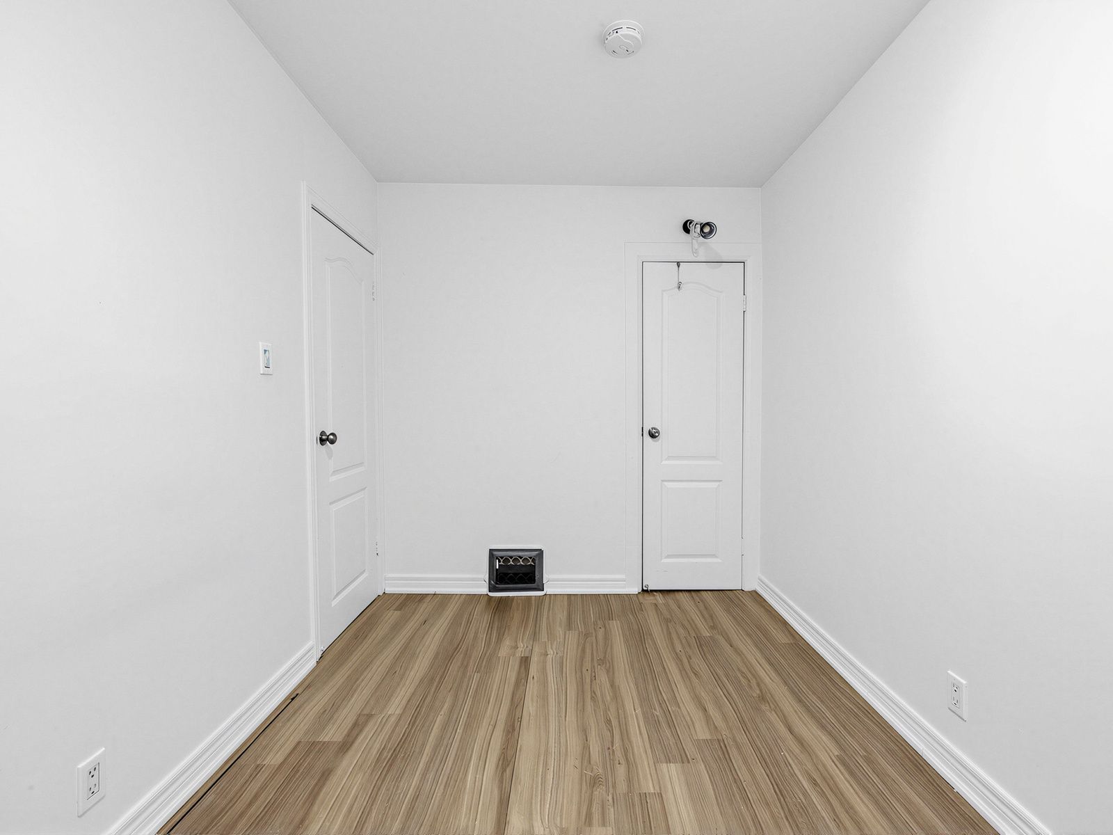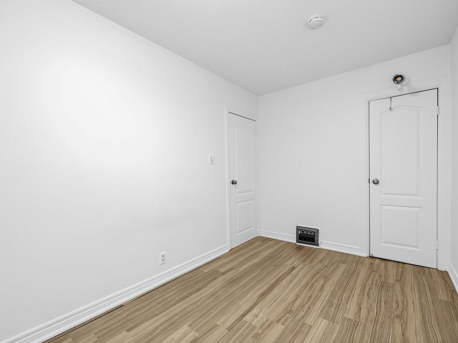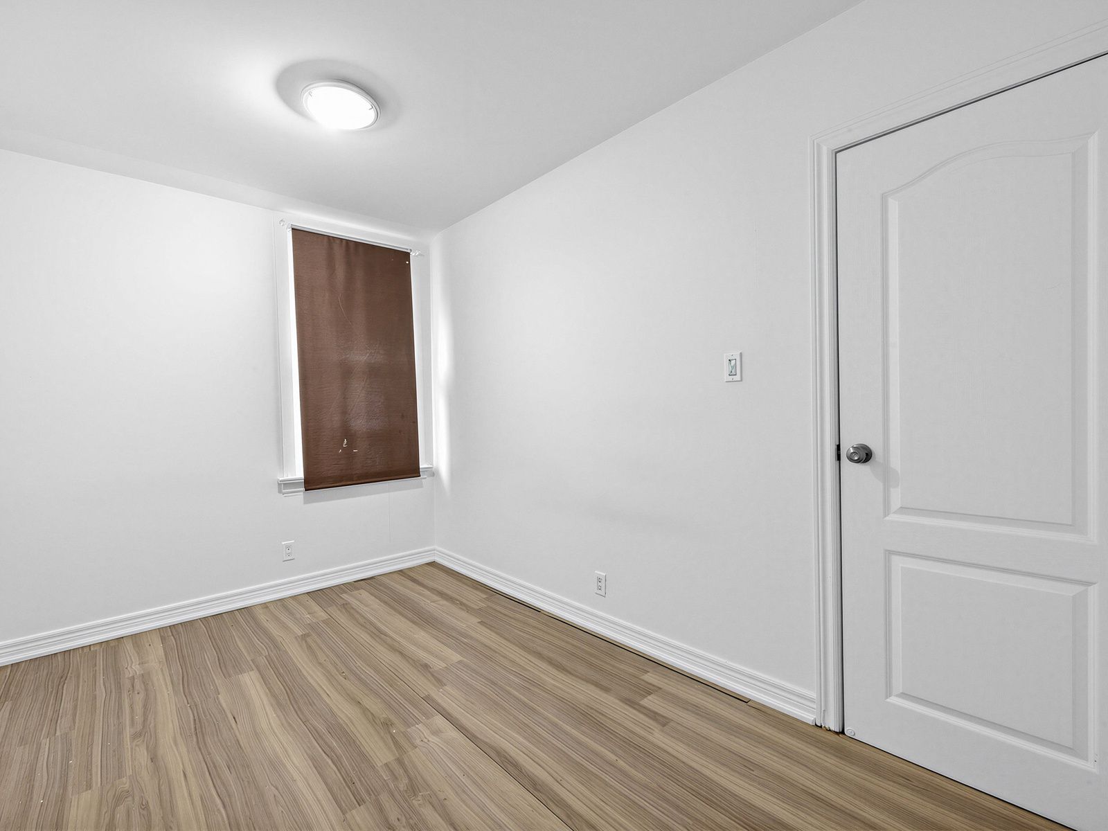 • Bright upper-level 1-bedroom apartment with large windows and laminate floors.