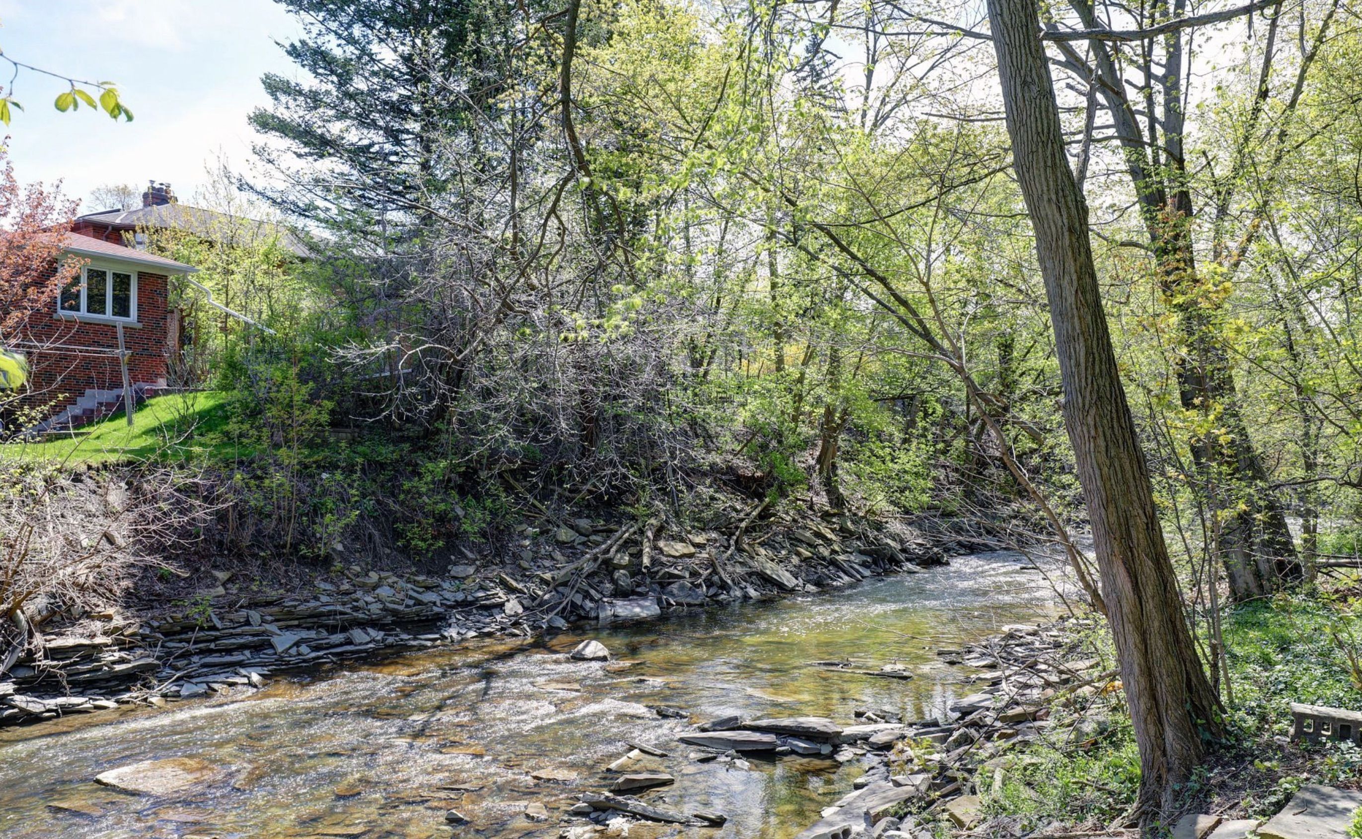 • Spacious 56 x 170 ft lot with peaceful Mimico Creek backdrop.