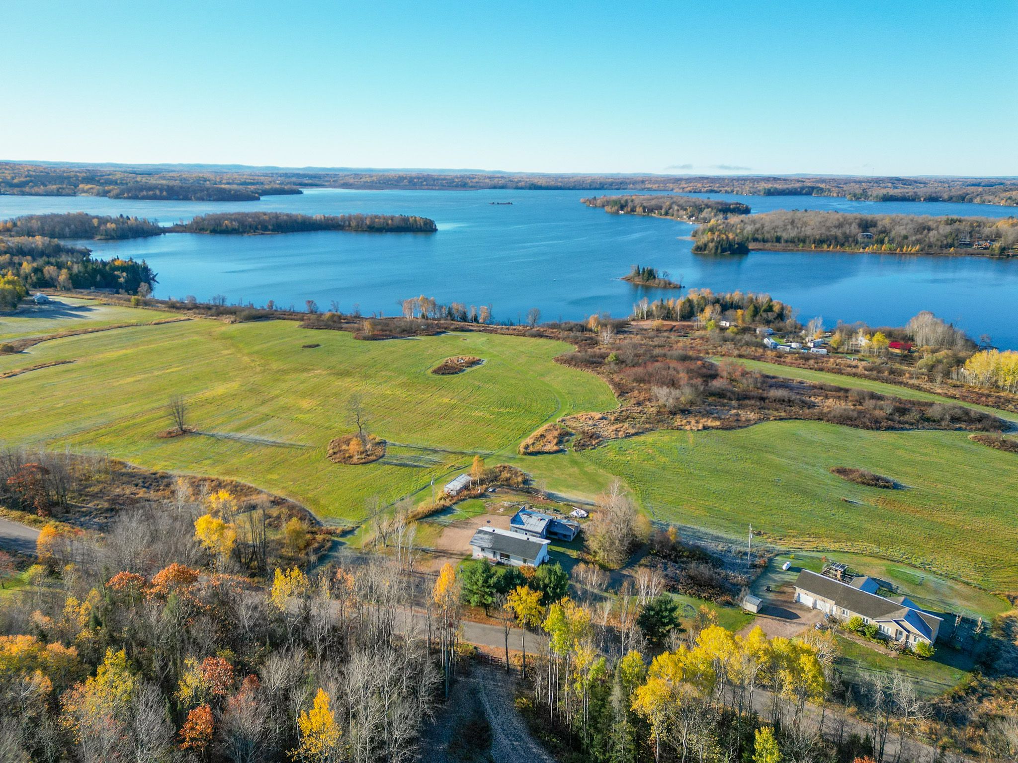 • 21 acres of open fields offering incredible privacy and lake views.
