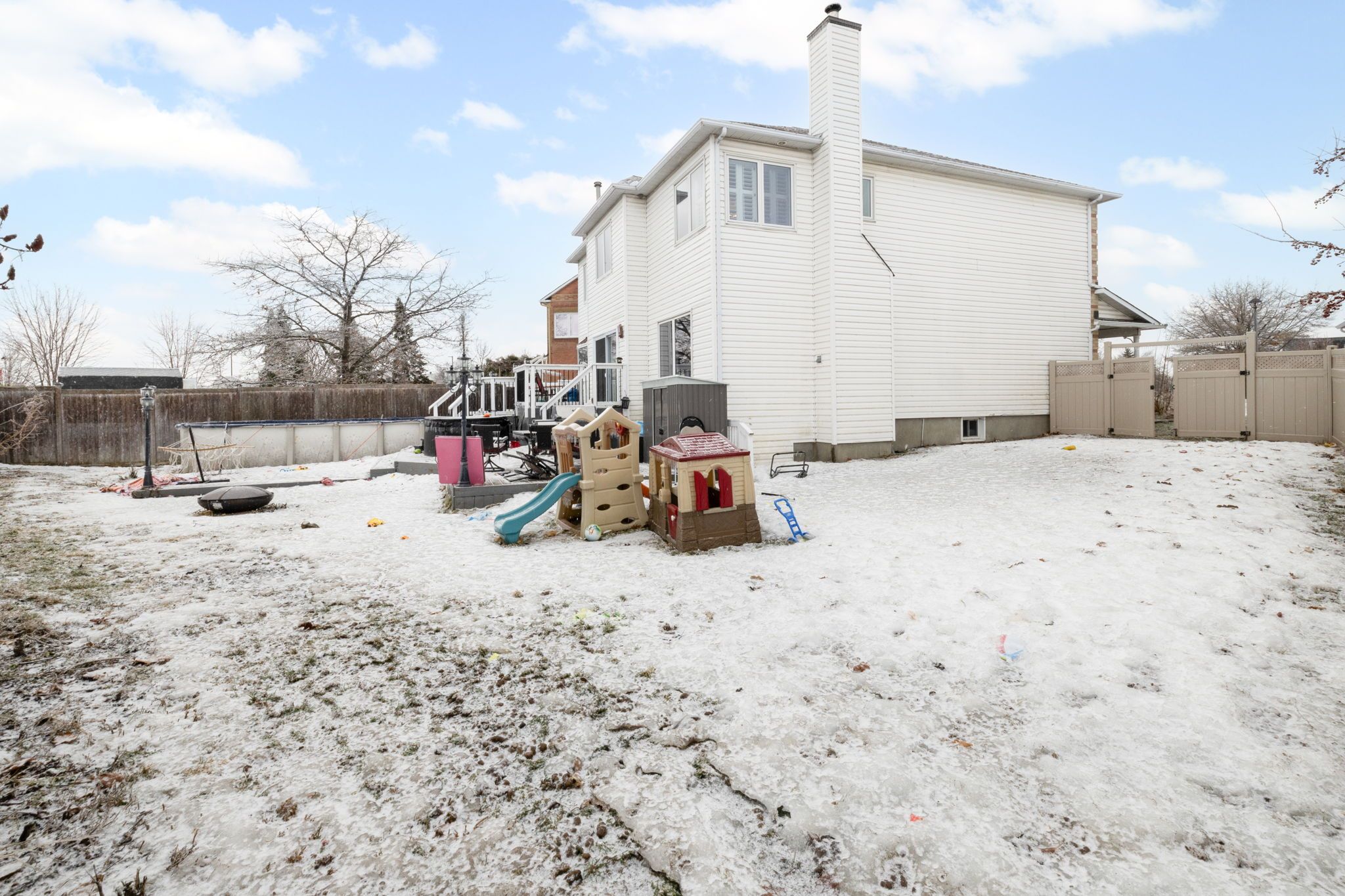 • Large backyard includes above-ground pool and deck, great for summer fun.