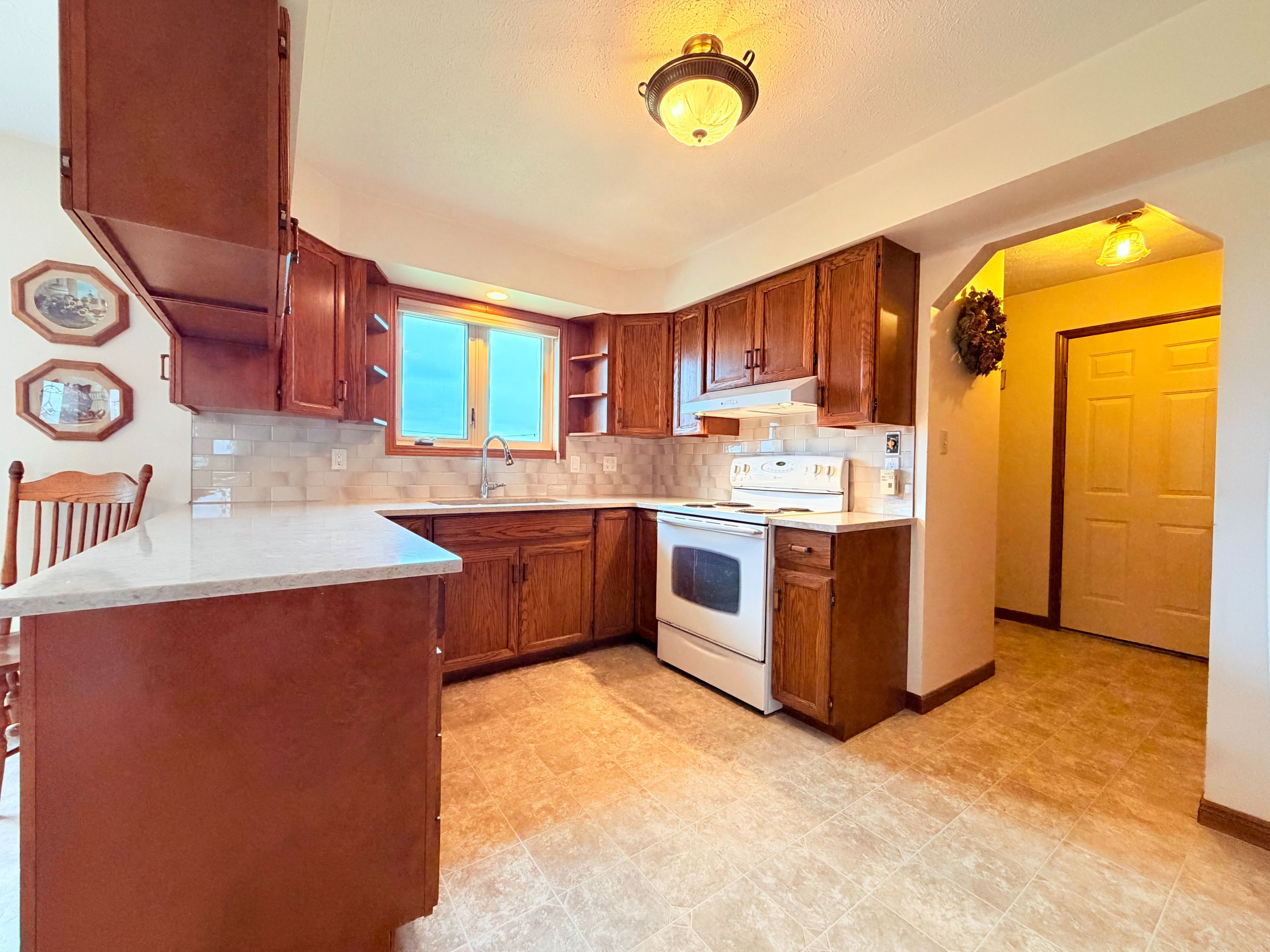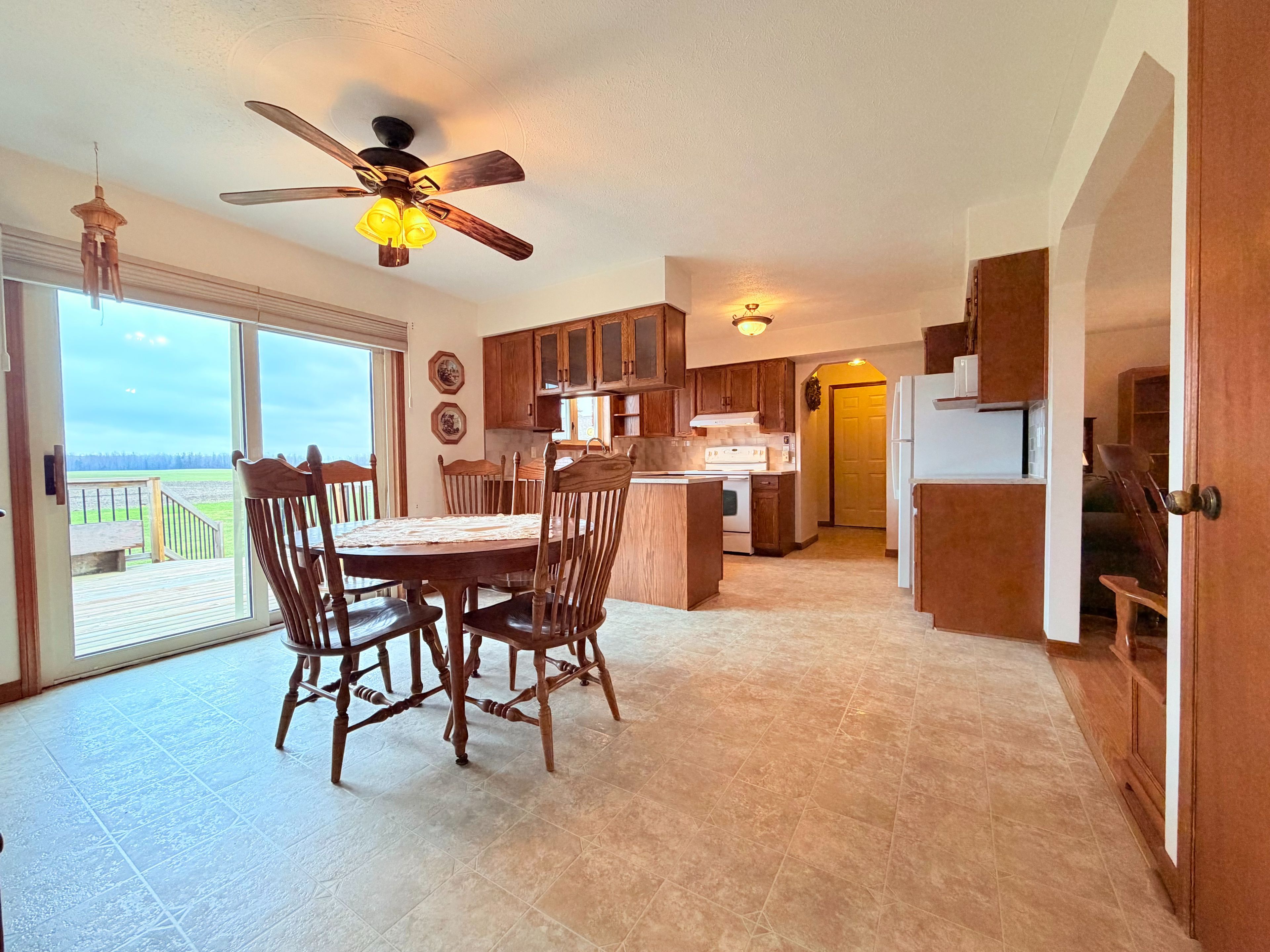 • Eat-in kitchen with patio doors leading to a new deck.