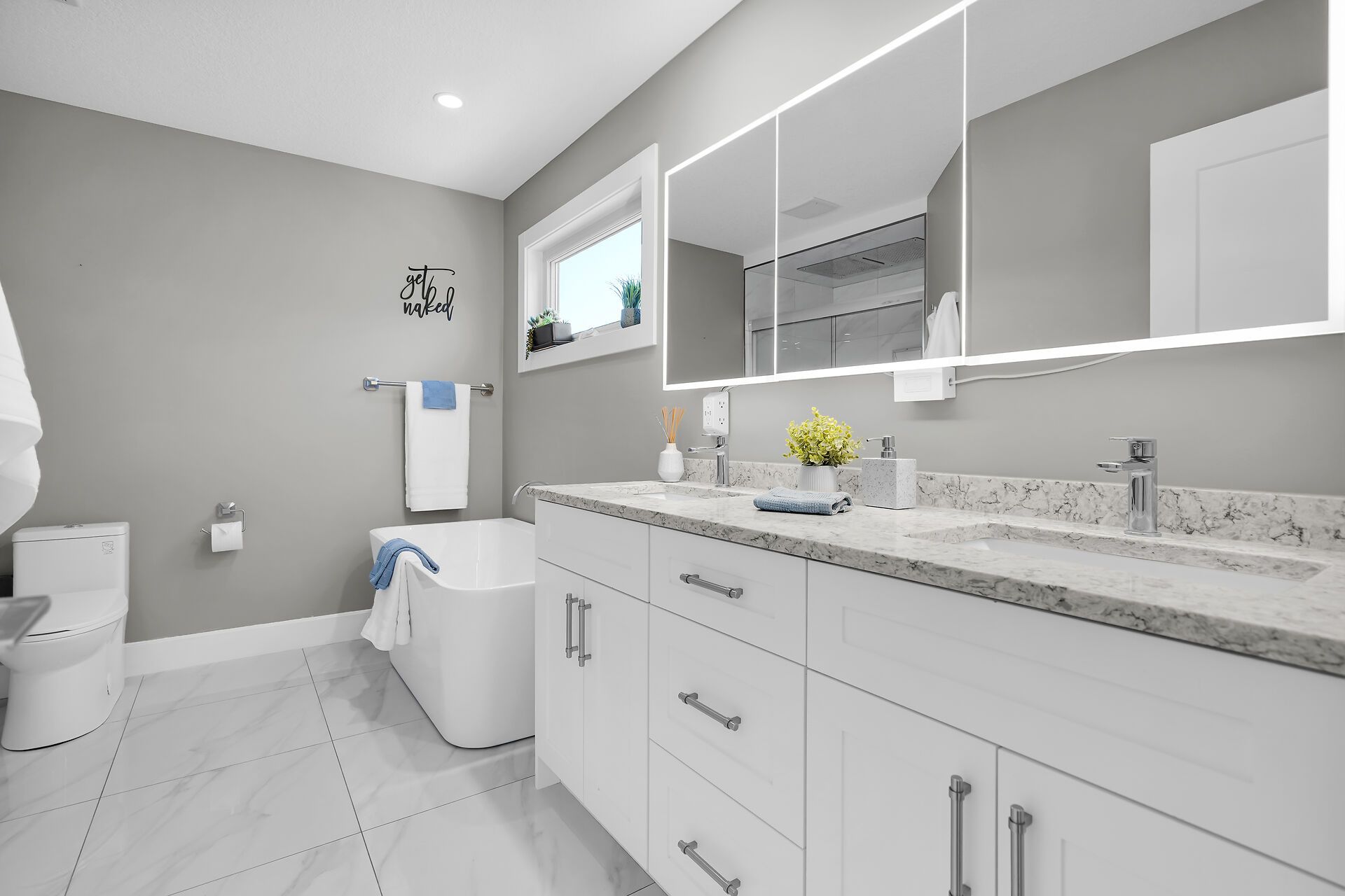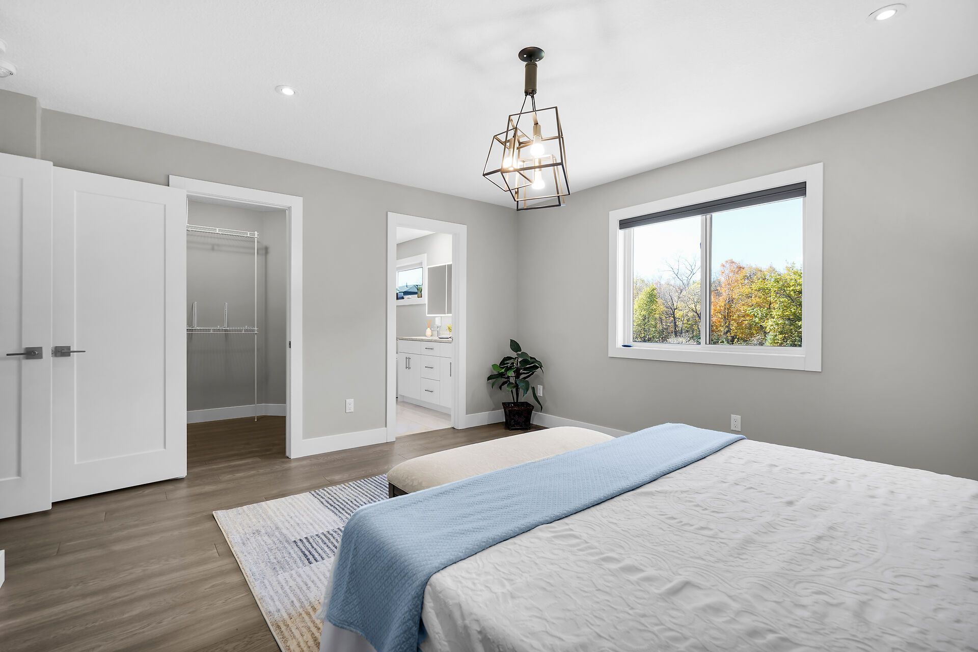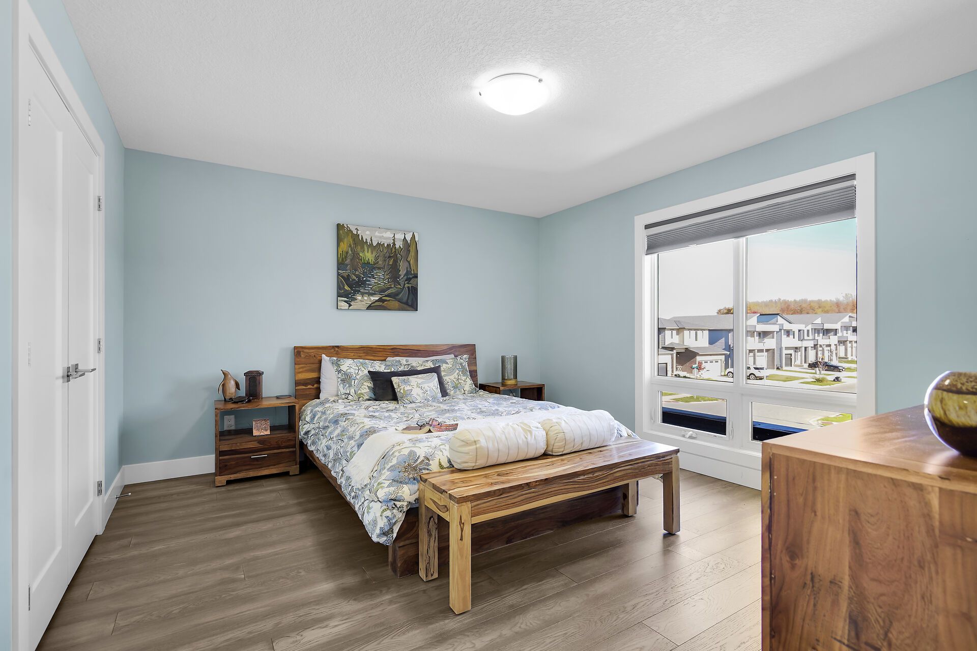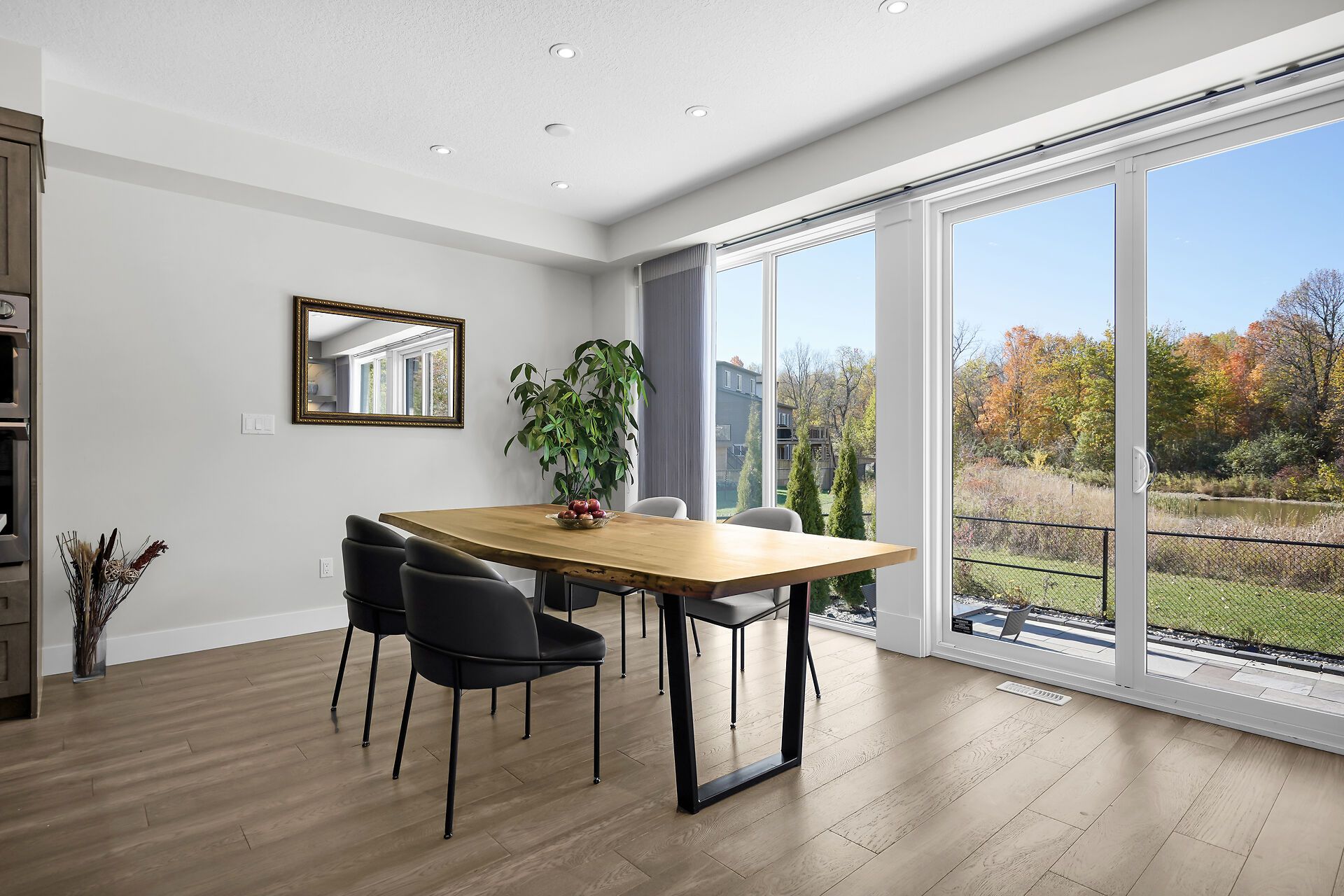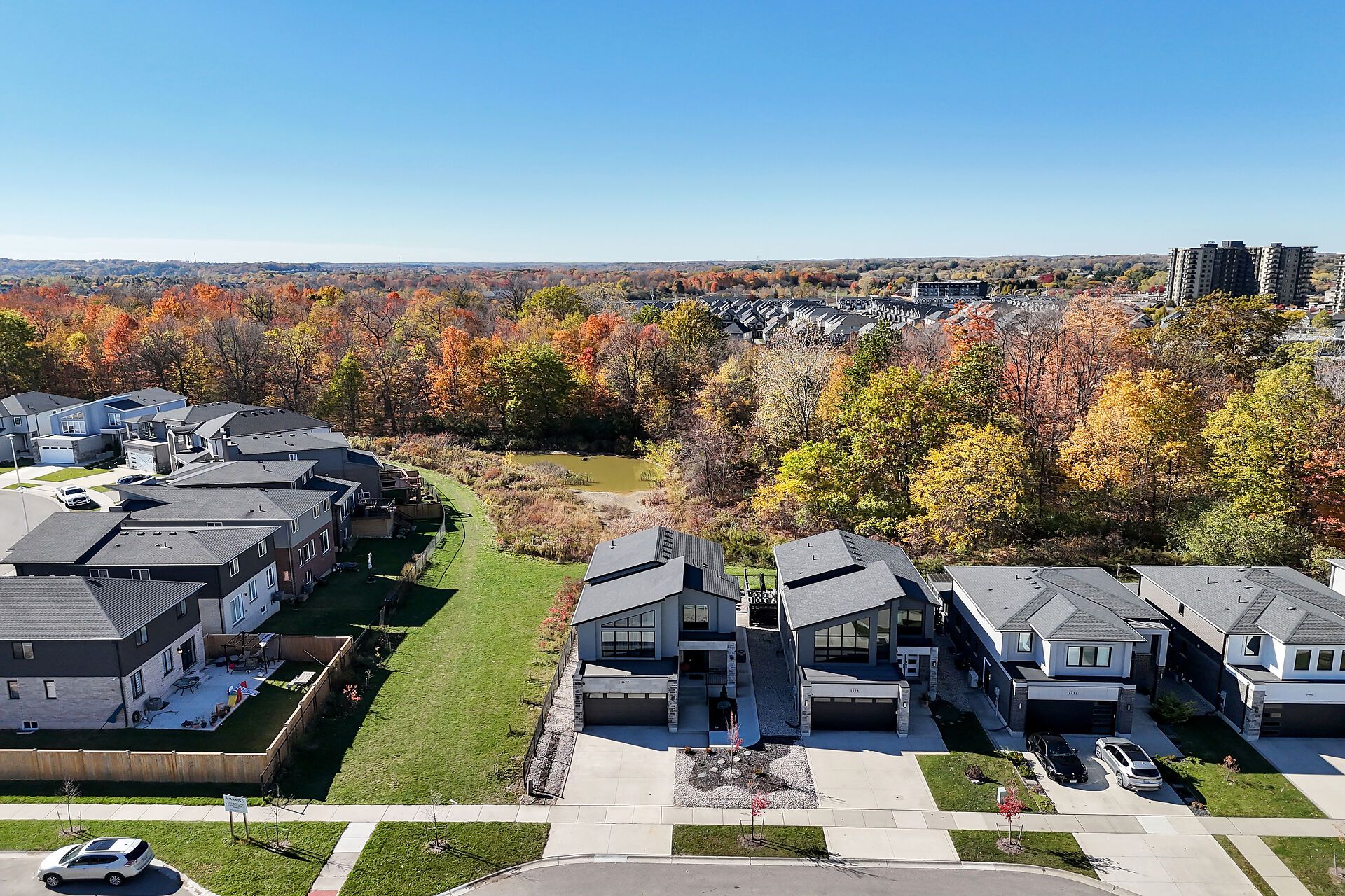 Nestled in an upscale enclave at the northwest end of lawson road, this custom marlo homes executive home in maple grove park area offers the perfect blend of elegance, comfort, and modern innovation. Backing onto a pond and treed area, the property provides a peaceful and private retreat while still being close to all city conveniences. From the moment you arrive, the home's quality craftsmanship is evident - from the concrete double driveway and stylish exterior to the transom windows that flood the main floor with natural light, soaring 9-foot ceilings, an open-concept layout, and a seamless flow that creates a spacious, welcoming atmosphere. Every detail has been thoughtfully designed, from the stone countertops and built-in stainless steel appliances to the tasteful décor and premium finishes throughout. The main living space opens to a serene backyard oasis - a low-maintenance yet tranquil setting ideal for relaxing with a good book, entertaining friends, or enjoying an evening glass of wine as the sun sets over the pond. Upstairs, the family room impresses with vaulted ceilings and a cozy fireplace; easily converted to an additional bedroom if desired. The primary bedroom is a true retreat, featuring a luxurious ensuite, walk-in closet, and stylish design touches that elevate the space. Convenience continues with a spacious mudroom off the garage and second-floor laundry. This home is as smart as it is beautiful. The upgraded kitchen includes a walk-in pantry, pasta tap, water treatment system, and custom hunter douglas automated blinds with remote and lifetime warranty - all integrated with siri and google assistant. The premium lutron lighting system, enhanced with philips hue technology, offers customizable ambience throughout. A wi-fi-enabled security system and smart thermostat provide peace of mind and energy efficiency. Immaculate, innovative, and move-in ready - this home perfectly captures luxury living in a natural setting.