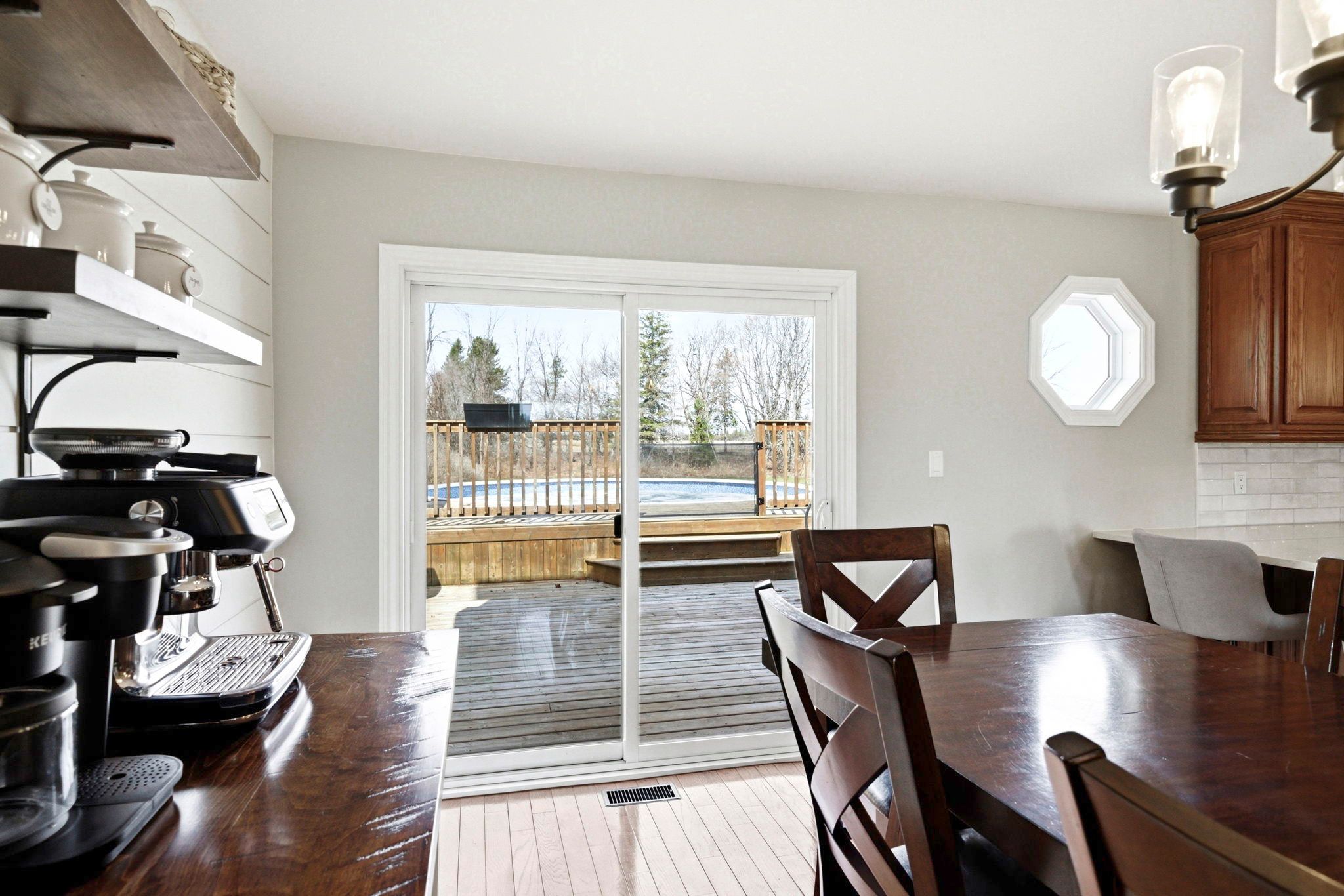 • Large above ground pool and multi-level deck for outdoor enjoyment.