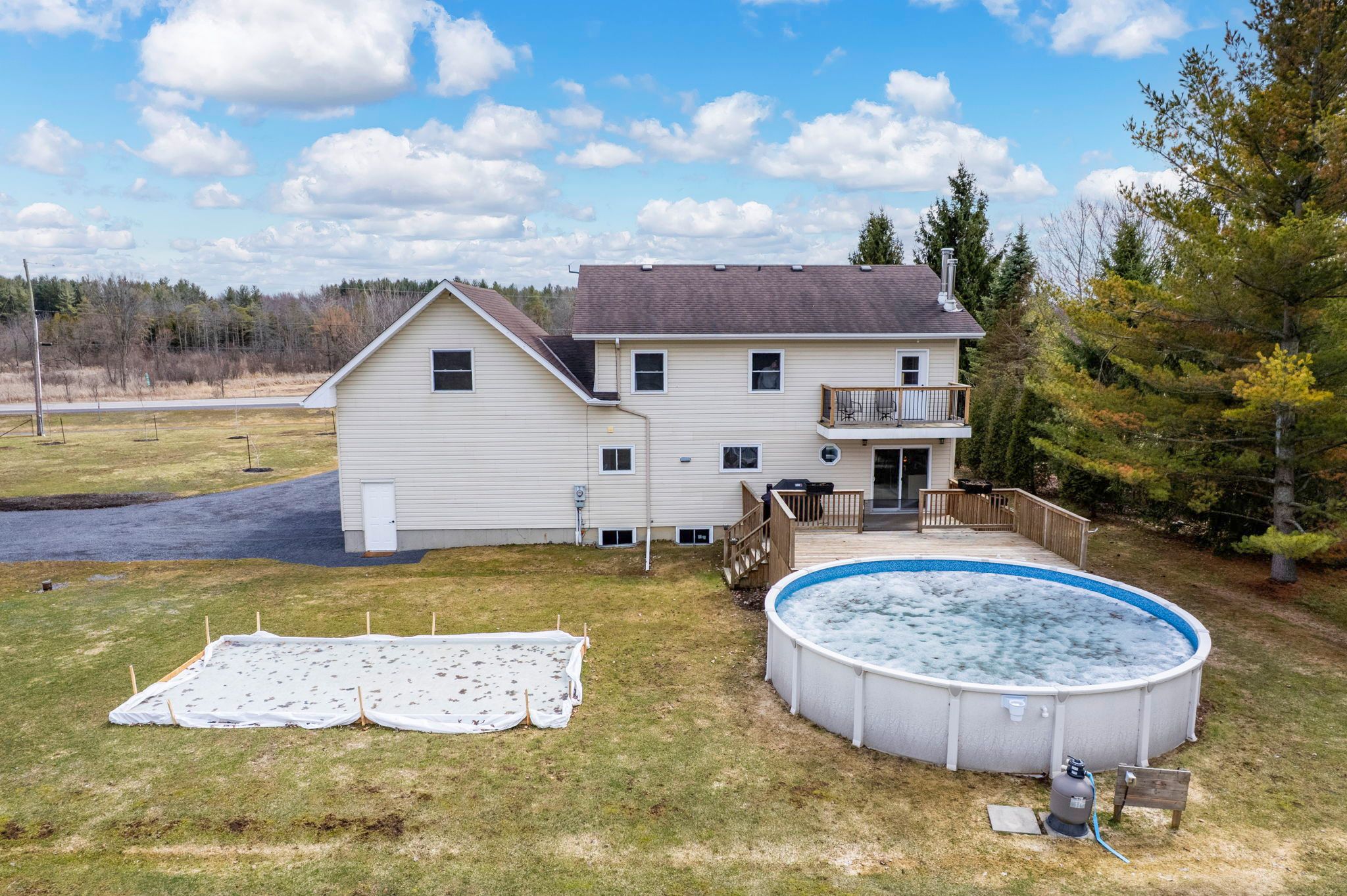 Welcome home! This property beams with pride of ownership both inside and out. From the moment you pull in the driveway to the moment you step through the door you'll appreciate how both well-kept and welcoming this family home is. Sitting on nearly 1. 5 acres with a double attached garage, a detached garage, a large above ground pool, and a multi-level deck, you won't want to miss this country beauty! With 3 bedrooms (and the possibility to add several more), 2 full bathrooms, a very convenient second floor laundry room, and an expansive and stylish bonus room complete with fireplace and vaulted pine ceilings, this home will suit your needs for years to come. The main floor is host to a large family room that is open to the dining and updated kitchen area. The kitchen features quartz countertops, a large island, and plenty of cabinet space, as well as great views of the rear yard. Also on the main floor is a well sized flex-space - perfect for a home office, a den, a kids play room, or a hobby room. Upstairs you'll find three generously sized bedrooms, a laundry room, and a large bonus room. The primary bedroom has a well finished ensuite, a walk-in closet, and direct access to the second story deck (perfect for a morning coffee!). The bonus room offers unlimited possibilities - turn into a home theatre for the family, a golf simulator room to practice, or a pool room gather friends and play. The options are endless! Situated just 5 minutes from ingleside, 12 minutes from morrisburg and about one hour to ottawa, this well located home is the perfect place to raise a growing family. Book your showing today! As per for 244, 24h irrevocable required on all offers.