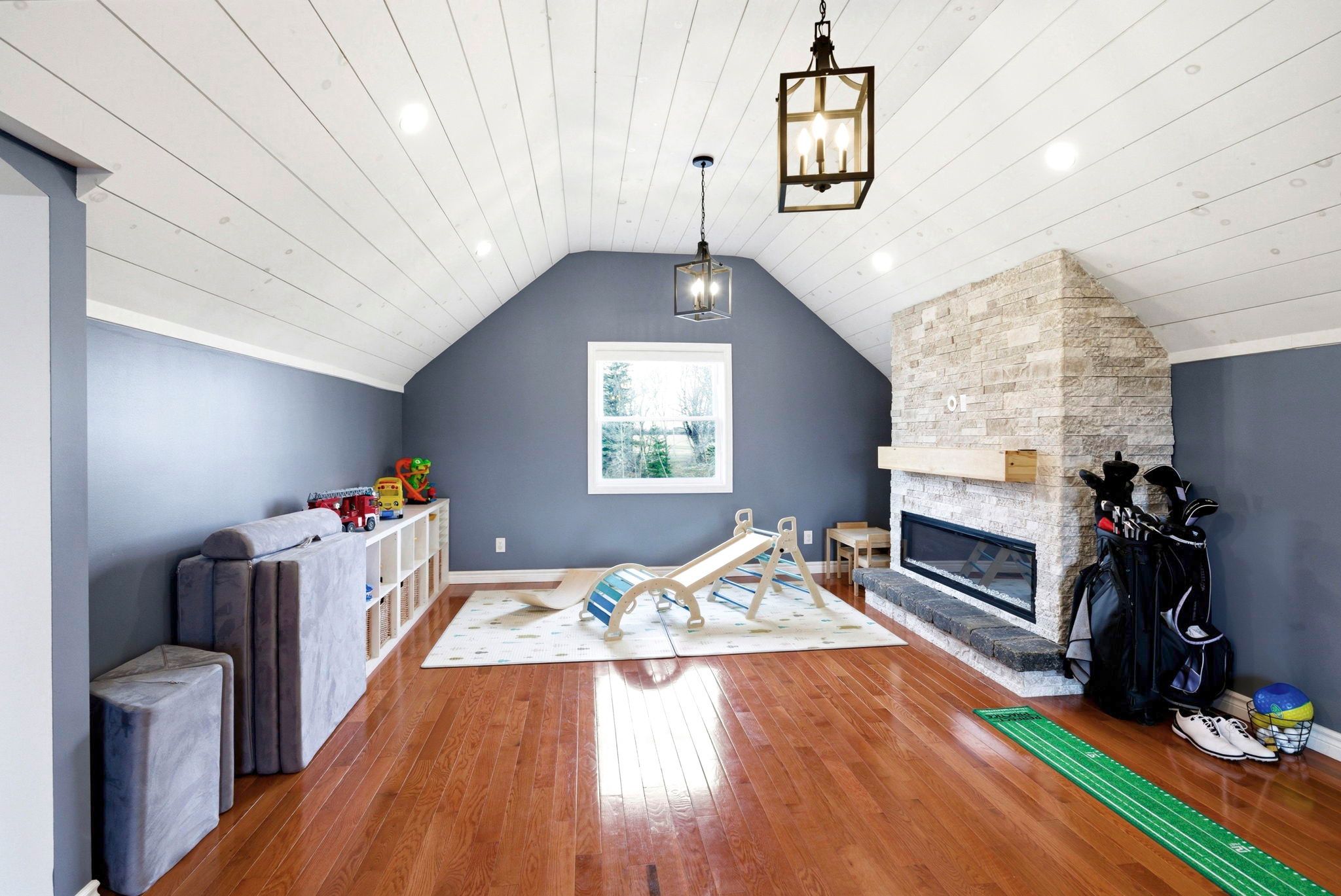 • Spacious bonus room with fireplace and vaulted ceilings for versatile use.