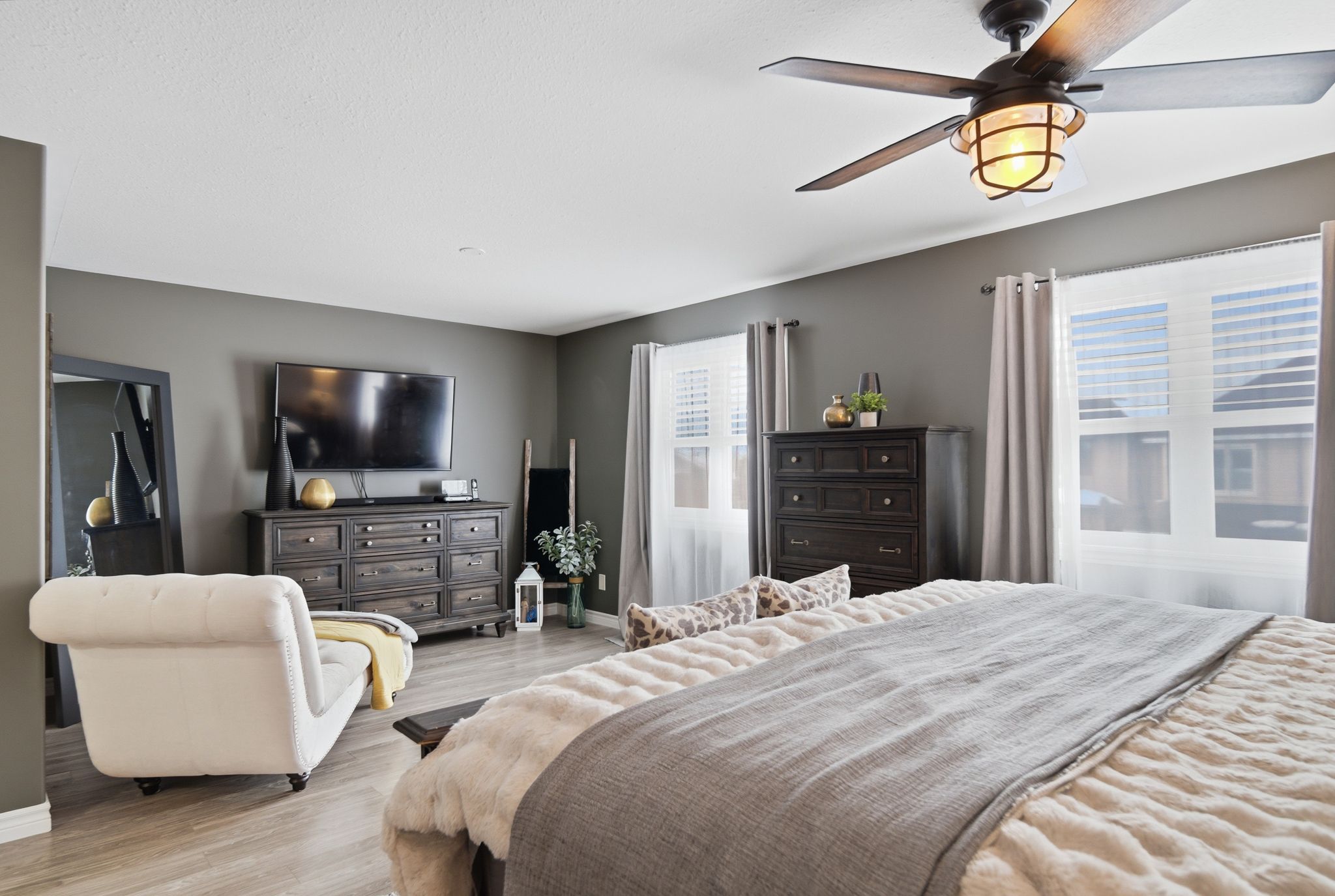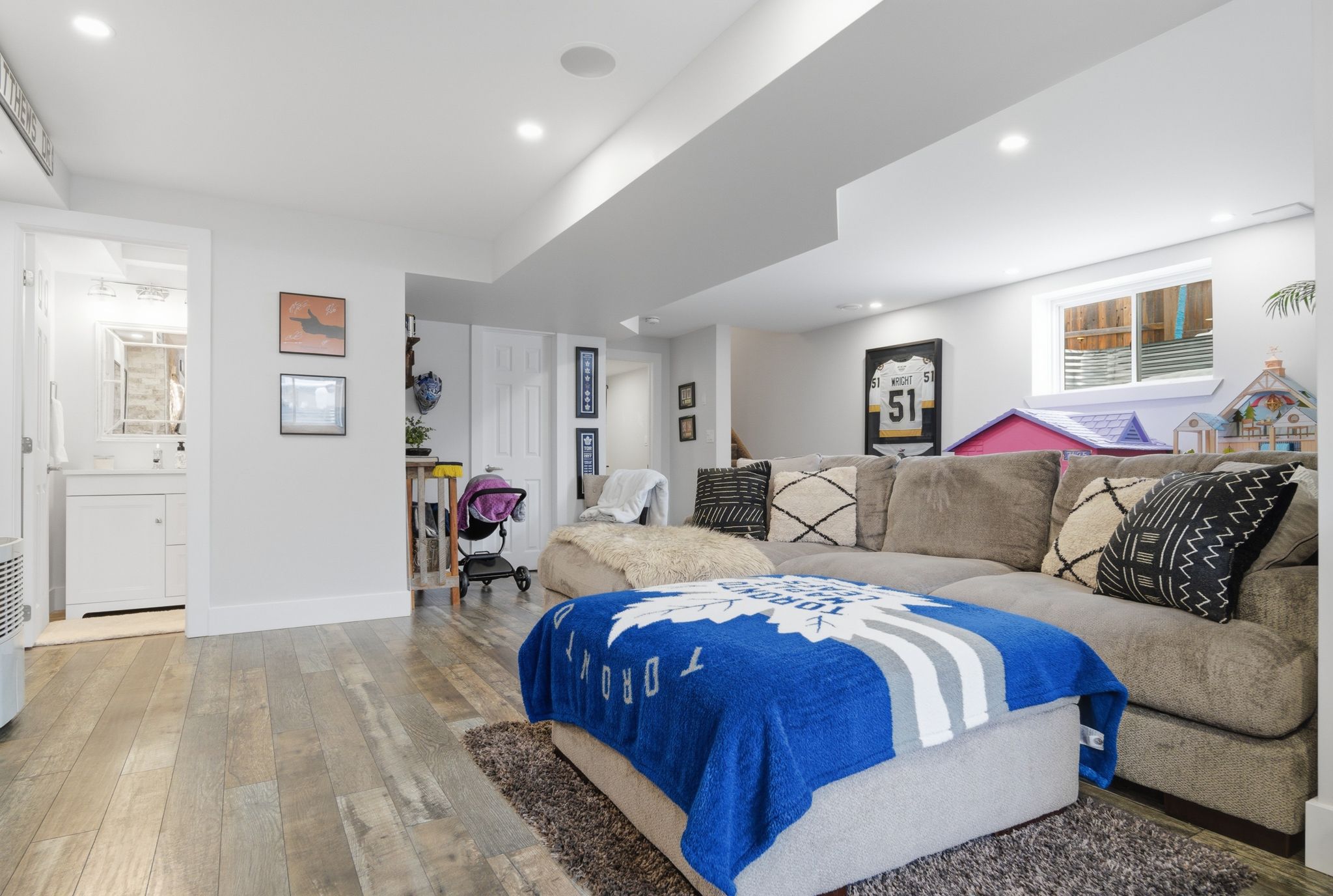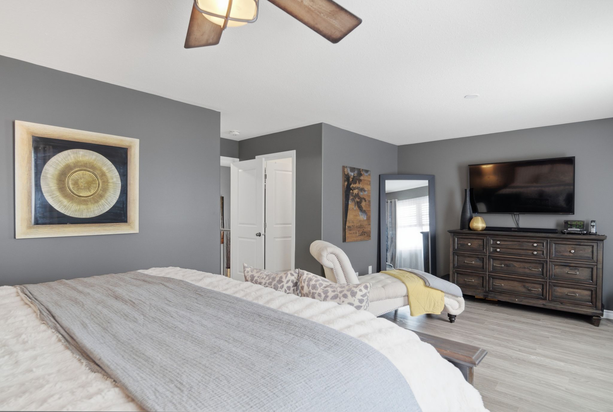 • Large primary bedroom with walk-in closet and private ensuite bathroom.