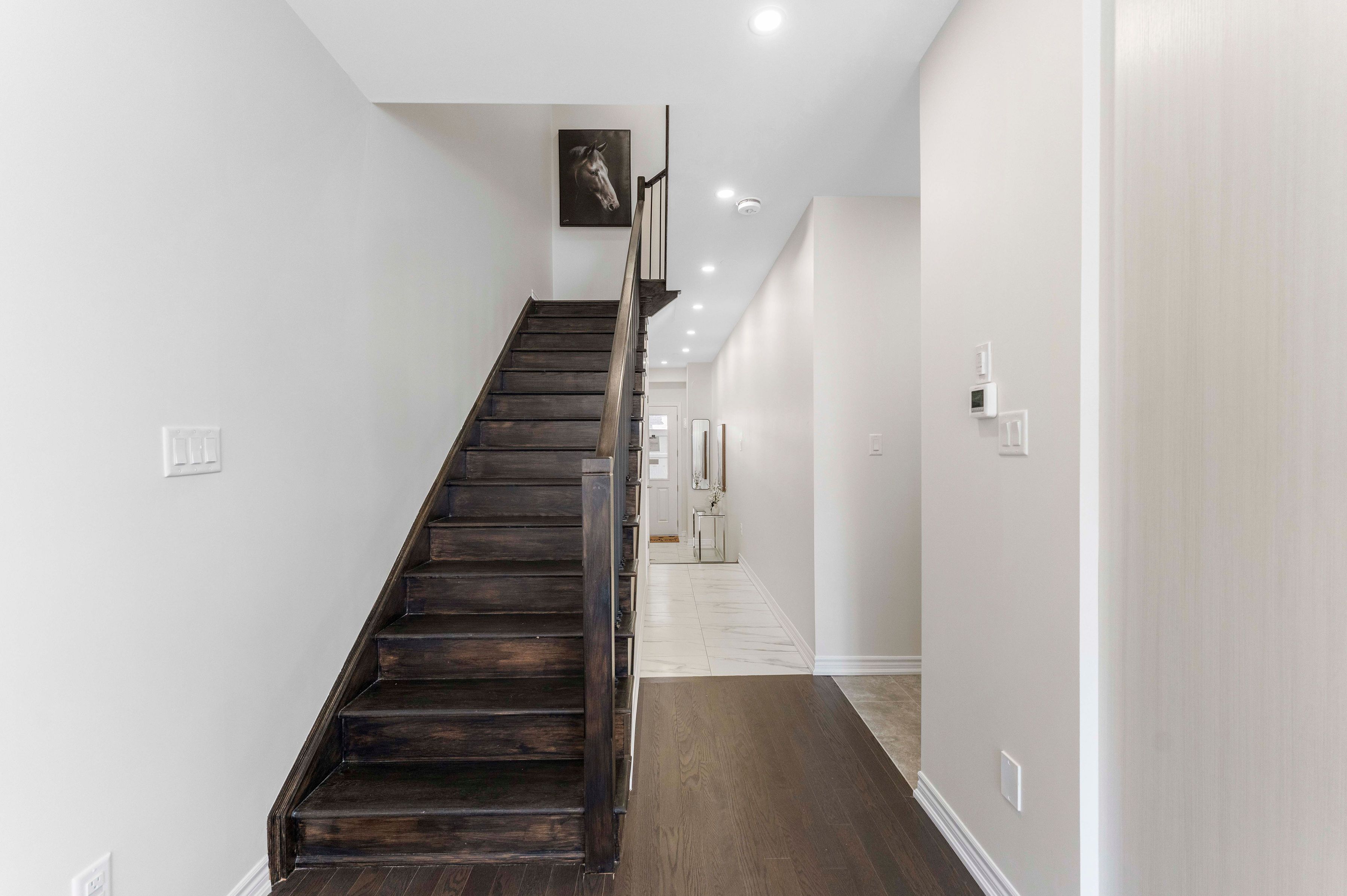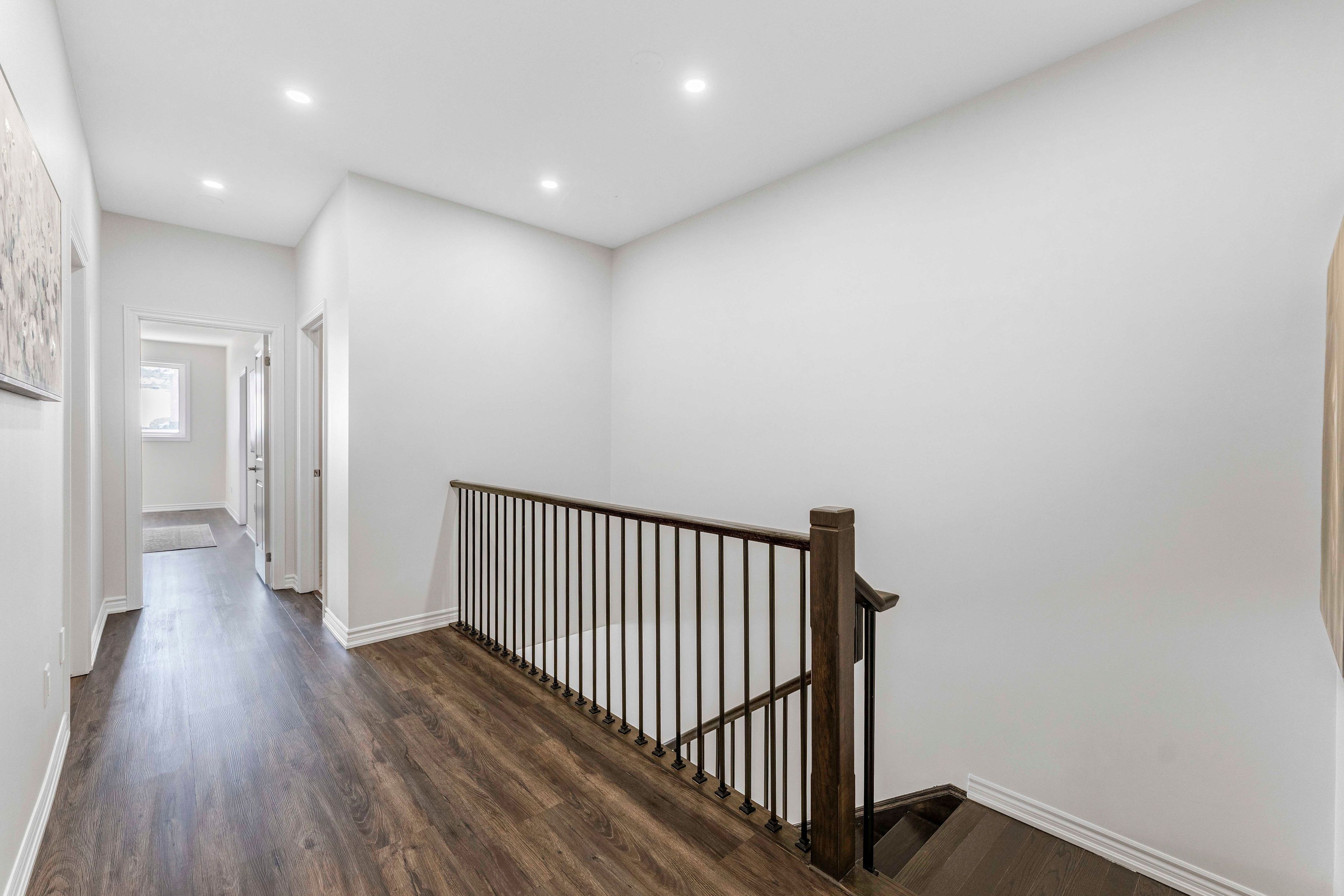 Brand-new luxury townhome in prestigious tyandaga heights offering 4 bedrooms and 4 bathrooms with thoughtfully upgraded finishes throughout. The main level features 9-ft smooth ceilings, wide-plank oak flooring and an elegant stained oak staircase with iron pickets. A chef-inspired kitchen showcases a waterfall island, granite countertops and stainless steel appliances, opening to a bright and functional living space ideal for entertaining. The carpet-free upper level includes upgraded bathrooms, convenient laundry and enhanced closets with custom shelving. The professionally finished basement (with permit and final inspection) adds valuable living space with a kitchenette, office area, living room and full bathroom - ideal for extended family or flexible use. Built with modern efficiency including hrv system, smart wiring and quality construction for comfortable low-maintenance living. No interior garage entry. Builder covers common element fees for the first two years (as per original purchase agreement). Covered under remaining tarion new home warranty. Located close to parks, trails, golf and quick highway access.