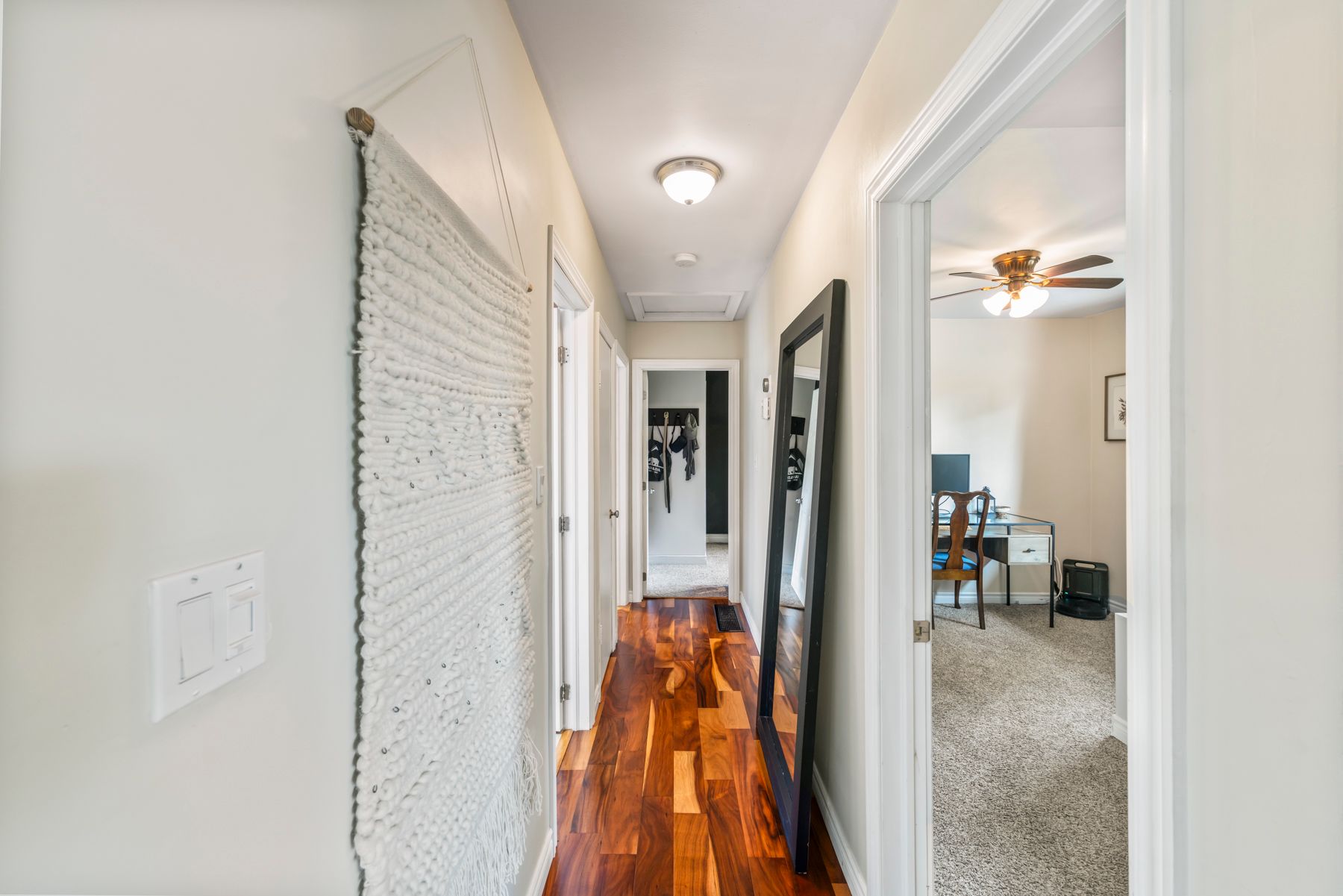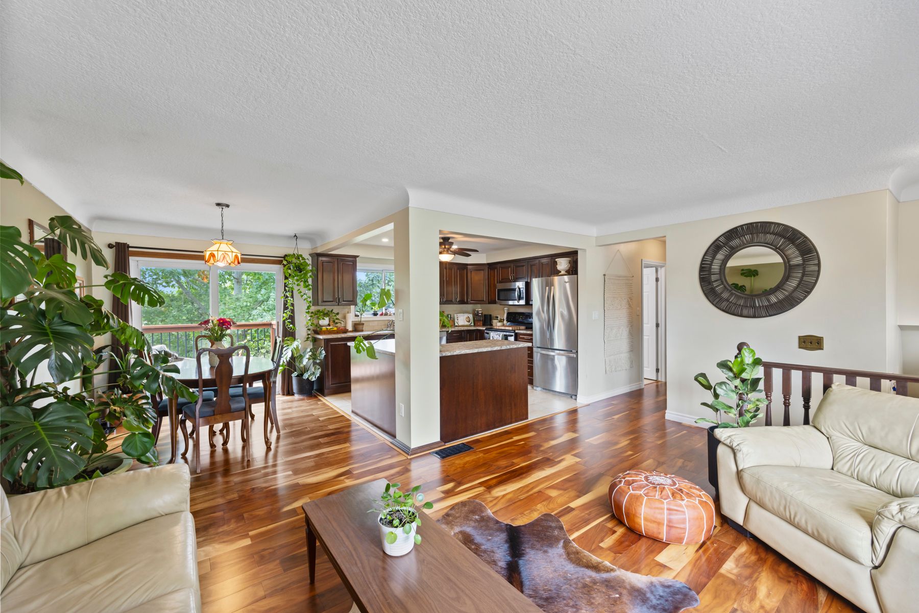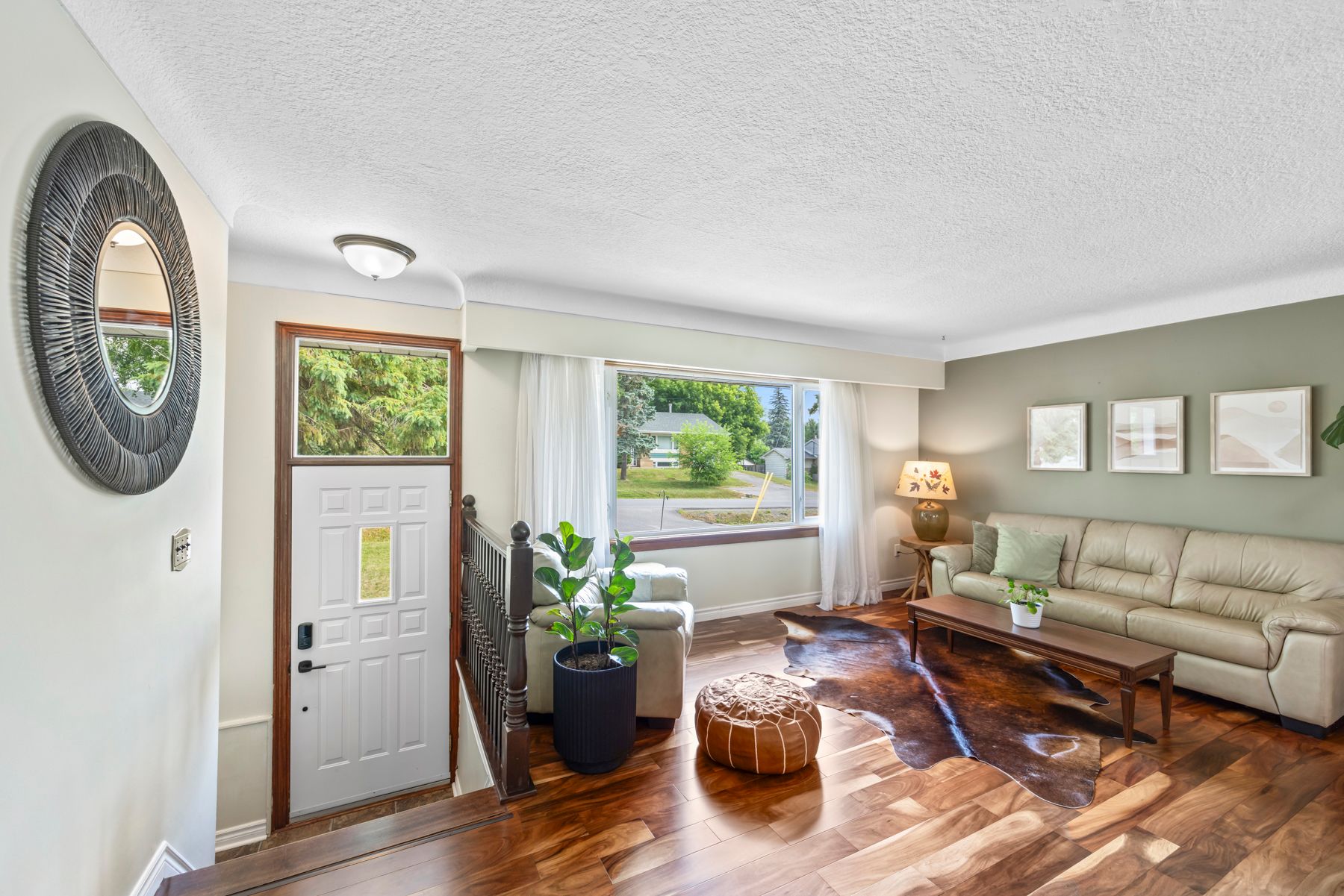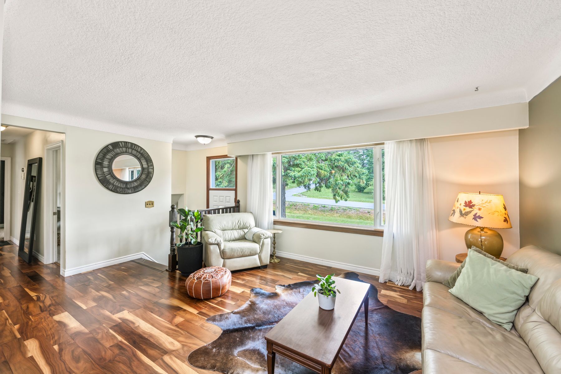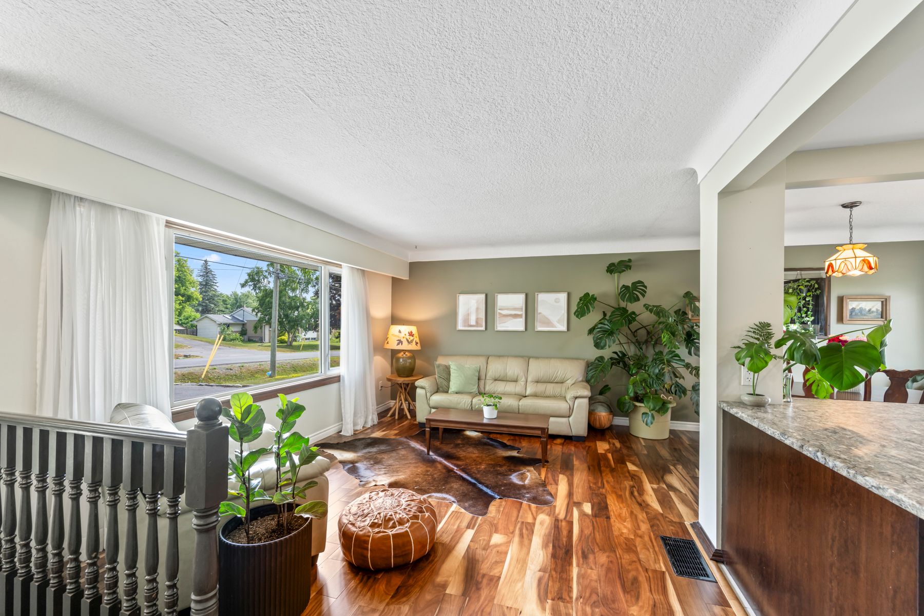 • Spacious living room with cherry hardwood floors for a modern feel.
