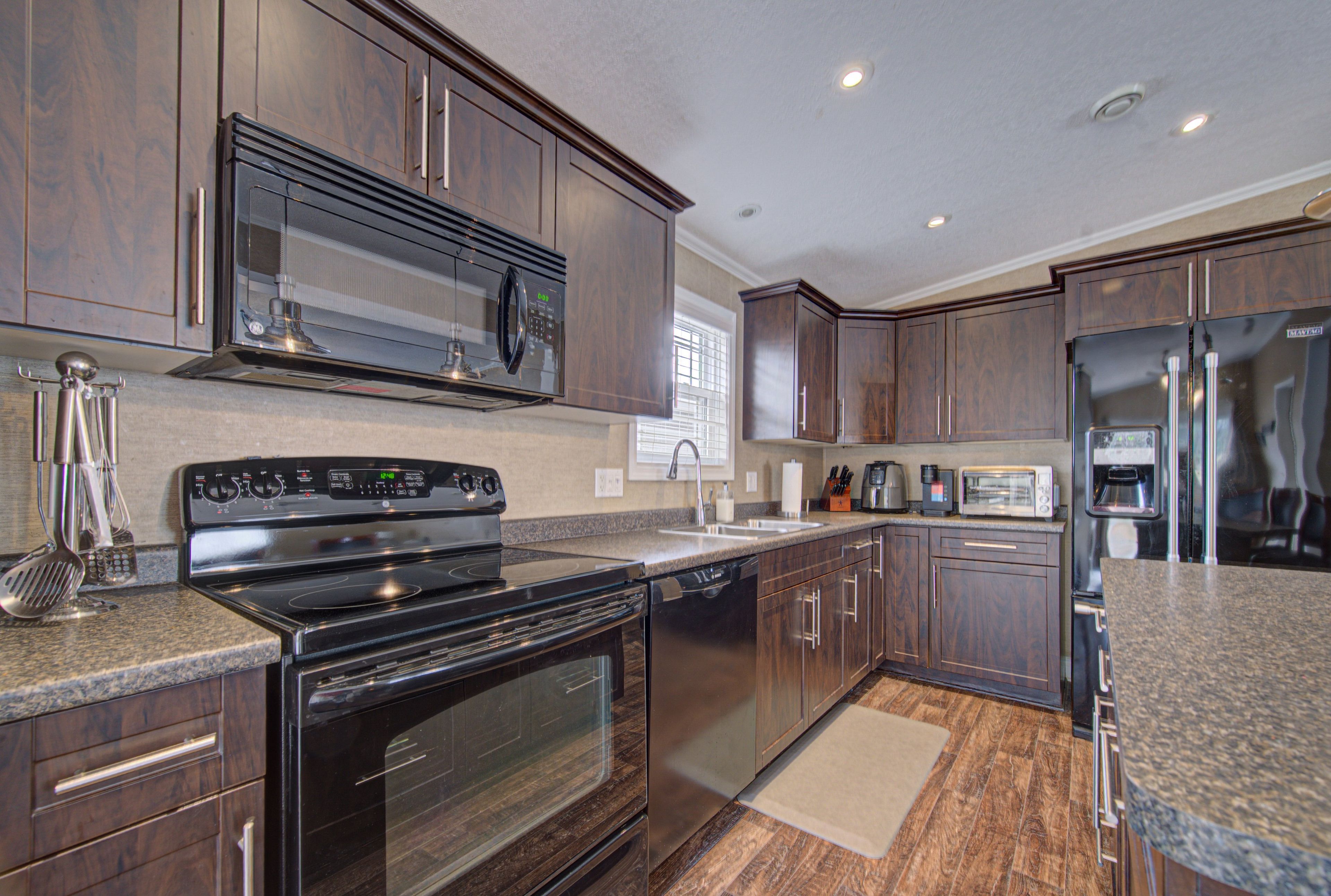 • Spacious kitchen with a central island and plenty of storage.