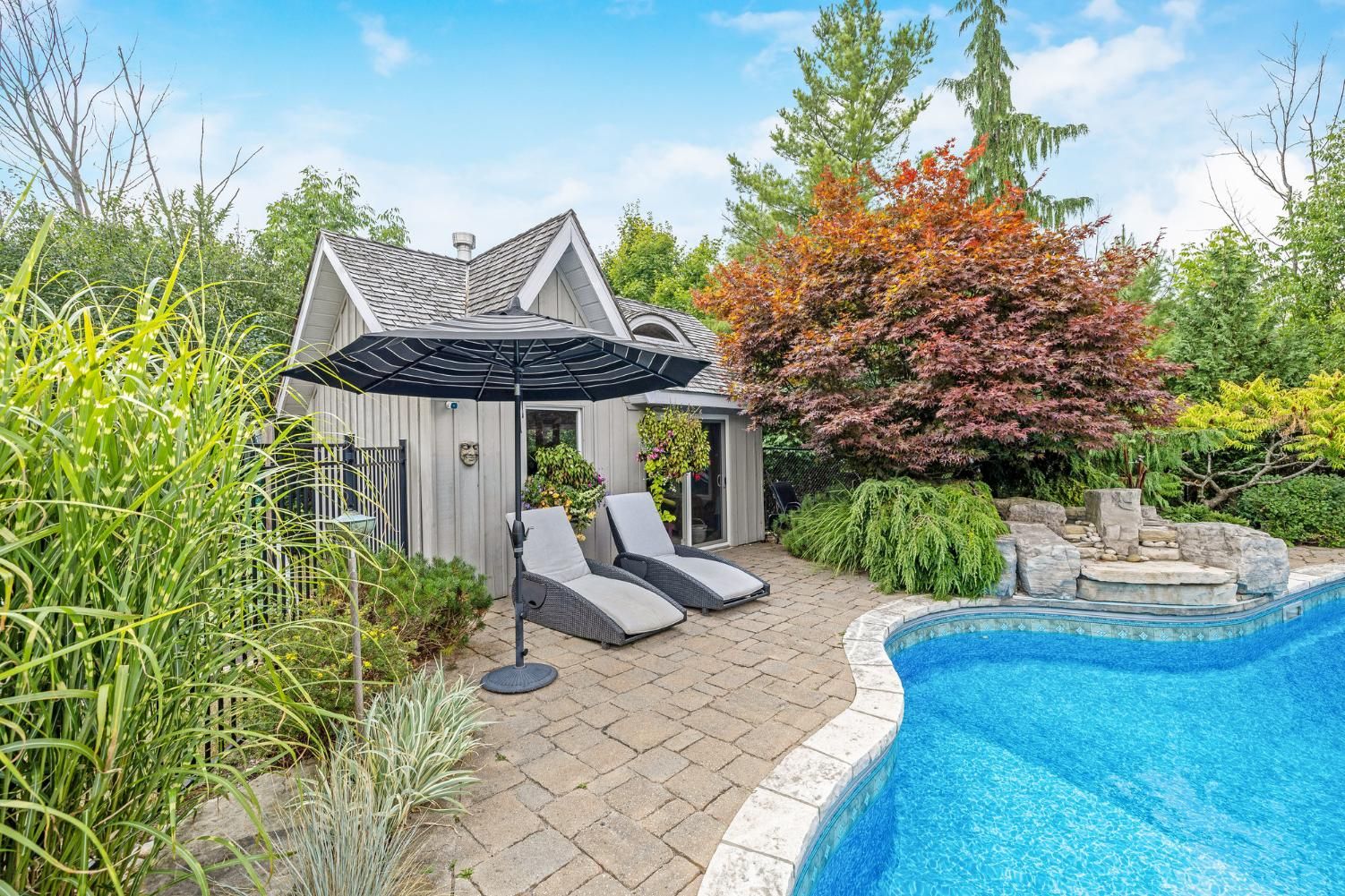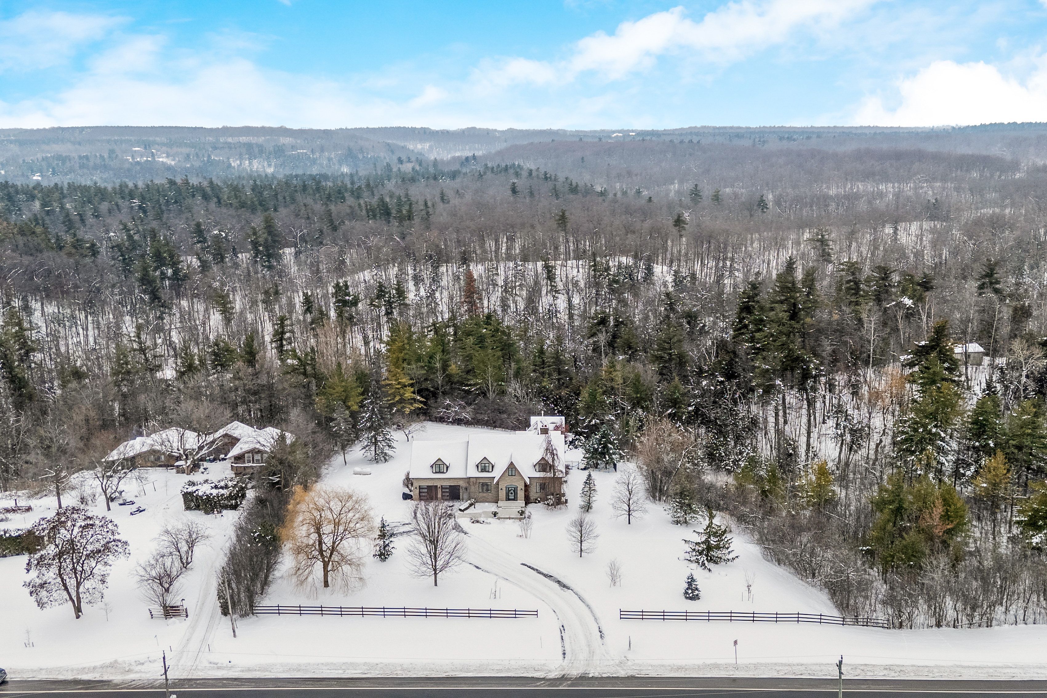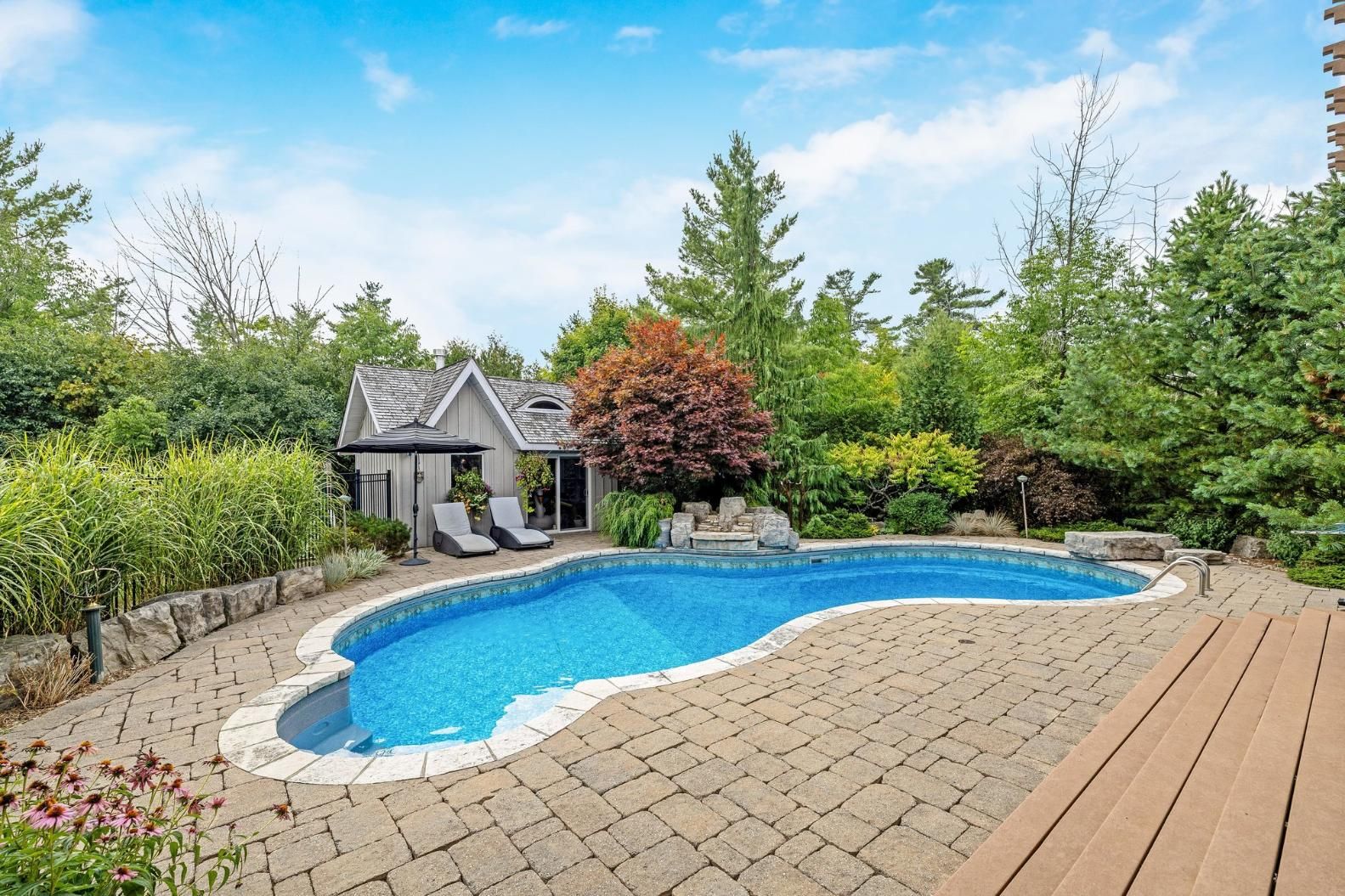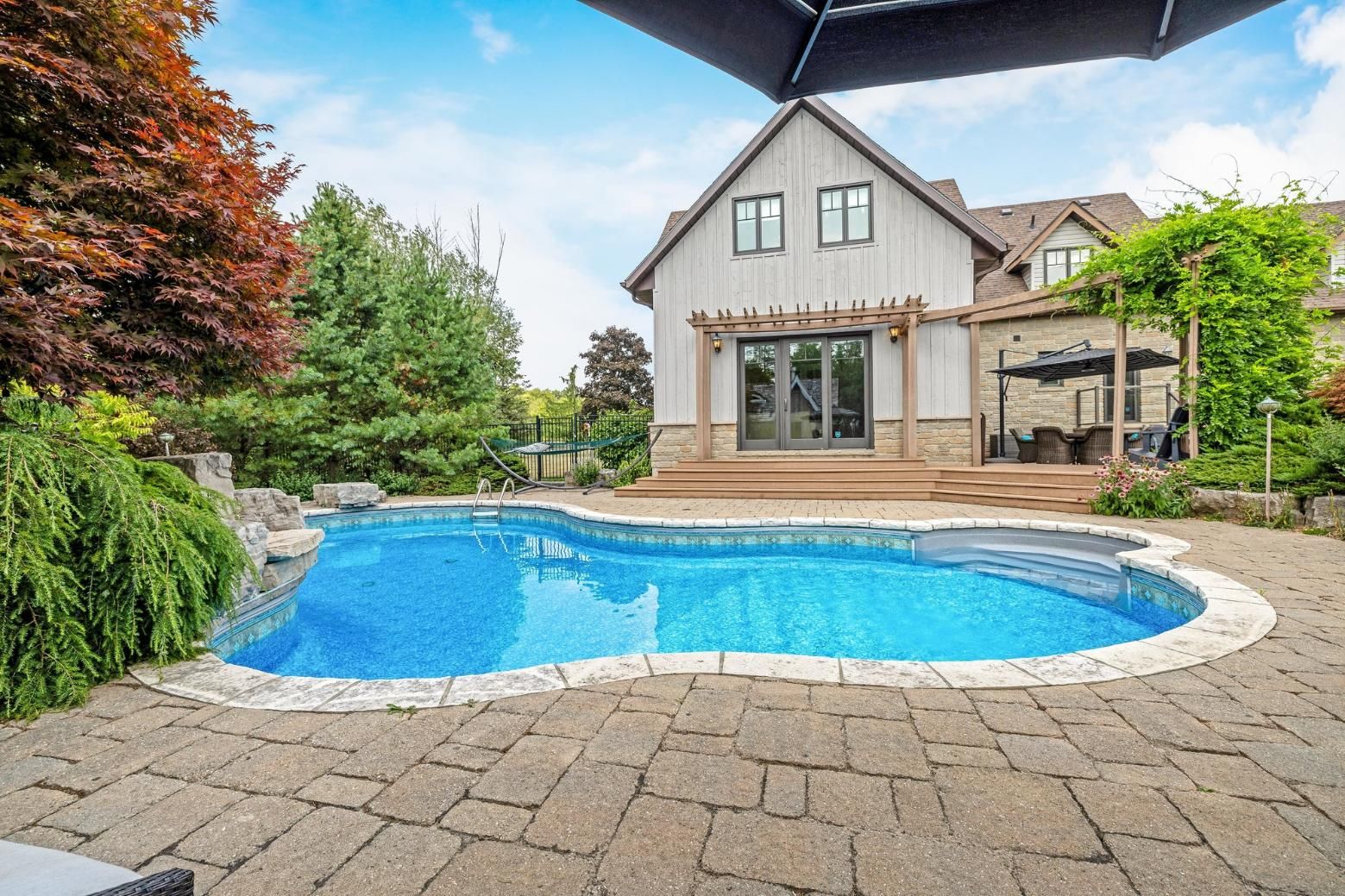 In the storybook hamlet of terra cotta, caledon, just steps from the cataract trailway and terra cotta conservation area, this exceptional property offers elegance and a deep connection to nature. Nearly 2. 5 acres back onto protected conservation land with no rear neighbours - only forest, fresh air, and birdsong. The lot blends cleared lawn and woodland, with sunny spaces for entertaining and shaded spots for quiet reflection. Your fenced backyard oasis is anchored by a heated saltwater pool with a waterfall, an expansive patio for barbecues and lounging, and the ultimate privacy of your own forest. Inside, vaulted ceilings and large windows flood the main living areas with natural light. The formal dining room sits off the foyer behind french doors, while the grand two-storey living room features a two-way wood-burning fireplace shared with the breakfast room. The chefs kitchen boasts top-of-the-line miele appliances, including an oversized fridge, built-in oven, sleek cooktop, and flush-mount range hood. A spacious sunken family room off the breakfast and kitchen opens to the backyard. The main floor also offers a laundry room with a walkout and a spa-inspired 3-pc bath with heated floors and a glass shower, perfect after a swim. Upstairs, the open loft hallway provides space for an office, hangout space, or reading nook. Four bedrooms include a sprawling primary suite with his-and-hers walk-in closets. The finished basement offers a huge rec/games room plus a bonus room - ideal as a gym, extra bedroom, or office. An insulated double-car garage with epoxy flooring completes this property. From sunrise coffee on the patio to starlit swims beneath the trees, this terra cotta retreat is more than a home - its a lifestyle.