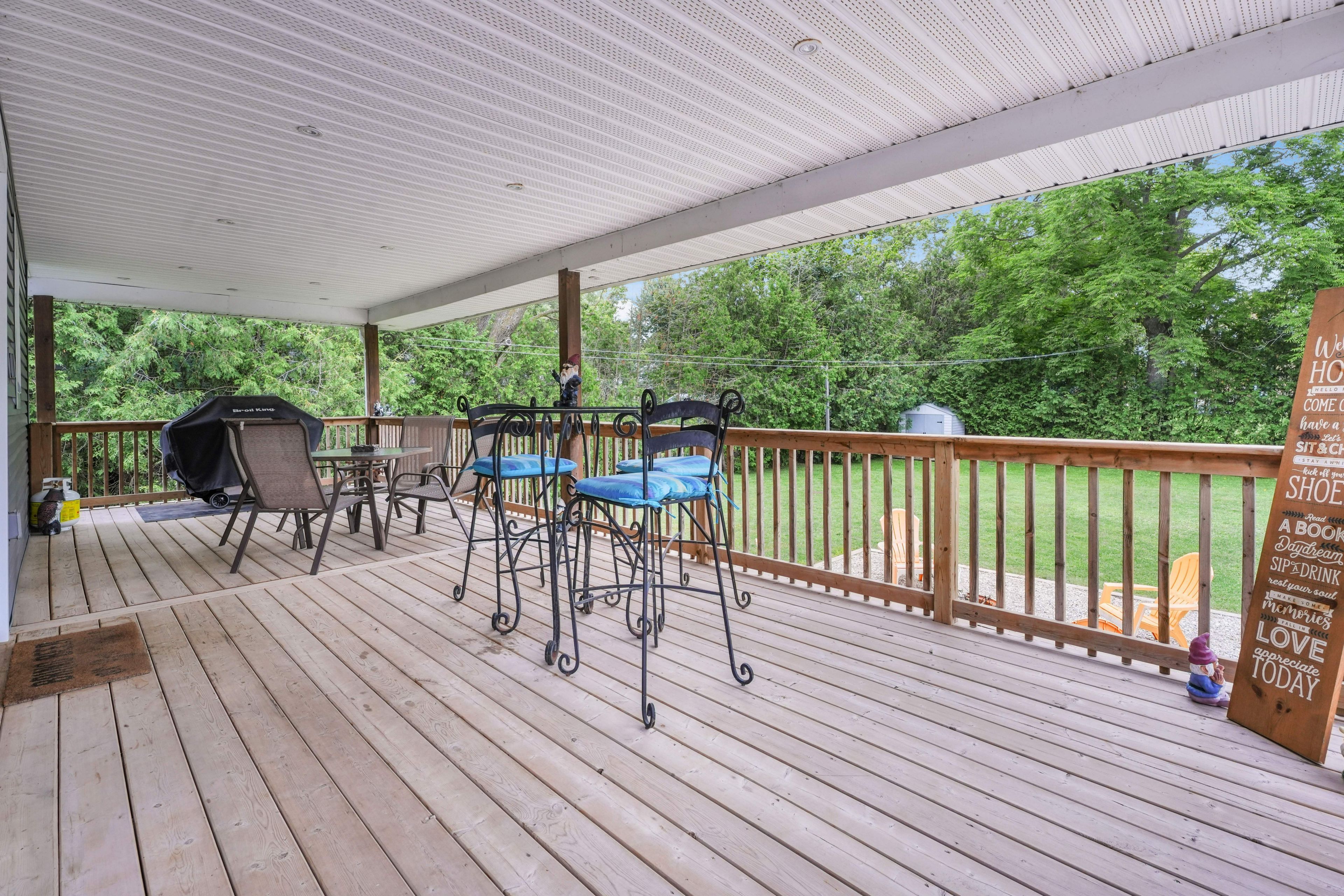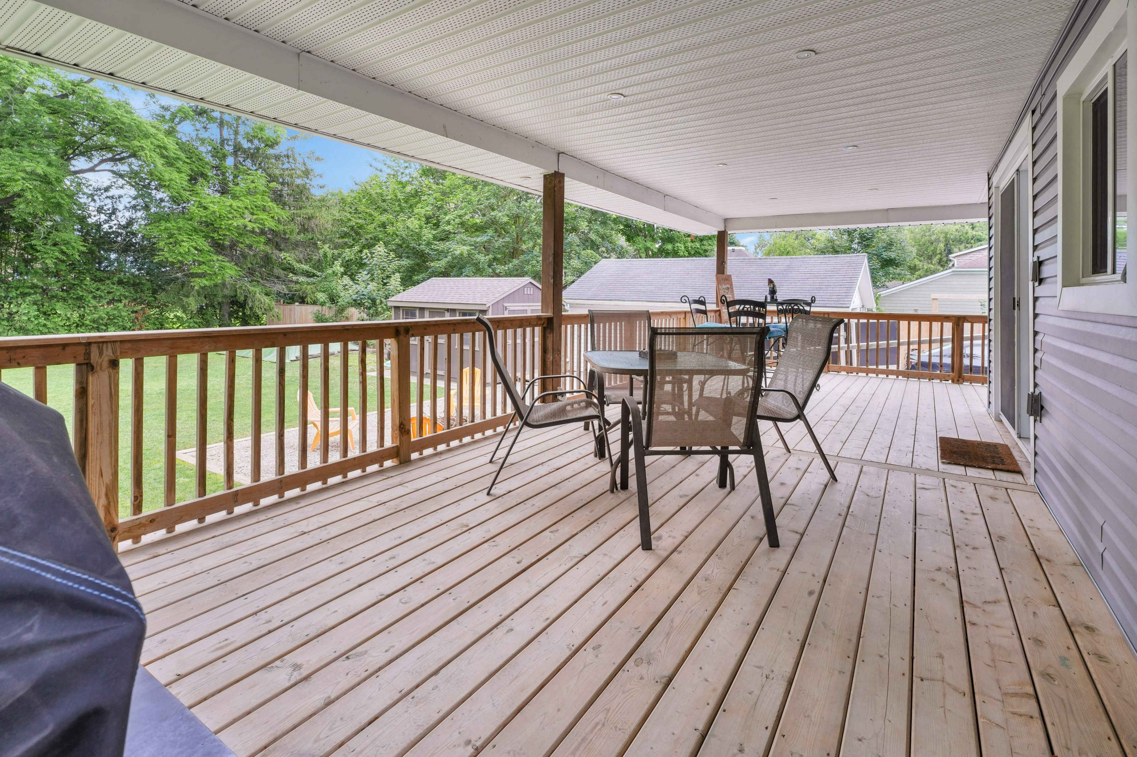 • Walk out covered deck overlooking a deep 165 foot lot.