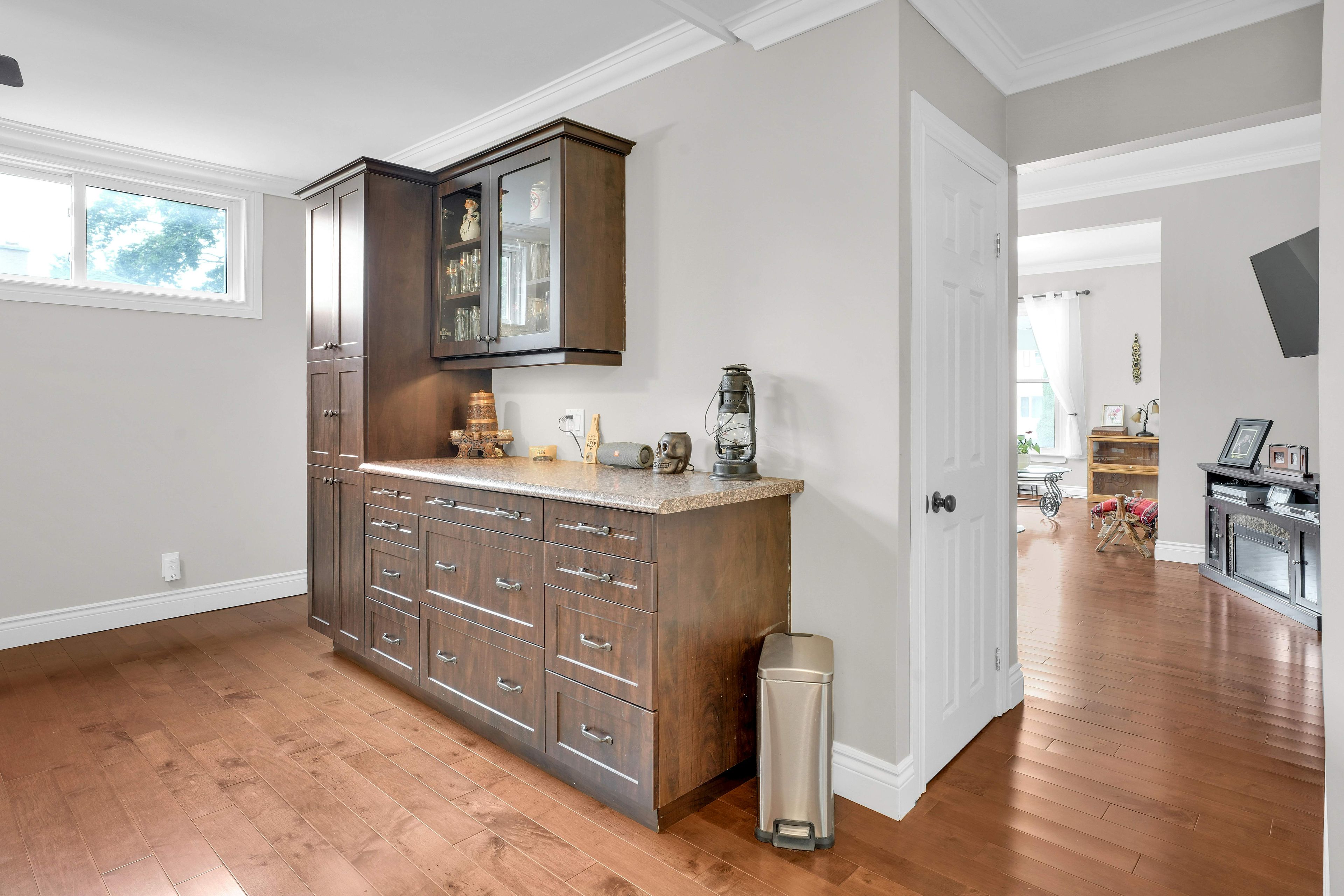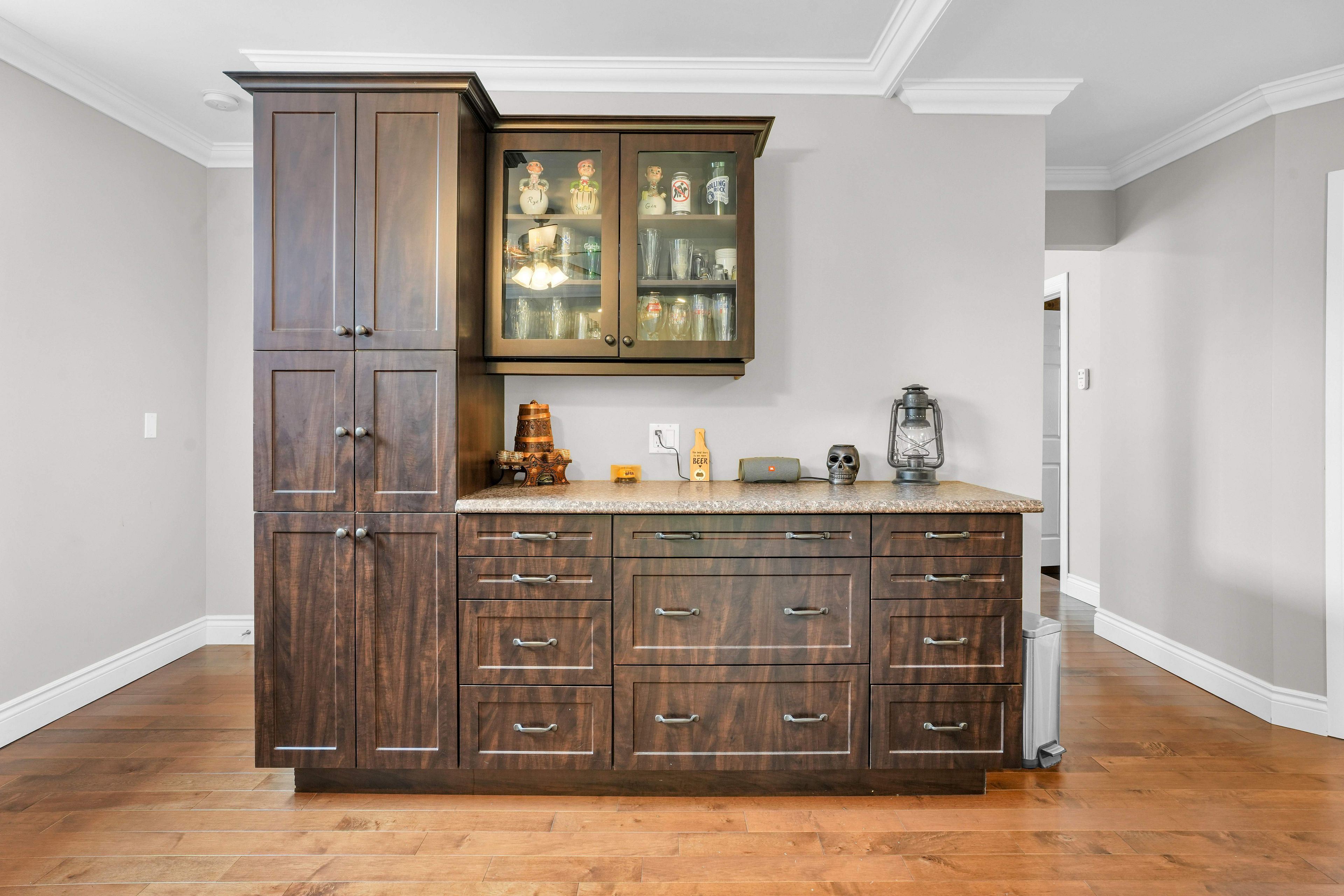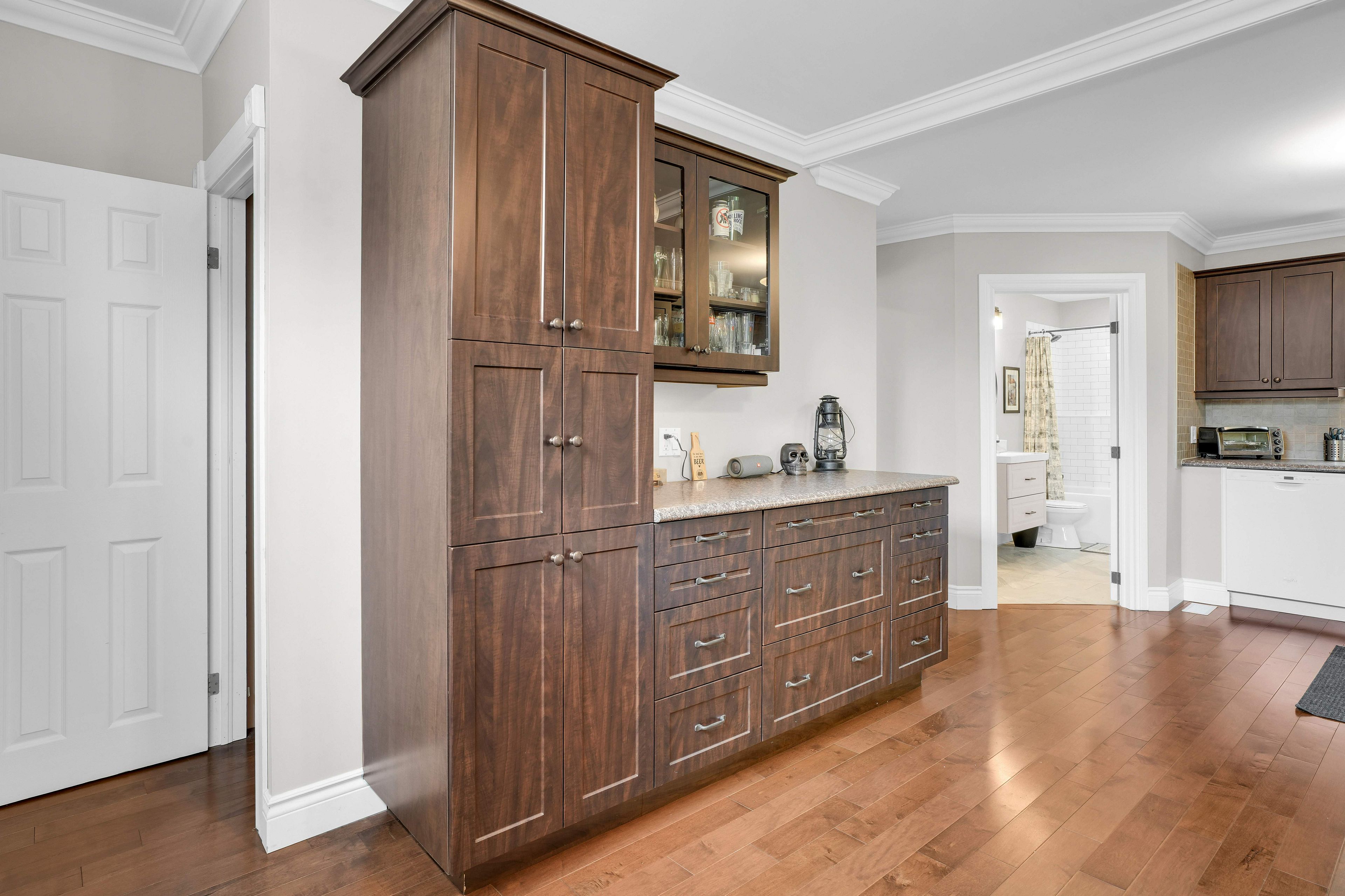 • Modern kitchen with stylish cabinetry and a cozy eating area.