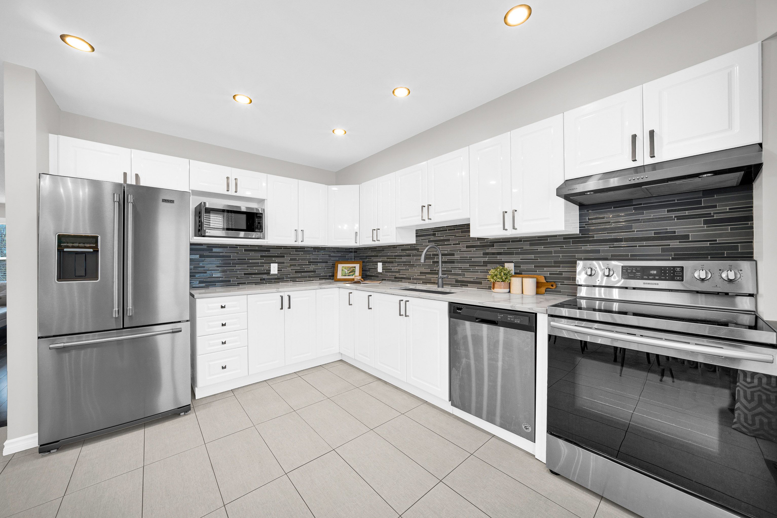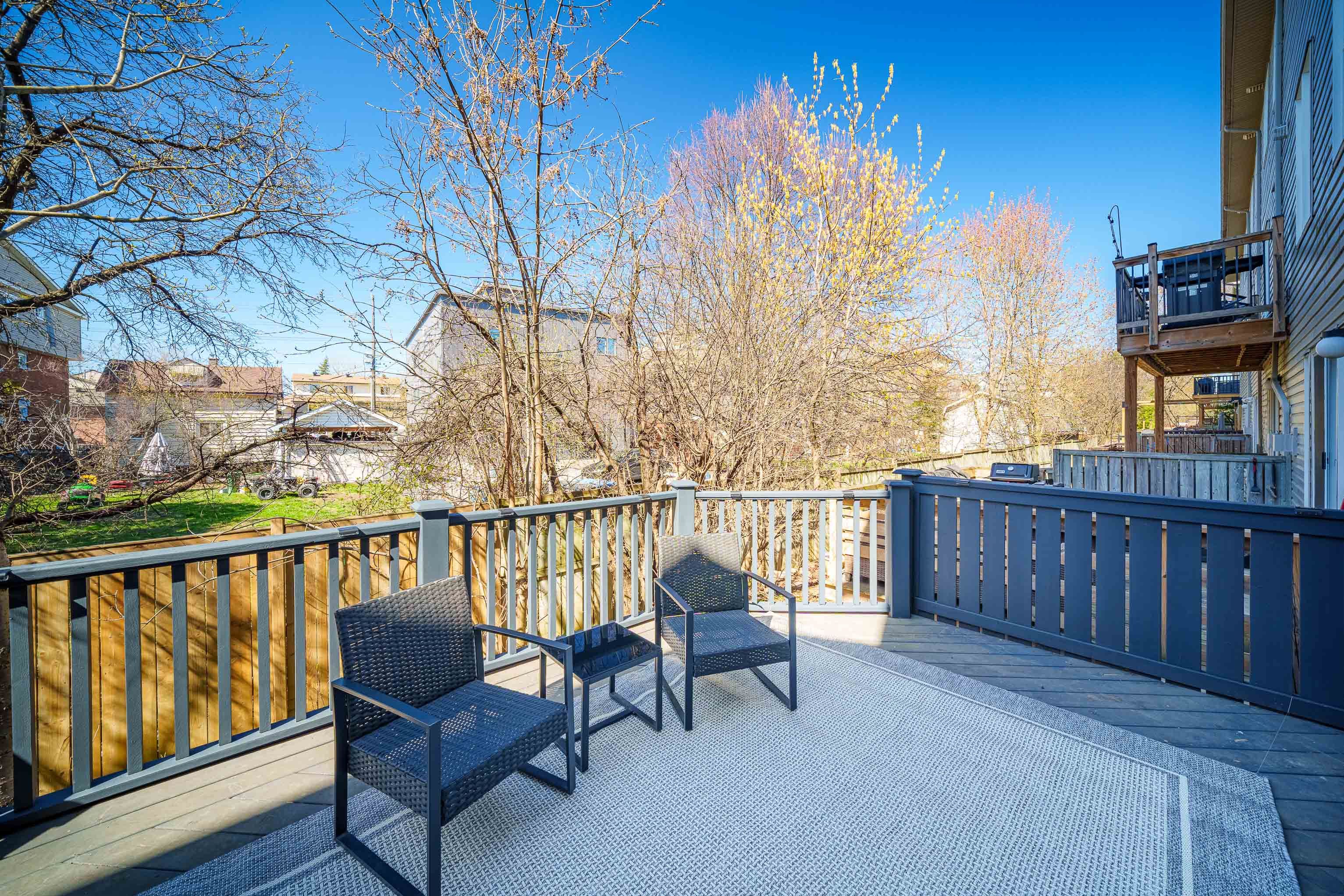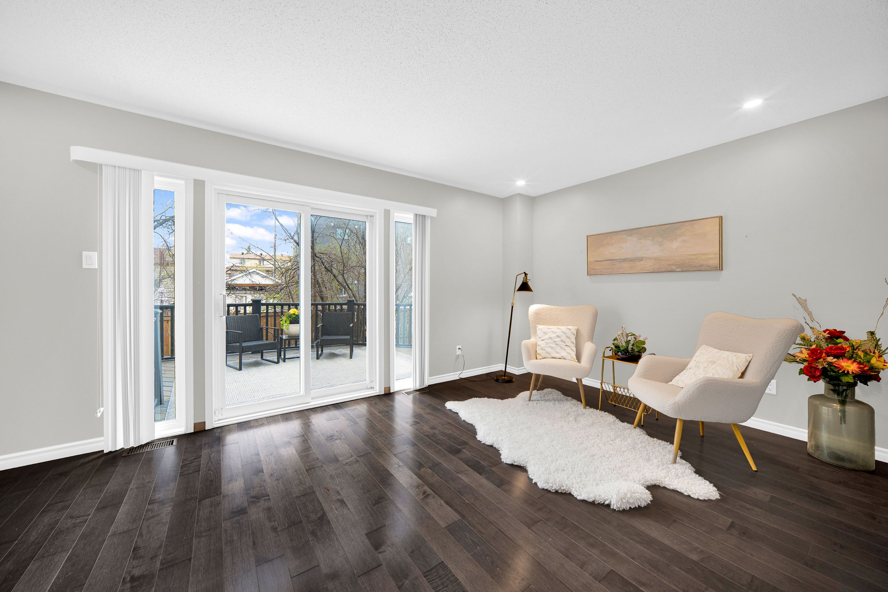 Welcome to this beautifully maintained end unit townhome with hardwood floors throughout that truly hits different from the moment you arrive, featuring brand new interlocking steps and modern brick facade that set the tone. The main floor offers a spacious family room that walks out to a refreshed deck framed by mature trees, giving you that rare mix of light and privacy. Head up to the second level and you get that instant wow moment with a bright, open concept layout and pot lights throughout, anchored by a stone accent wall w/gas fireplace and large windows that bring the outside in. The kitchen flips the vibe in the best way, south facing and sun filled with light tones, quartz counters, stainless steel appliances, and laundry conveniently nearby. The top floor features three generous bedrooms and two full bathrooms, including an updated ensuite and main bath. With clear pride of ownership evident throughout, this home is truly move in ready and perfectly located just minutes to the lrt, with quick access to the highway and downtown, close to the general hospital, ottawa stadium and surrounded by amenities including st laurent shopping centre and train yards for all your everyday needs.