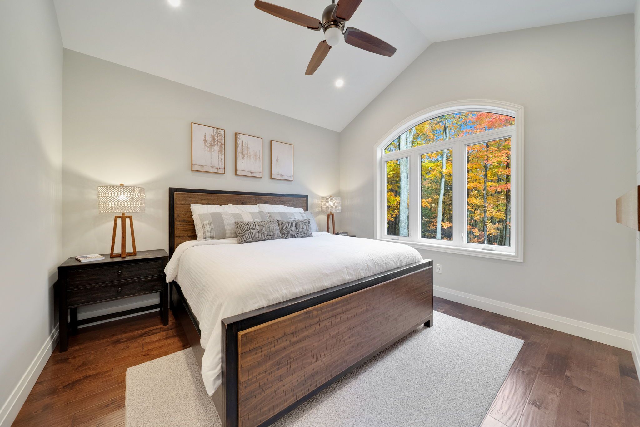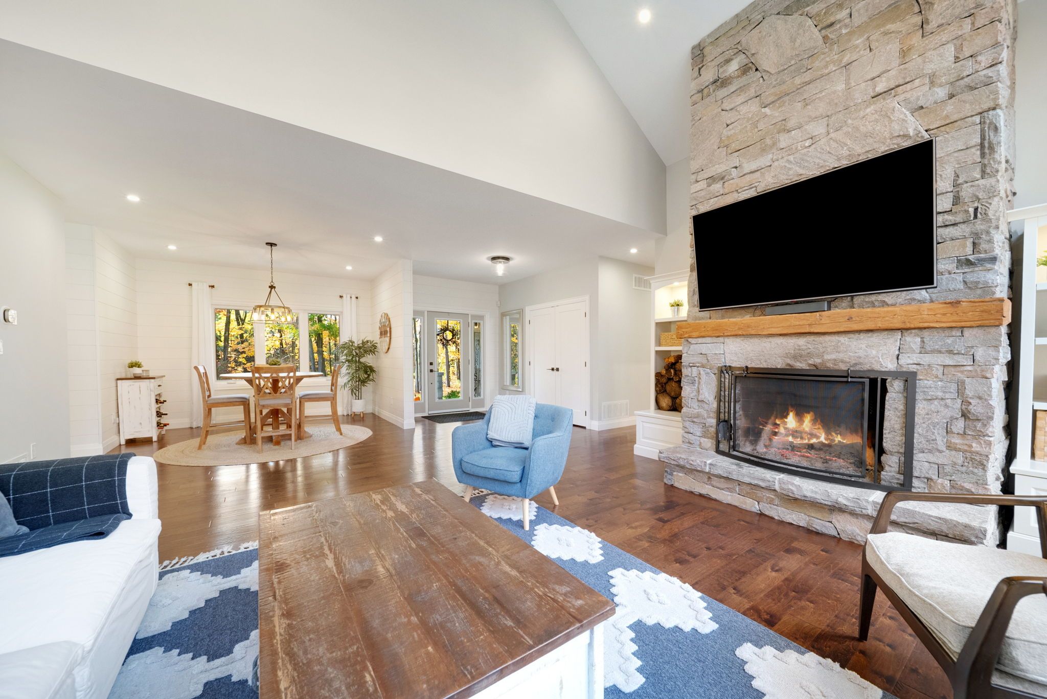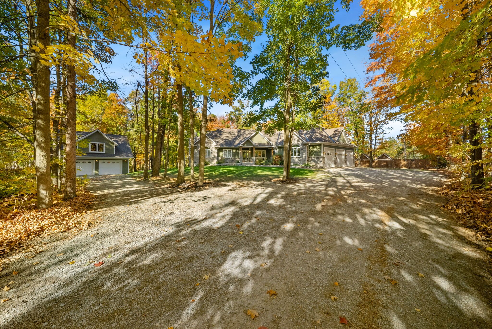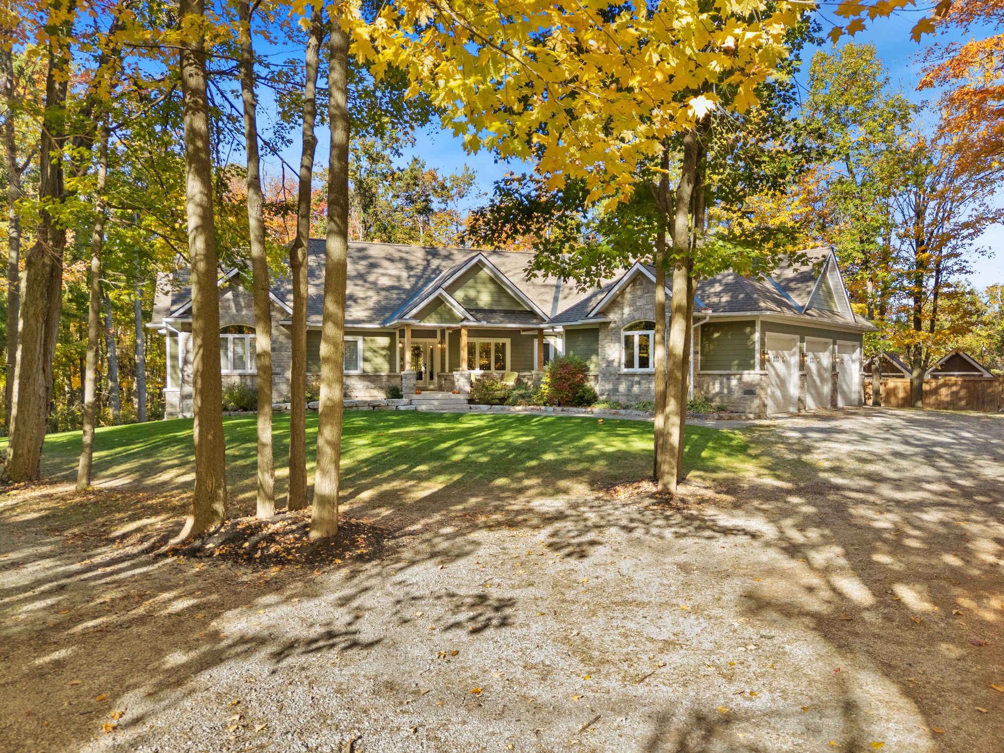 Welcome to your private getaway just 5 minutes from orillia! This custom-built bungalow sits on a private 1-acre lot just a short walking distance to bass lake. The home has great curb appeal with stone and siding finishes, big gable peaks, and both an attached oversized 3-car garage and a detached 2-car garage with a loft above. Inside, you'll find an open, functional layout with a hidden room tucked behind the kitchen cupboards - perfect for a pantry or home office. The 3-season muskoka room is the ideal spot for morning coffee and is totally privacy with no neighbours in sight. The detached garage has water and hydro, high ceilings, and an 800 sq ft loft that's great for storage or could be finished as an apartment. Downstairs, the fully finished lower level offers a bright in-law suite with two walkouts that make it feel like its own main floor. Thoughtful landscaping ties everything together, giving the whole property a warm, welcoming vibe.