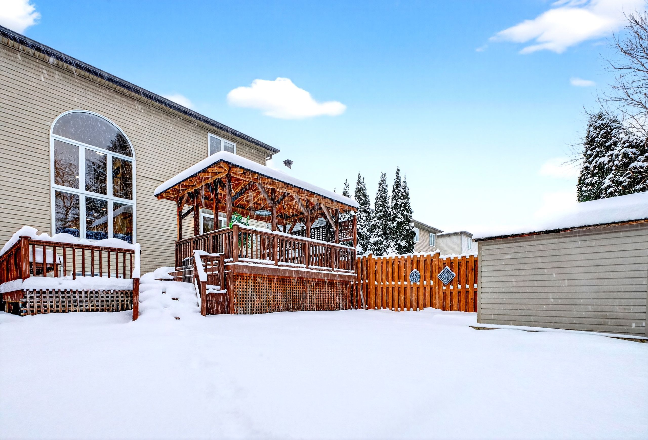Open-house: december saturday 20th- sunday 21st, 2-4pm! Beautiful, bright and spacious family home with 4 bedroom + den featuring elegant hardwood flooring throughout and an abundance of natural light. Upon entry, you are welcomed by a formal living room, dining area, and a main-floor den, ideal for a home office or study. As you move through the home, the layout opens to an impressive open-concept kitchen and family room with soaring ceilings, a cozy fireplace, and large windows that flood the space with sunlight. The kitchen is equipped with quartz countertops, gas stove, and stainless steel appliances and offers direct access to the backyard - perfect for indoor-outdoor living. Step outside to a private backyard backing onto open green space with no rear neighbours, complete with a deck and gazebo, ideal for relaxing or entertaining. Upstairs, hardwood flooring continues throughout and you'll find 4 generously sized bedrooms, including a spacious primary retreat with a walk-in closet and luxurious 5-piece ensuite. Two of the additional bedrooms also feature walk-in closets, while all three secondary bedrooms are well-proportioned. A full 4-piece main bath and the convenience of upper-level laundry complete this level. The fully finished lower level offers a large recreation room with a fireplace, providing excellent additional living space for family enjoyment. Ideally located in a highly sought-after, family-friendly neighbourhood, just minutes to downtown ottawa, montfort hospital, nrc, cmhc, shopping, transit, and everyday amenities. The area offers access to well-regarded public, catholic, and french schools, making this an exceptional opportunity for families seeking space, comfort, and an unbeatable location.