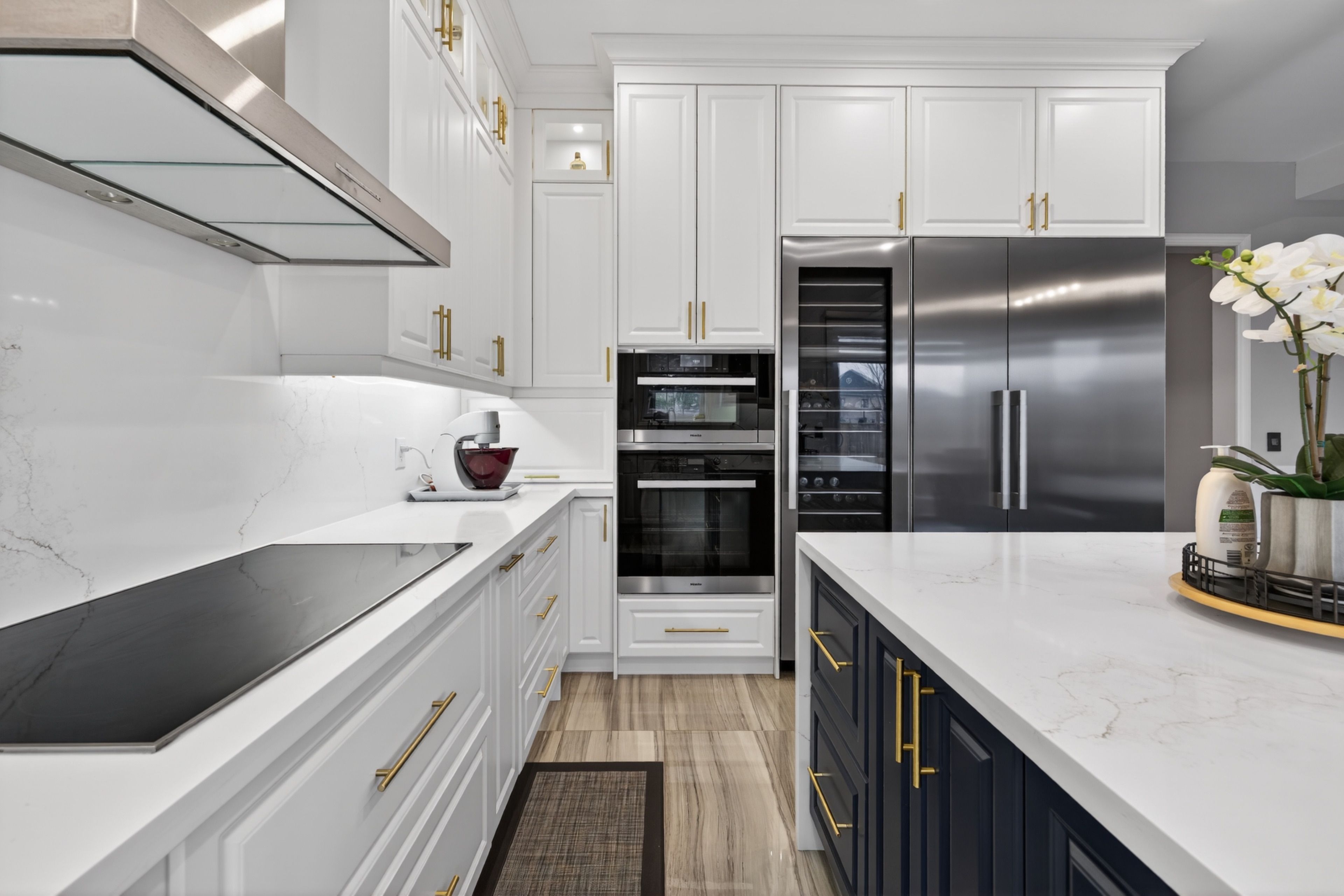 • Modern kitchen featuring high-end appliances and quartz counters.