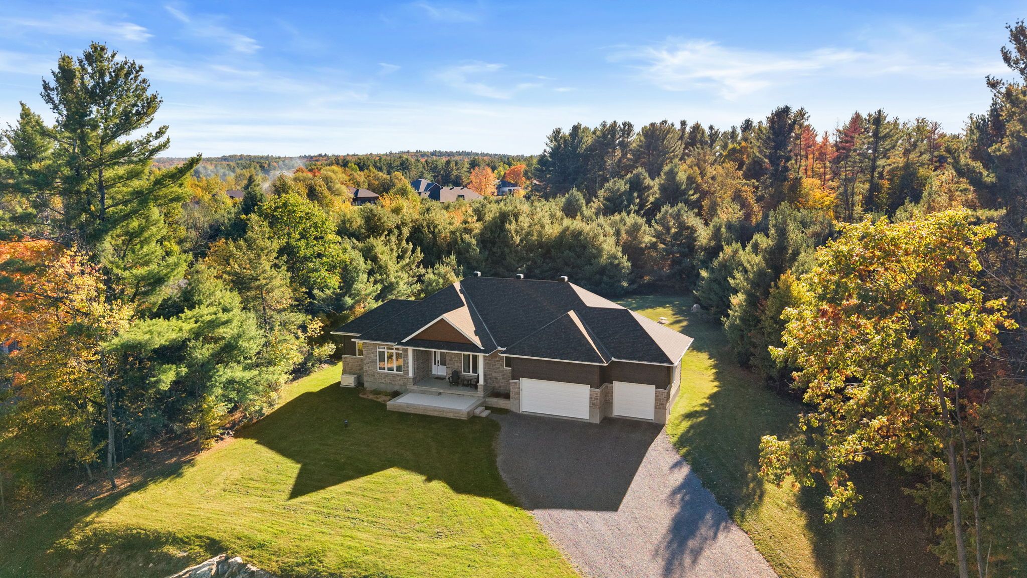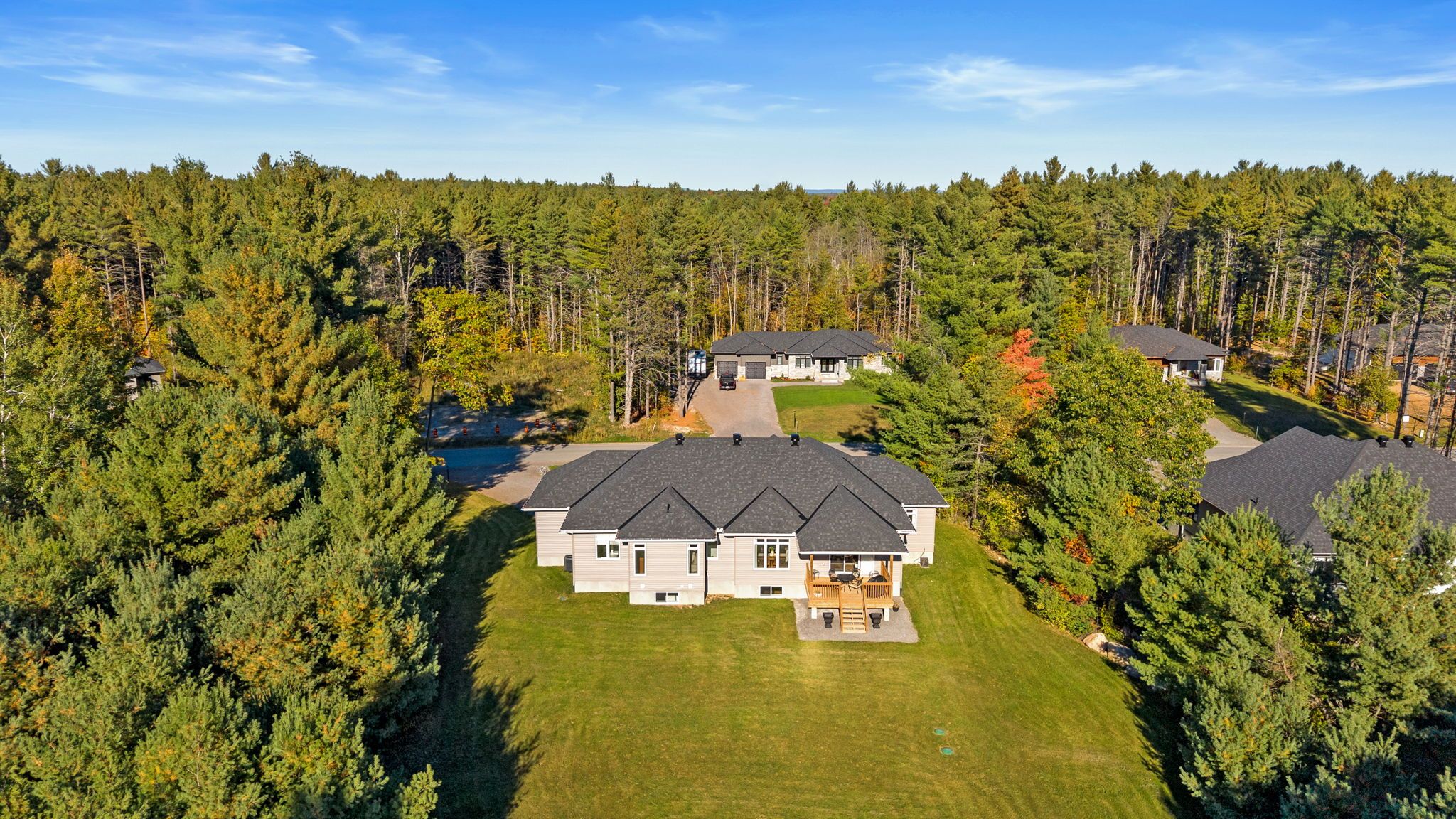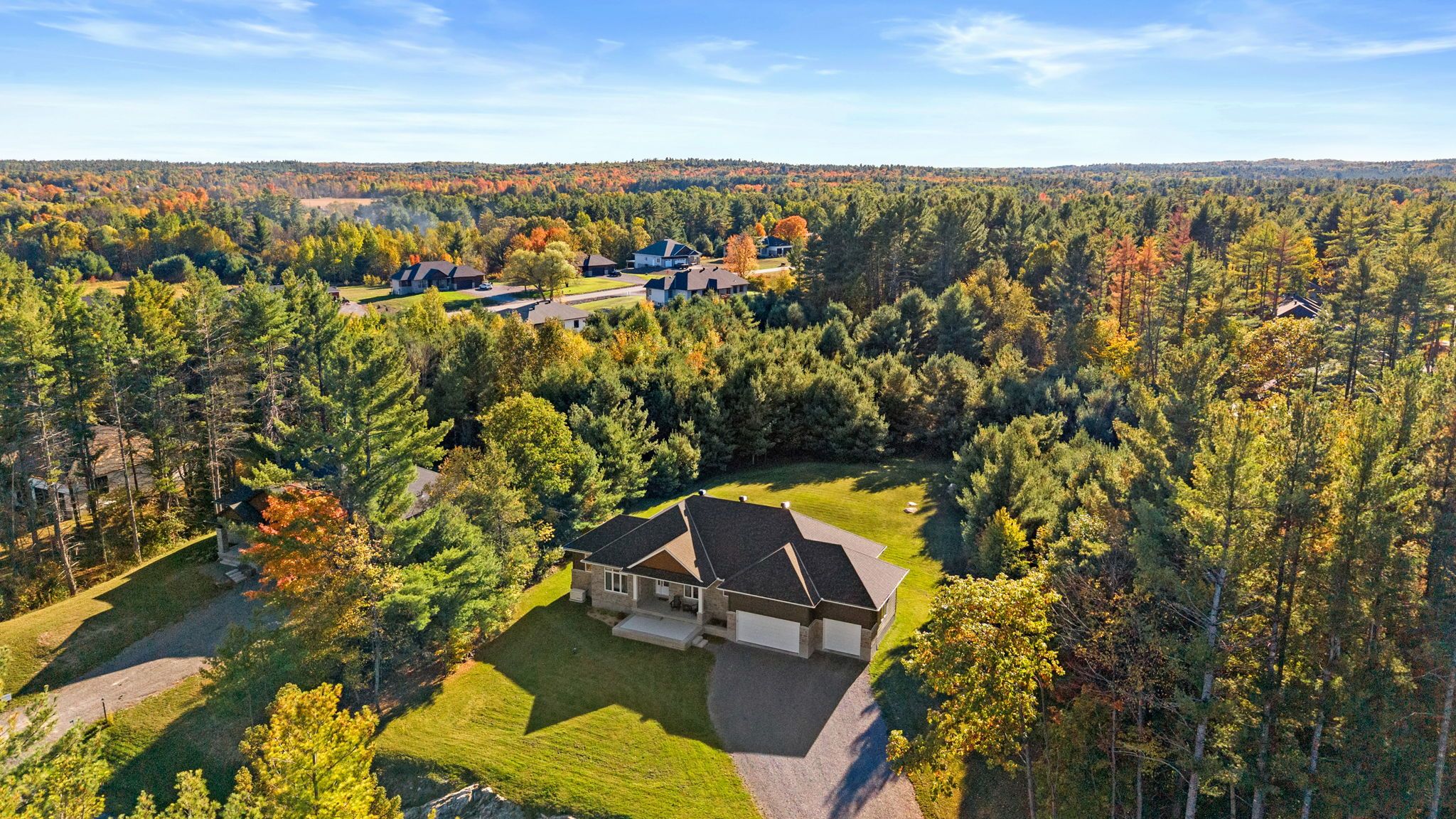 Nestled on an approx. 1. 10-acre lot in glasgow ridge, this beautiful property offers a serene country setting while providing an easy commute to amenities. Outdoors, the covered porch opens to the landscaped yard framed by mature trees, creating a private & inviting area to relax and unwind within the surroundings. Above and beyond the stunning mackie features additional upgrades include an owned tankless hot water system, full-home backup generac generator, outdoor surveillance cameras, app-controlled lighting & irrigation system for front and back yards, and a top-of-the-line water softener and uv system. The professionally finished lower level extends the living space for guests & family, featuring a generous recreation room with a wet bar / refreshment station, a 3-pc bathroom & a bonus room. The main living area features an open concept layout filled with natural light. It is accented by recessed lighting, transom windows, smooth ceilings, custom window treatments & upgraded hwd floors throughout the main level. A two-toned kitchen showcases upgrades of an elegant herringbone backsplash, quartz countertops, ss appliances & a centre island that serves as a natural gathering spot. The space flows seamlessly into the dining room and a welcoming great room, where a fireplace creates a warm focal point. From here, the great room opens onto a covered porch with a gas line for bbqs, offering an effortless connection to the outdoors. The primary bd includes a walk-in closet & a luxurious 5-pc ensuite, while two secondary bds share a thoughtfully designed jack-and-jill family bathroom. The main floor also offers a bright & inviting office overlooking the front yard, perfect for work, study, or creative pursuits. Additional features include a powder room & a spacious laundry room/family entrance with a built-in entryway mudroom storage and seating area, and interior access to the 3-car garage. This home also continues to be covered under the tarion warranty.