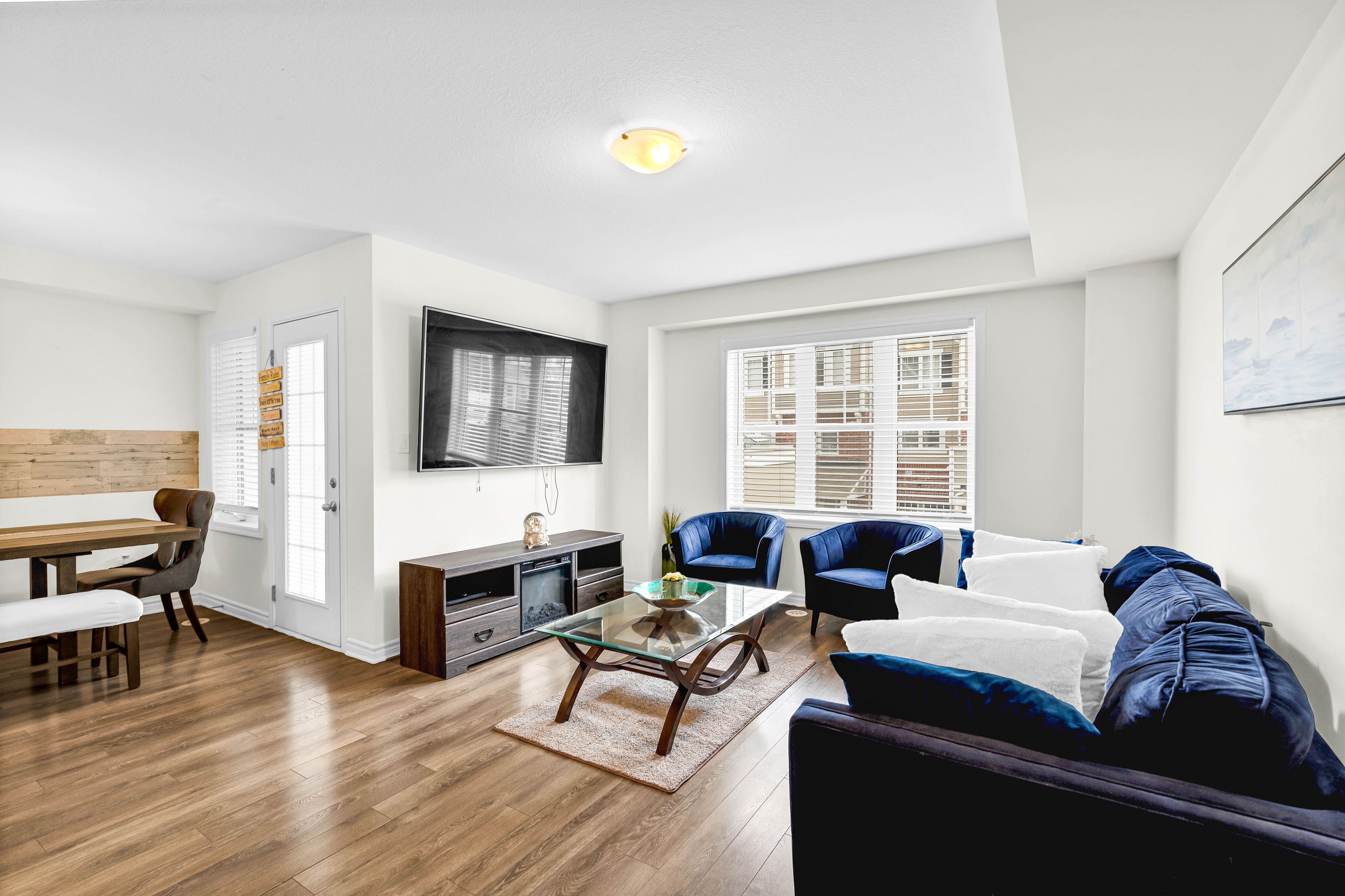 Welcome home! Discover exceptional living in this stunning three-storey freehold townhouse built by mattamy, ideally situated in the prestigiousriver mill community. Designed for modern lifestyles, this home offers three generously sized bedrooms and 2. 5 stylish bathrooms across athoughtfully planned layout. The heart of the home is a bright, open-concept kitchen, living, and dining space-perfect for entertaining oreveryday comfort-flowing effortlessly onto an oversized balcony ideal for al fresco dining or relaxing evenings. The kitchen is a chef's delight,featuring sleek graynite countertops, while rich laminate flooring throughout the main and second levels pairs beautifully with an eleganthardwood staircase. The spacious primary suite includes dual his-and-her closets, offering ample storage and functionality. Enjoy theconvenience of direct garage access and a commuter-friendly location just minutes from highway 401. Surrounded by top-rated schools, parks,and essential amenities, this is a rare chance to own a beautifully appointed home in one of the area's most desirable neighborhoods. Book yourprivate showing today to make it yours!