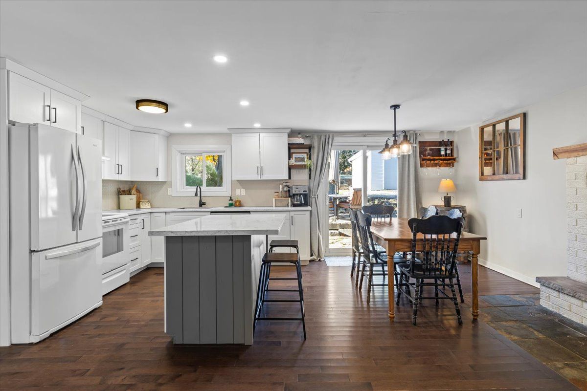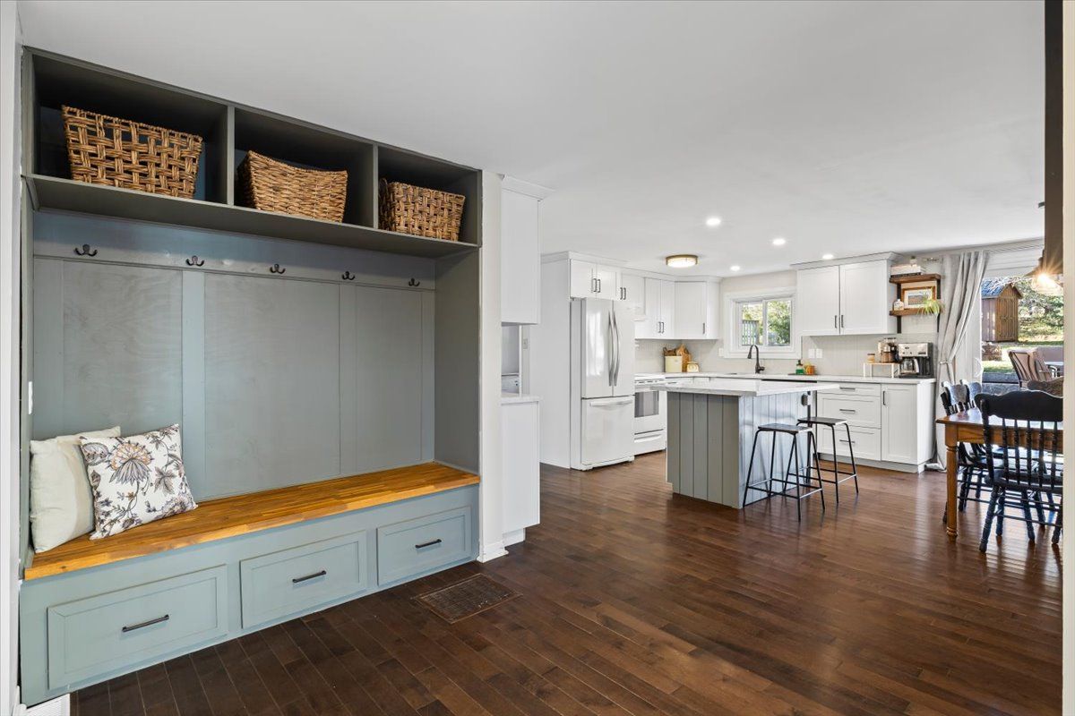 A welcoming 4 bedroom, 2 bath home that has been updated in the right places and feels comfortable the moment you walk through the door. The updated kitchen features additional pantry cabinets and an island that naturally becomes the gathering spot, while built-in storage at the front entry keeps everyday items neatly organized. The dining area with its wood-burning fireplace is where winter evenings feel extra special, and a separate living room offers a comfortable space for movie nights, card games or quiet time at the end of the day. Main floor living works beautifully here. One bedroom can serve as the primary, while the second offers the option of a spacious walk-in closet or dressing room. A 3-piece bath on this level keeps daily routines simple. If all four bedrooms are not needed, the fourth works nicely as a home office or toy room, helping keep the main living spaces tidy. Upstairs are two additional bedrooms and a full bath that work well for family, guests or hobby space. Step outside to the backyard patio area, accessible from both the dining room and the spacious main floor laundry room. This is where summer evenings are spent enjoying dinners with friends, weekend bonfires and plenty of room for kids or pets to play. Life in feversham means you can walk to the village store, head to the arena or take an evening stroll to the park just up the road, making day-to-day living easy while still enjoying the charm of a small community. Heating and cooling is efficient with a propane furnace (2021), heat pump and ac (2025). The detached garage is ideal for parking or storage and the newer shed adds even more space for items that need their own spot. Set in the quaint village of feversham, this is a beautiful place to raise a family, enjoy weekends away or settle into a friendly community where life moves at a comfortable pace. A home that feels easy to settle into.