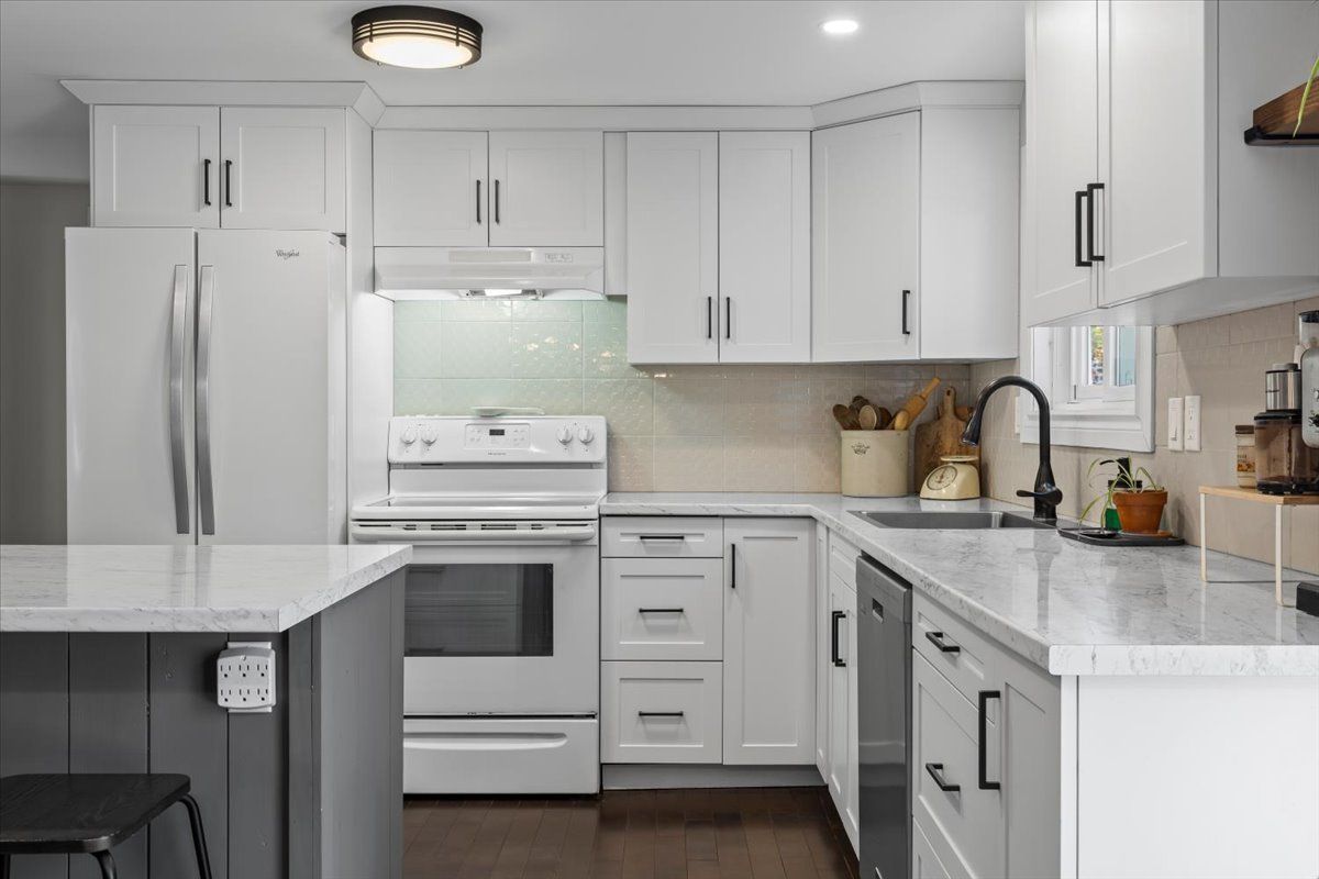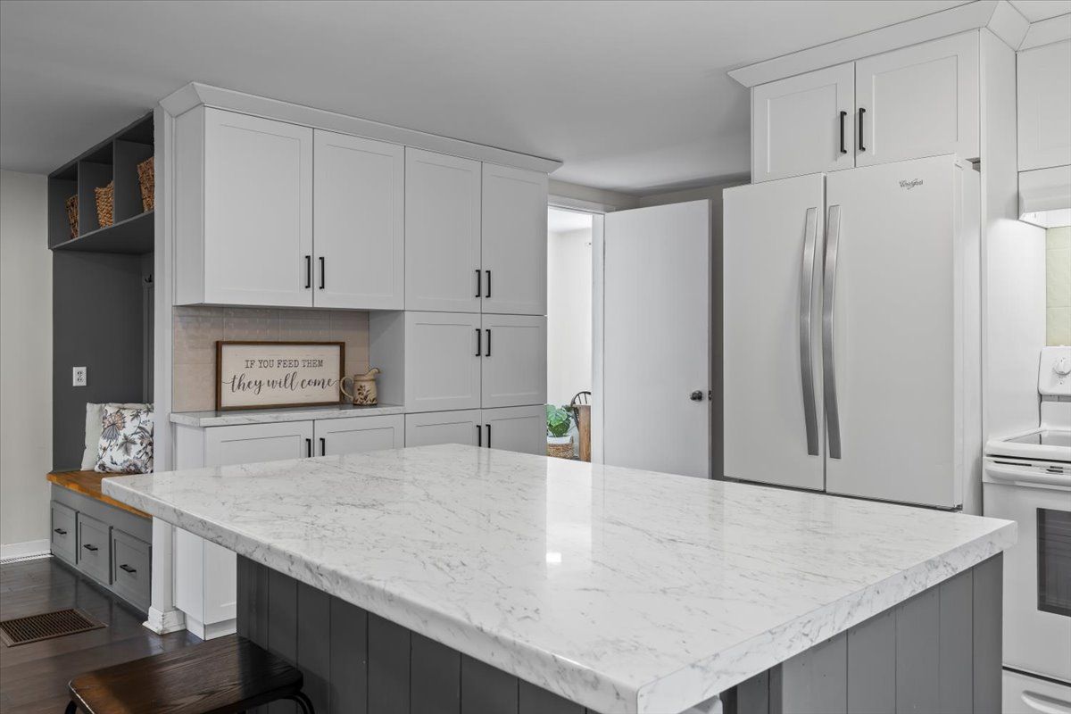 • Updated kitchen features an island and extra pantry storage for convenience.