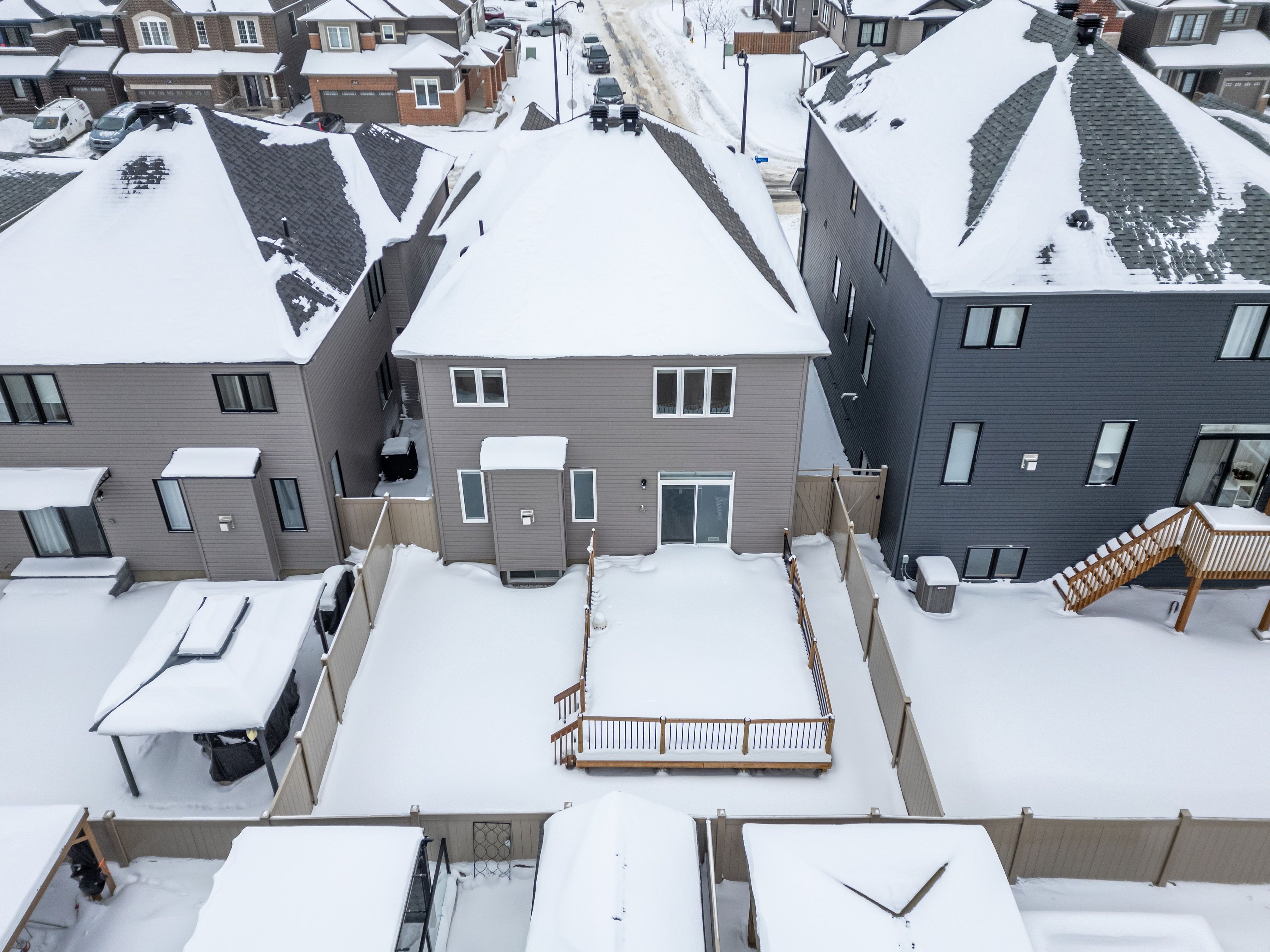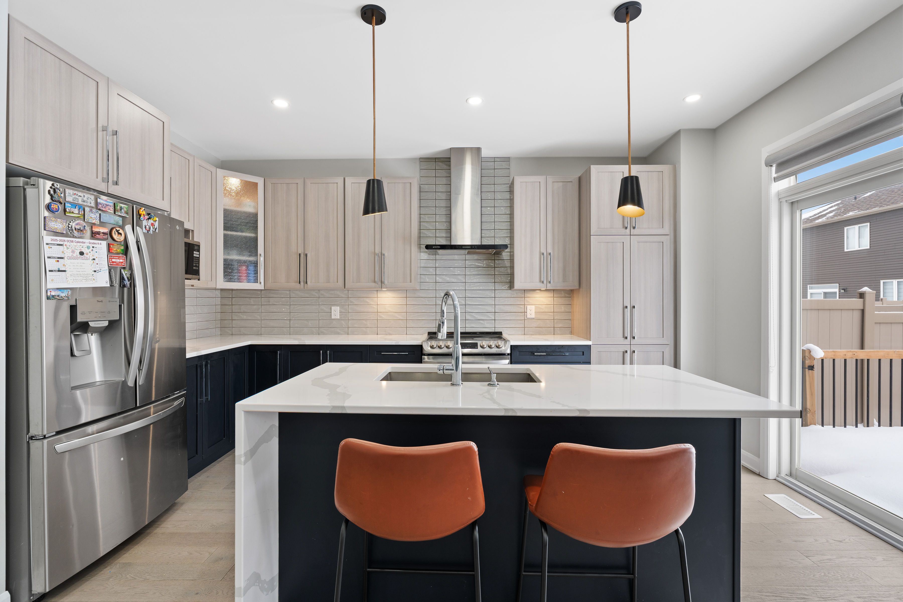 Experience refined living in this exceptional barrhaven single-family home, thoughtfully enhanced with extensive high-end interior and exterior upgrades. From the moment you step inside, 9-foot smooth ceilings, rich upgraded hardwood flooring, and a striking hardwood staircase set the tone for elevated everyday living. The chef-inspired kitchen is designed to impress, featuring premium two-toned cabinetry, calcutta quartz countertops, and a stunning waterfall island that naturally becomes the heart of the home perfect for morning coffee, family dinners, and effortless entertaining. The inviting family room is anchored by a stylish upgraded fireplace feature wall, creating a warm and sophisticated space to unwind. Upstairs, four spacious bedrooms and beautifully upgraded bathrooms with sleek glass showers and quality finishes offer comfort and privacy for the whole family. Plush high-end carpeting adds softness where it matters most, while the fully finished basement provides versatile space for a recreation room, home gym, or cozy movie nights. Recessed pot lights and custom window coverings throughout the home add both style and function. Step outside to your own fully fenced, low-maintenance backyard retreat, featuring a custom deck and modern landscaping, thoughtfully designed for relaxing summer evenings and effortless year-round enjoyment. Perfectly located near schools, parks, shopping, and recreation, this truly move-in-ready home blends luxury, comfort, and lifestyle.