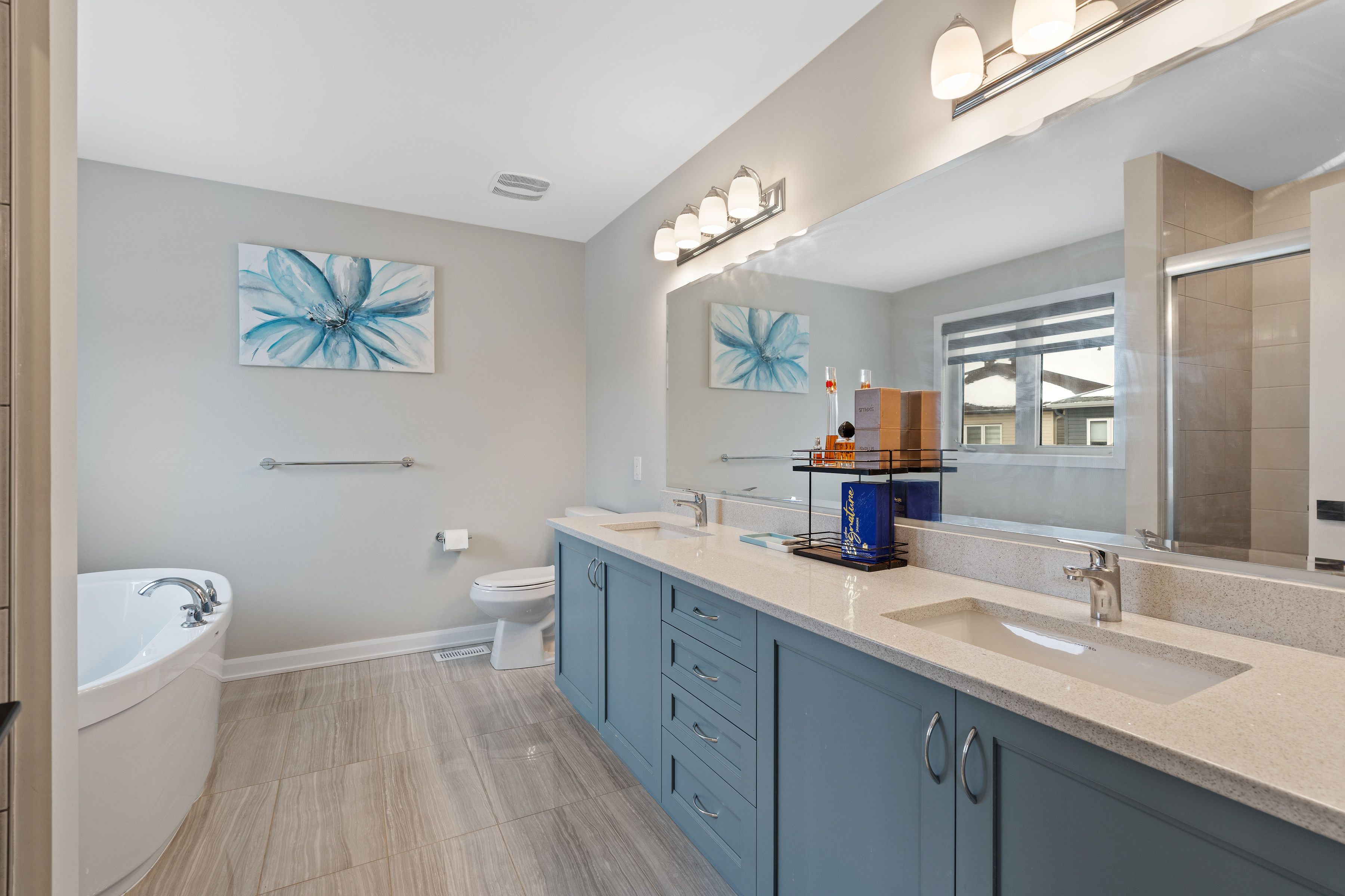 • Chef-inspired kitchen with quartz countertops and waterfall island.