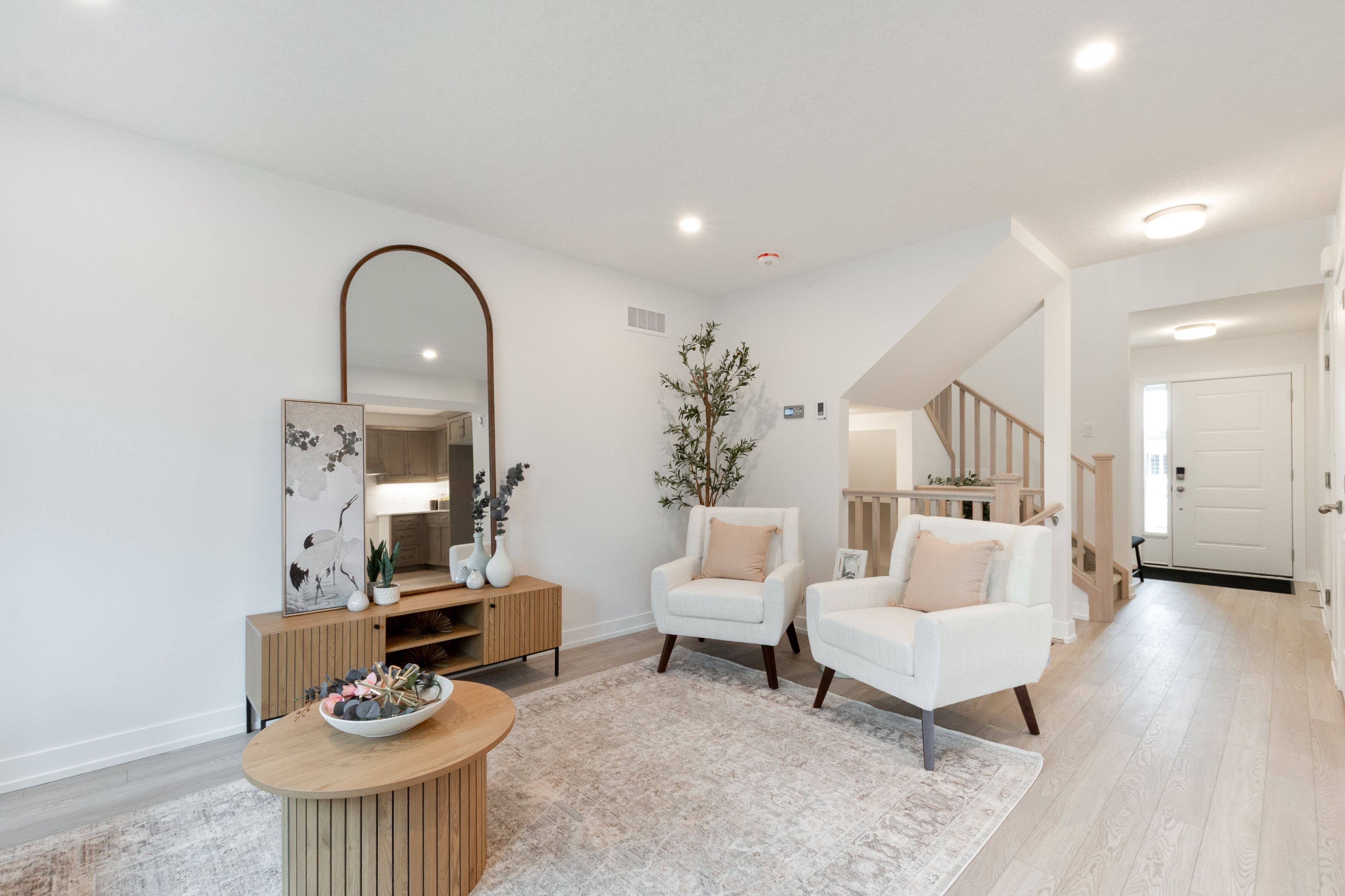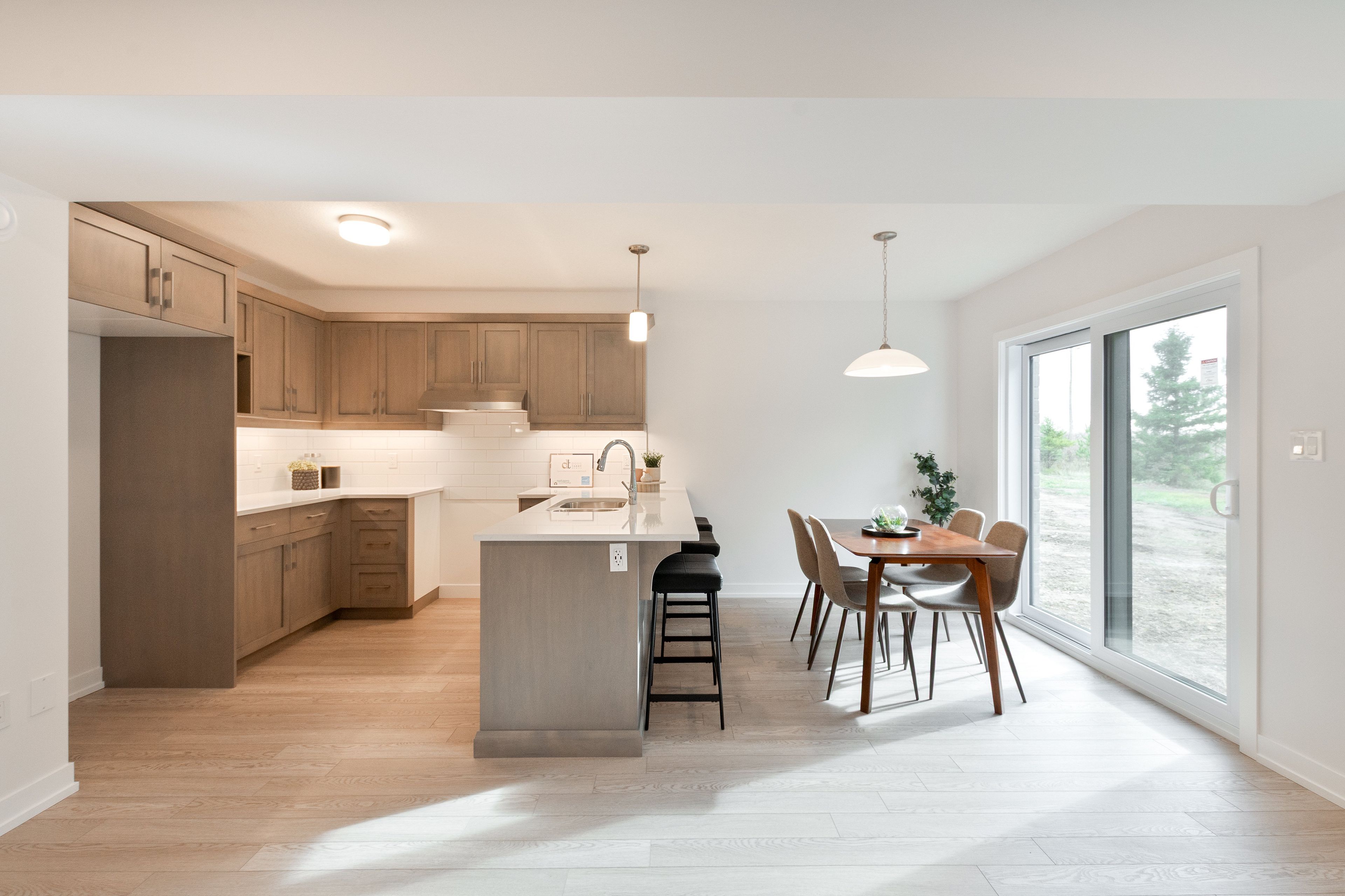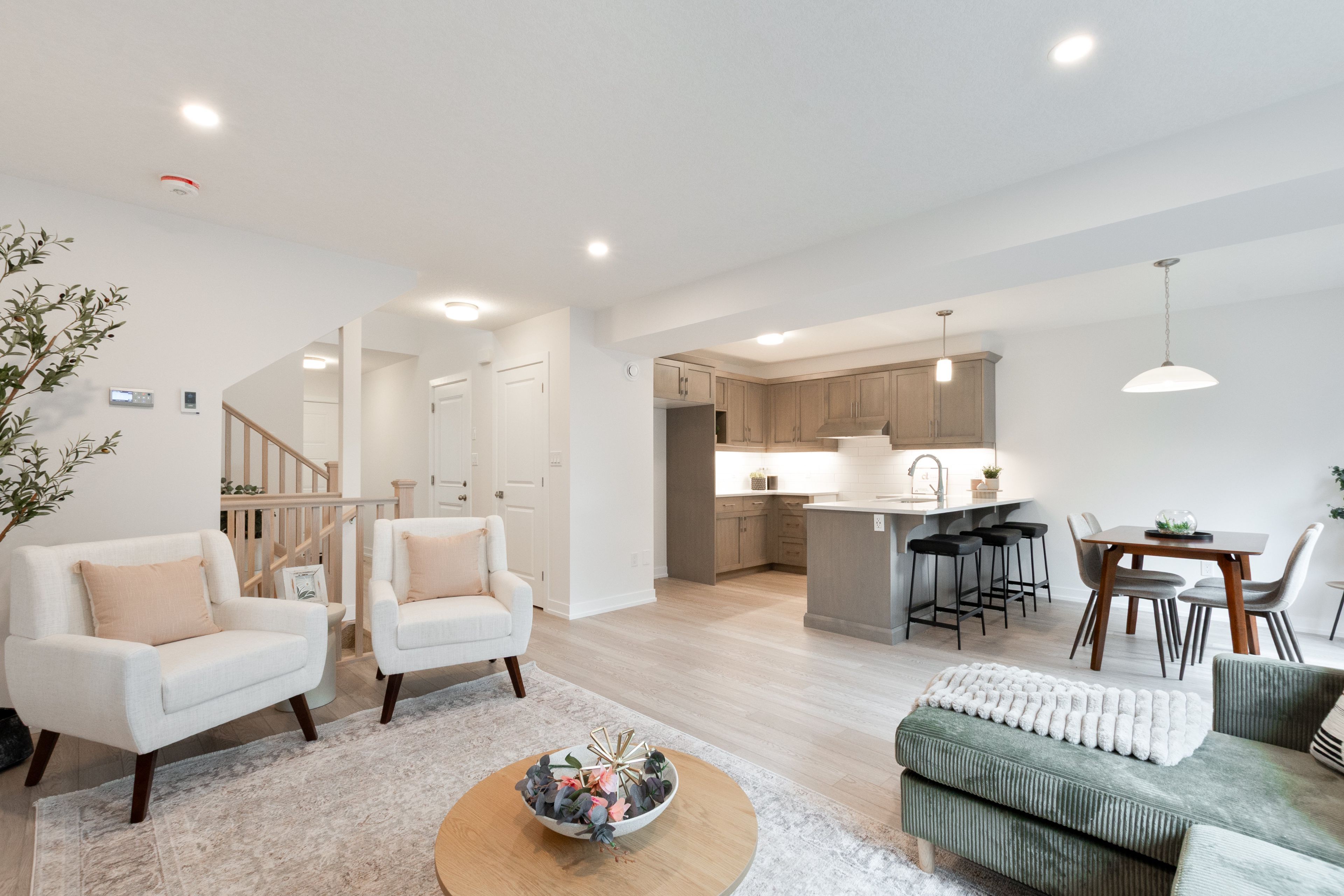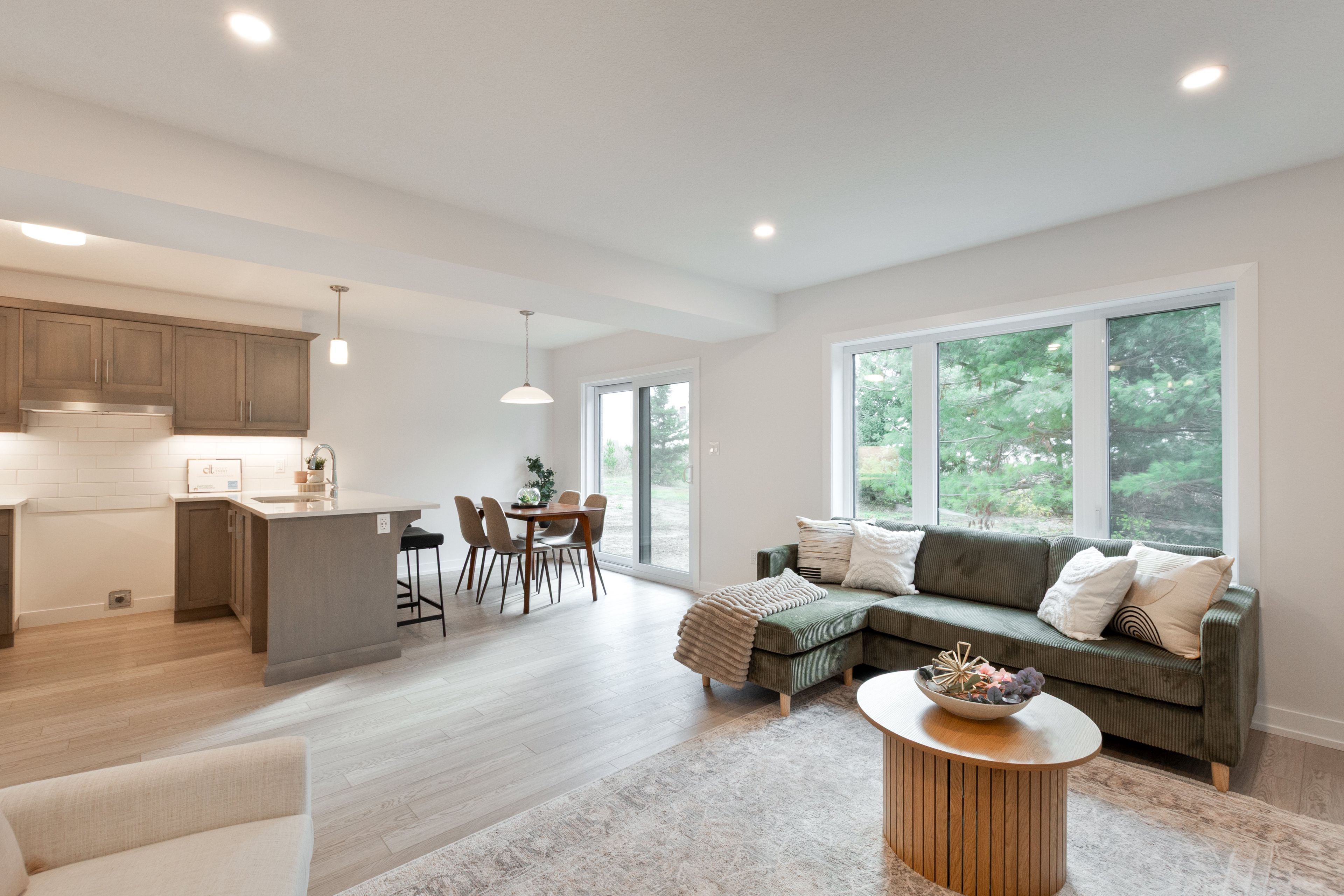 • Open concept main floor with kitchen, dining, and great room.