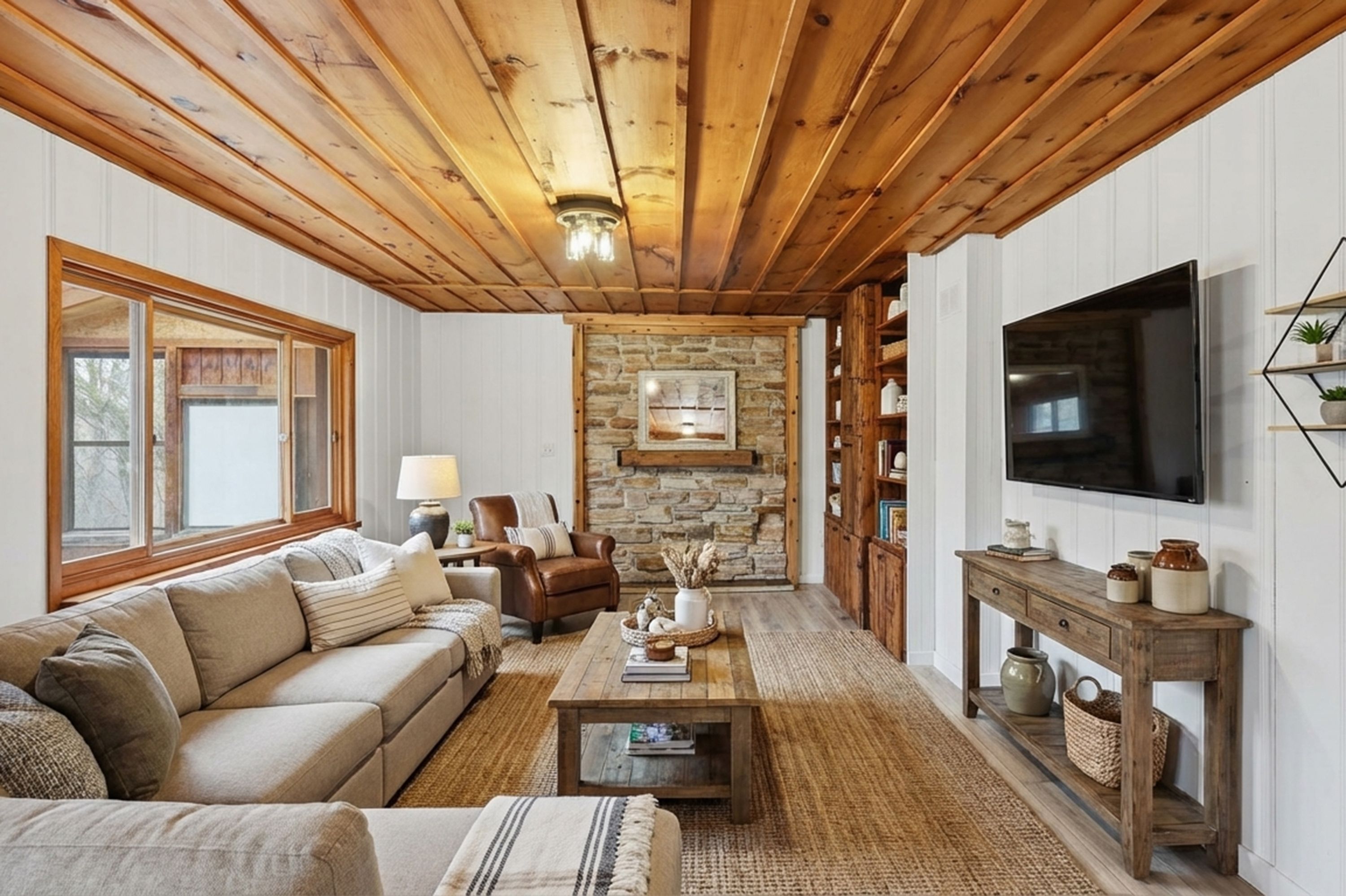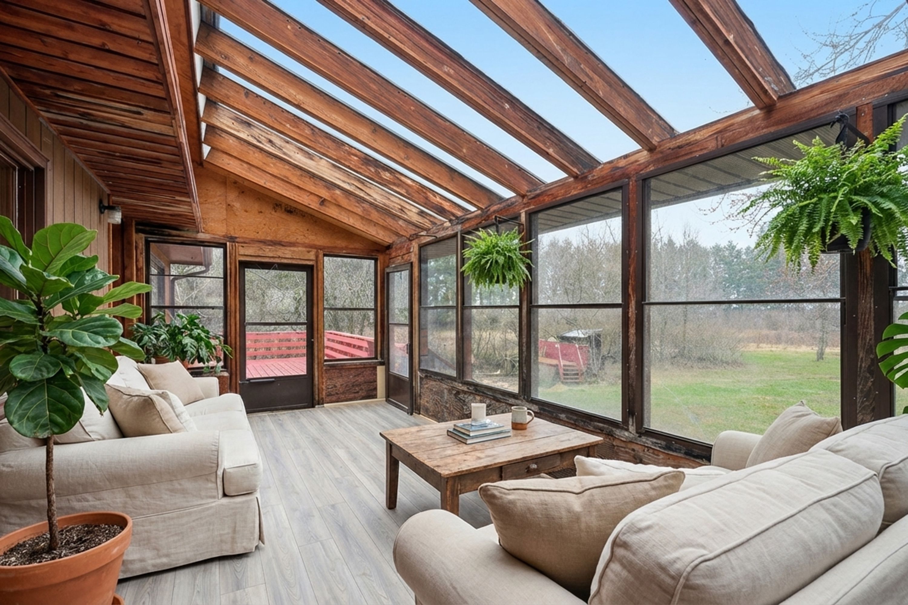 • Bright three-season sunroom perfect for relaxation or nurturing plants.