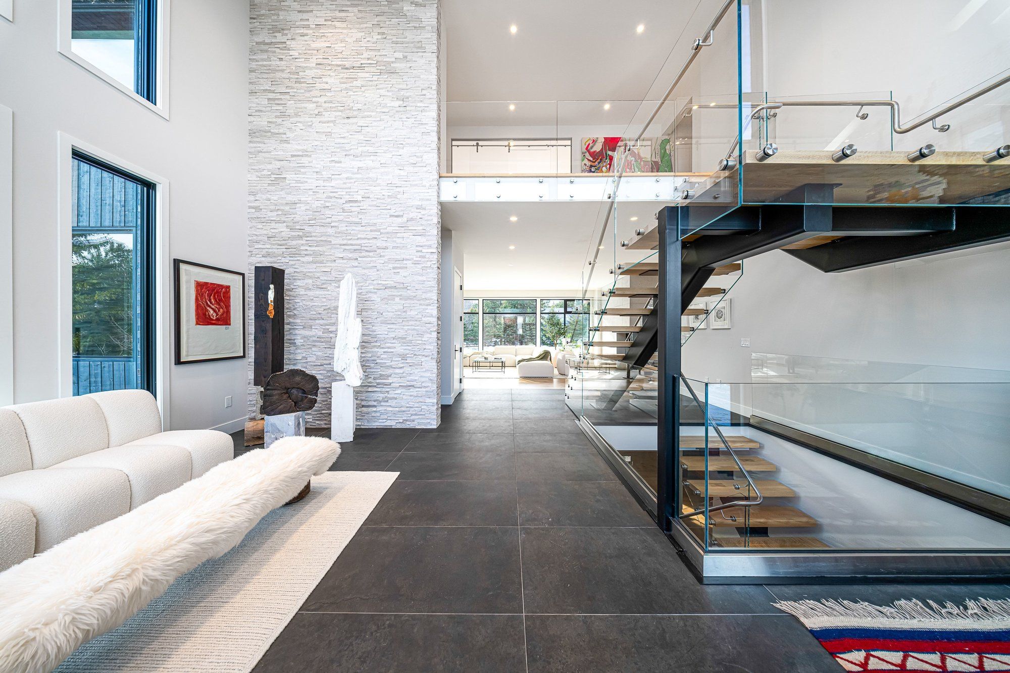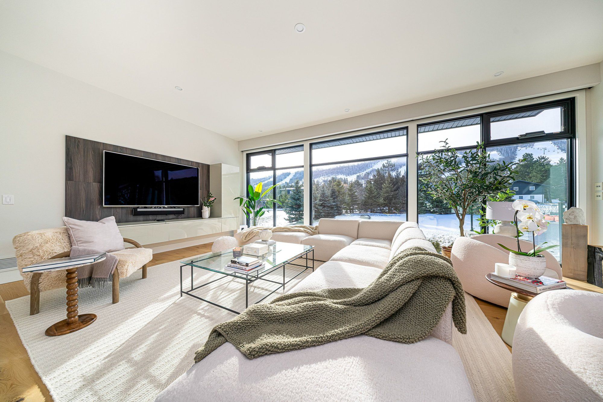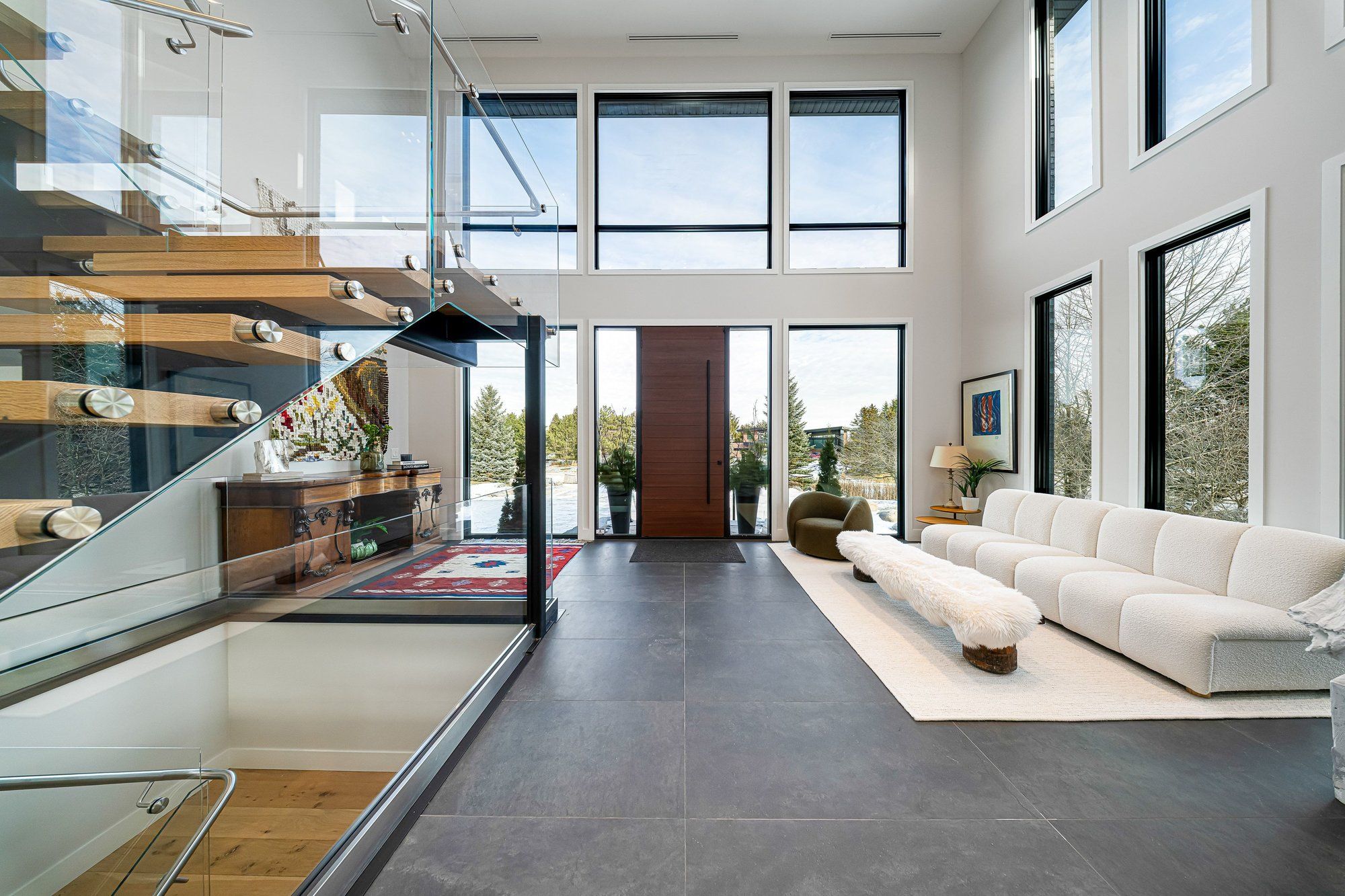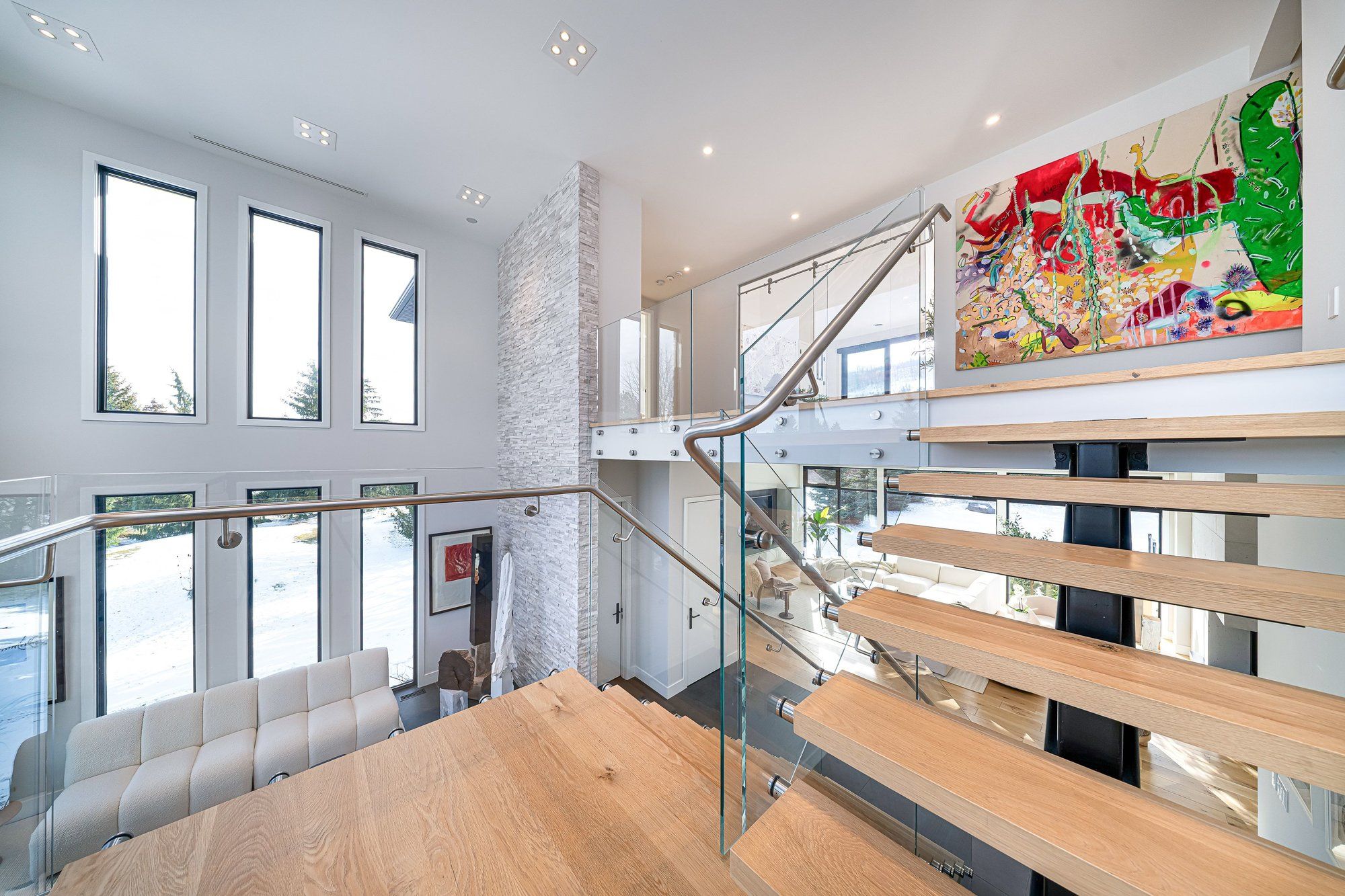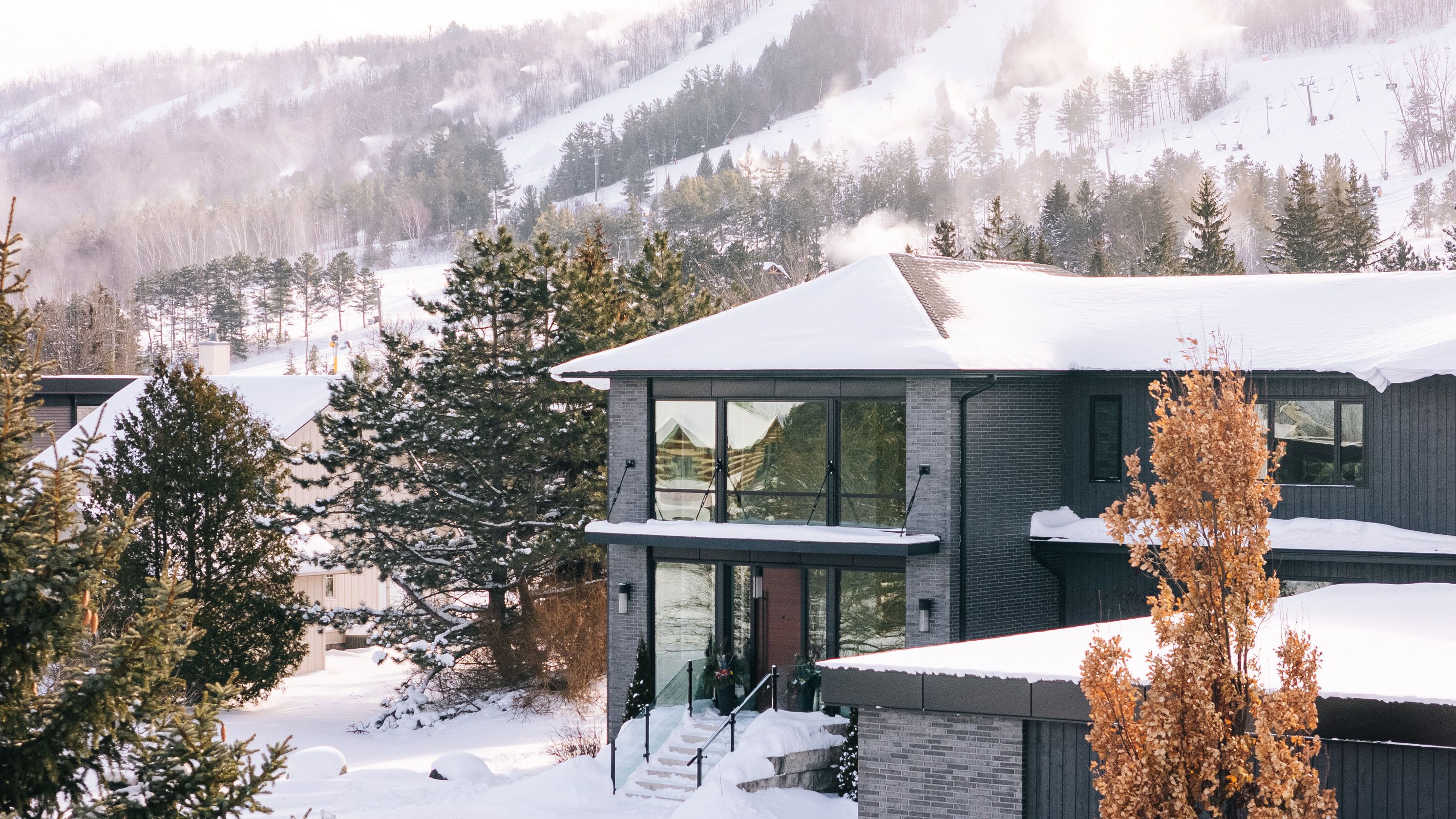 Walk to the ski hills! Experience awe-inspiring escarpment vistas from this meticulously designed luxury residence set in the heart of the blue mountains on a quiet, private cul-de-sac. Encompassing over 8,500 square feet of thoughtfully curated living, wellness, and entertaining space on an expansive 0. 85-acre lot, this extraordinary home offers seven generously proportioned bedrooms and nine impeccably appointed bathrooms. A dramatic arrival sequence unfolds through soaring two-storey, floor-to-ceiling glazing, where light-filled interiors are anchored by a striking glass floating staircase-an architectural centre piece that frames panoramic mountain views. The main level is purpose-built for sophisticated entertaining, featuring a refined bar, a bespoke muti-designed kitchen with premium miele and sub-zero appliances, a sculptural three-sided fireplace, and seamless indoor-outdoor flow to an expansive deck and hot tub. Balancing lifestyle and productivity, the home includes a main-floor gym or studio with mountain views and professional-grade equipment, alongside a private office retreat. Radiant in-floor heating ensures year-round comfort, while a whole-home sonos system and automated lutron blinds deliver effortless ambiance. A heated three-car garage connects to a functional mudroom with dedicated storage for ski and outdoor gear. The upper level offers a serene private sanctuary with four luxurious ensuite bedrooms and an elegant lounge wrapped in architectural glass, opening to a walk-out balcony. A glass-enclosed breezeway leads to the primary suite-an exceptional retreat with sweeping views, a spa-inspired ensuite, & multiple walk-in closets. The lower level extends the home's entertaining appeal with three additional ensuite bedrooms, a spacious recreation lounge with kitchenette, wet bar, and a private, oversized screening room. This residence is a masterful expression of modern mountain luxury.