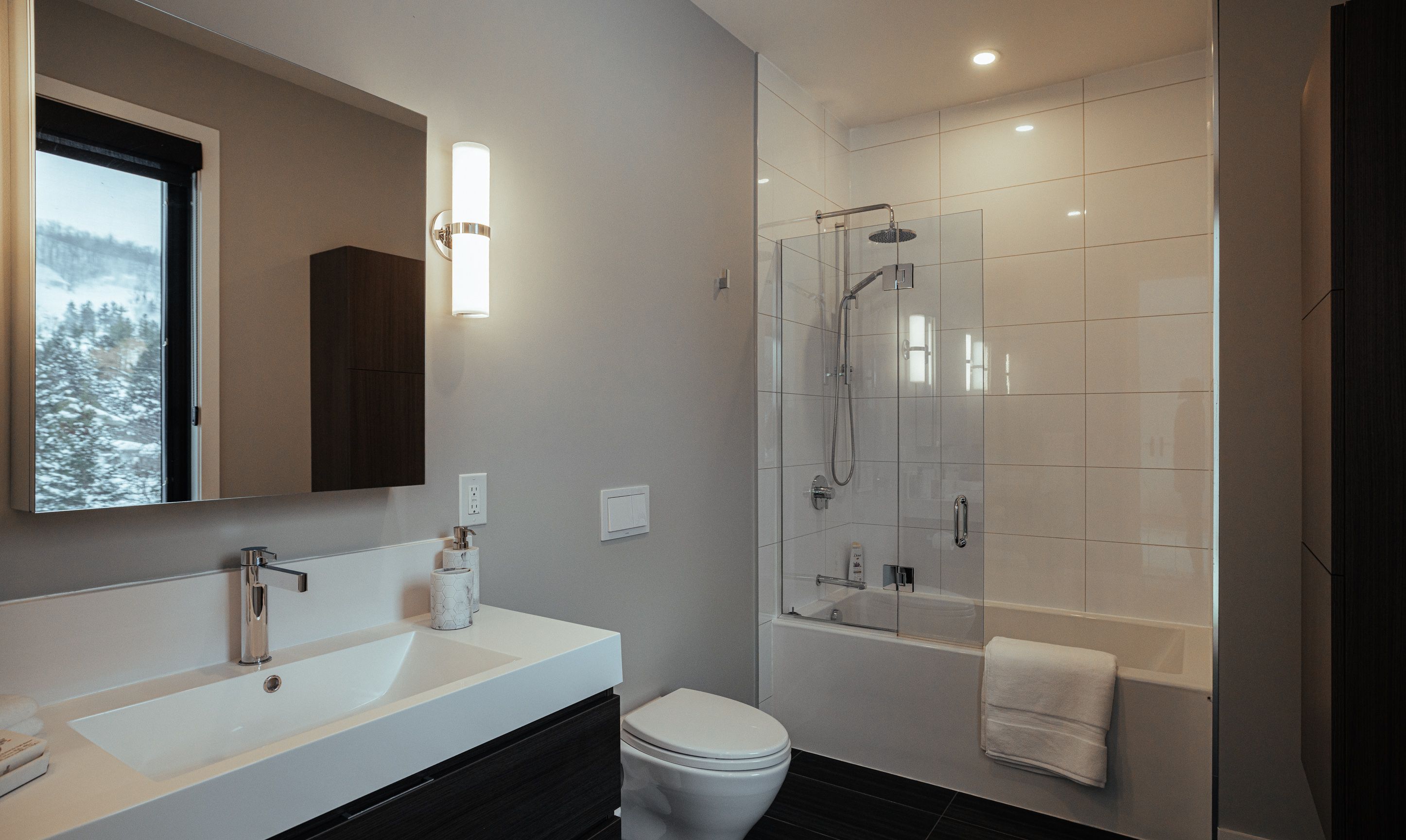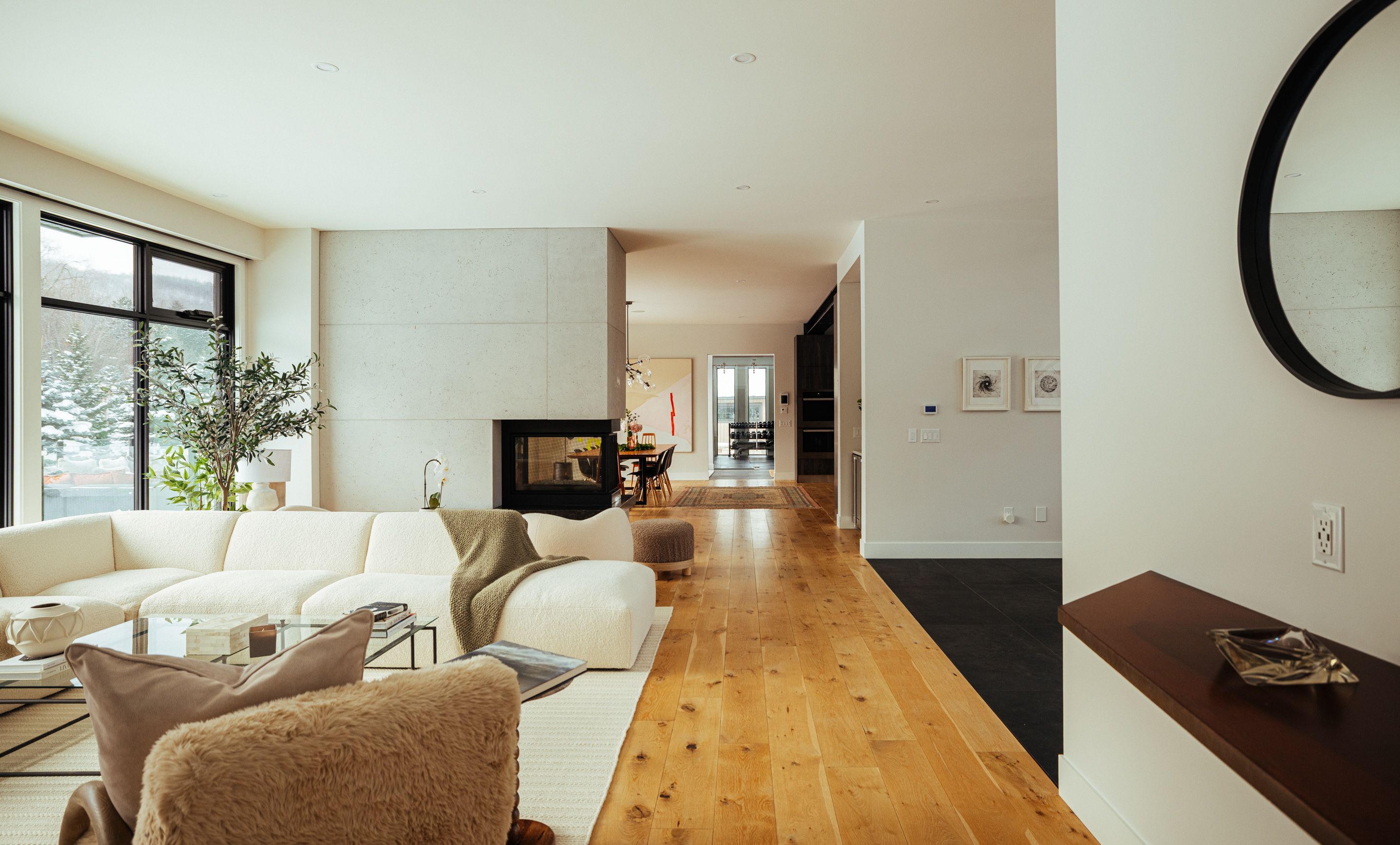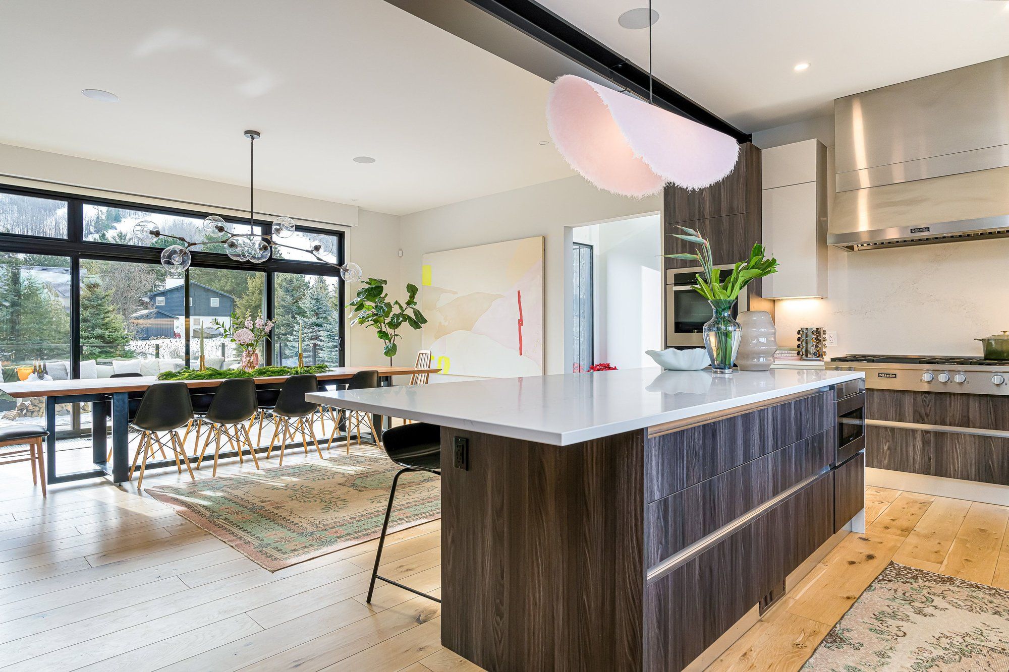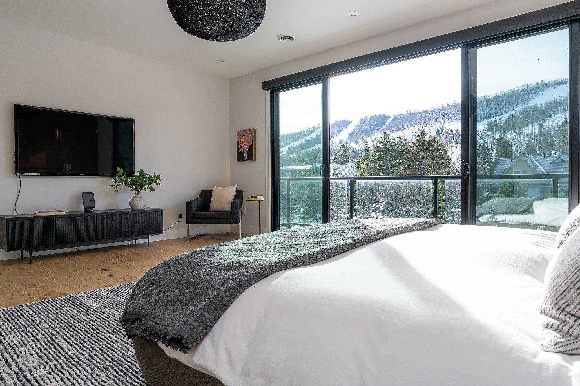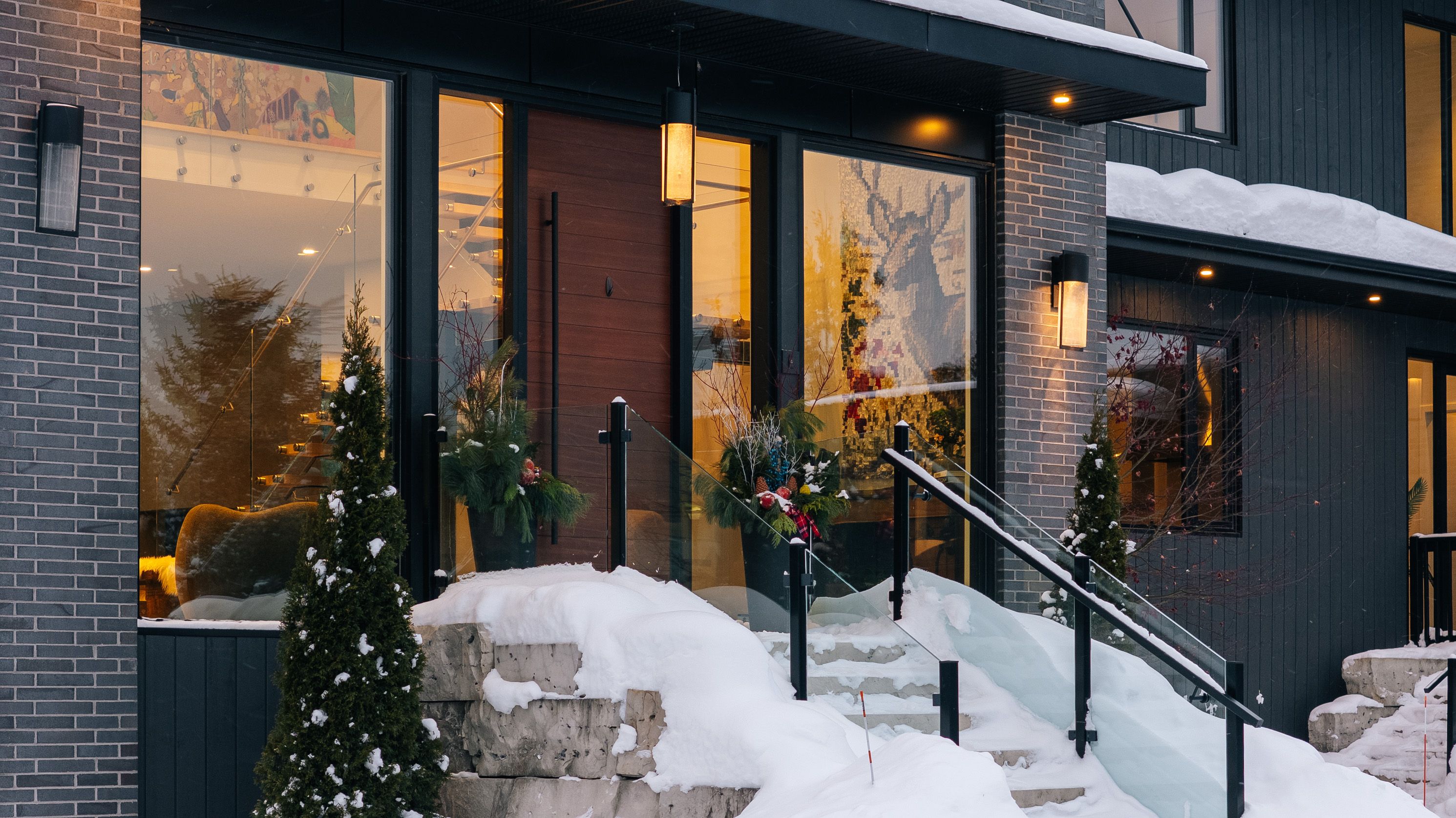 Walk to the ski hills! Experience awe-inspiring escarpment vistas from this meticulously designed luxury residence set in the heart of the blue mountains on a quiet, private cul-de-sac. Encompassing over 8,500 square feet of thoughtfully curated living, wellness, and entertaining space on an expansive 0. 85-acre lot, this extraordinary home offers seven generously proportioned bedrooms and nine impeccably appointed bathrooms. A dramatic arrival sequence unfolds through soaring two-storey, floor-to-ceiling glazing, where light-filled interiors are anchored by a striking glass floating staircase-an architectural centre piece that frames panoramic mountain views. The main level is purpose-built for sophisticated entertaining, featuring a refined bar, a bespoke muti-designed kitchen with premium miele and sub-zero appliances, a sculptural three-sided fireplace, and seamless indoor-outdoor flow to an expansive deck and hot tub. Balancing lifestyle and productivity, the home includes a main-floor gym or studio with mountain views and professional-grade equipment, alongside a private office retreat. Radiant in-floor heating ensures year-round comfort, while a whole-home sonos system and automated lutron blinds deliver effortless ambiance. A heated three-car garage connects to a functional mudroom with dedicated storage for ski and outdoor gear. The upper level offers a serene private sanctuary with four luxurious ensuite bedrooms and an elegant lounge wrapped in architectural glass, opening to a walk-out balcony. A glass-enclosed breezeway leads to the primary suite-an exceptional retreat with sweeping views, a spa-inspired ensuite, & multiple walk-in closets. The lower level extends the home's entertaining appeal with three additional ensuite bedrooms, a spacious recreation lounge with kitchenette, wet bar, and a private, oversized screening room. This residence is a masterful expression of modern mountain luxury.