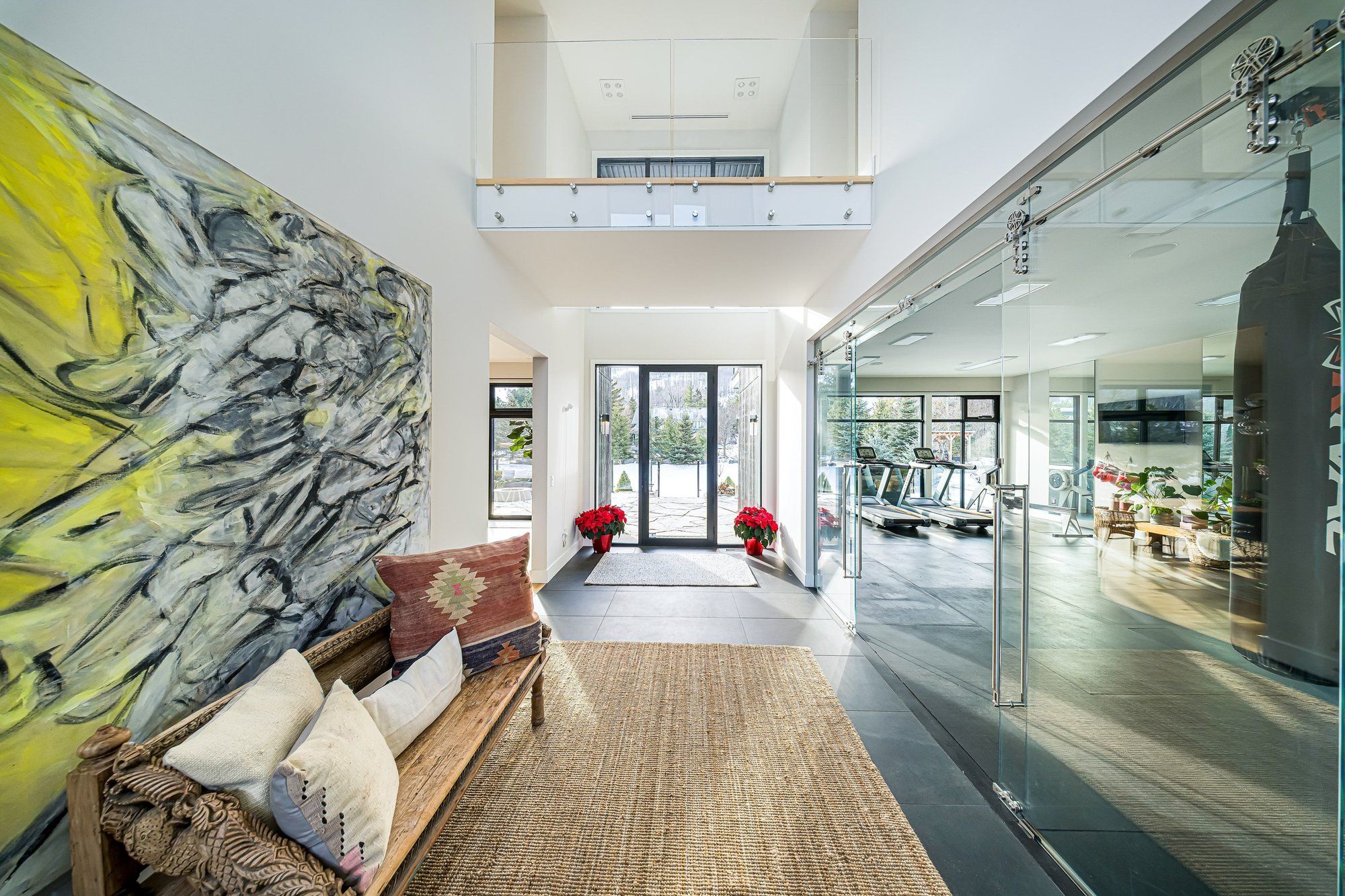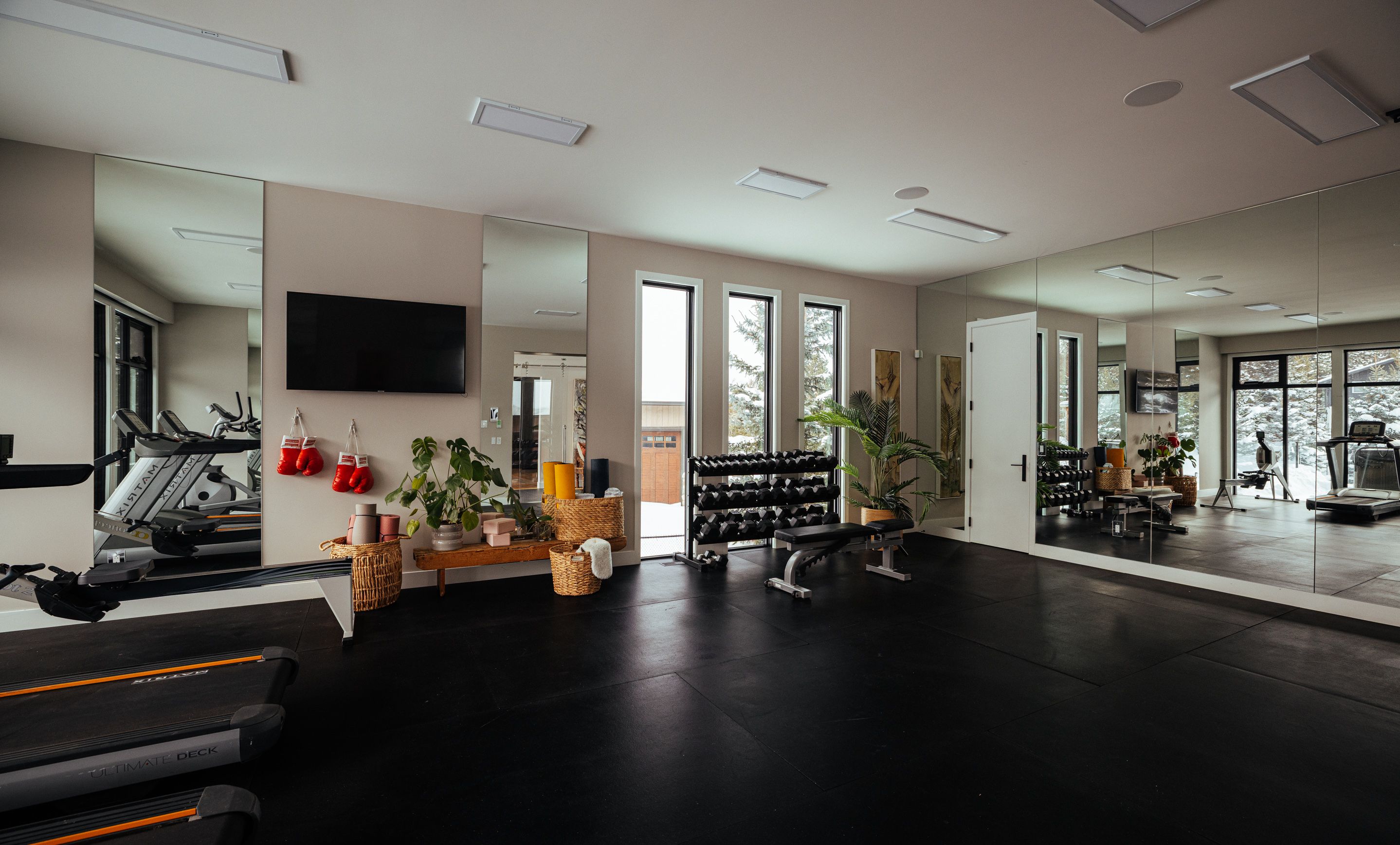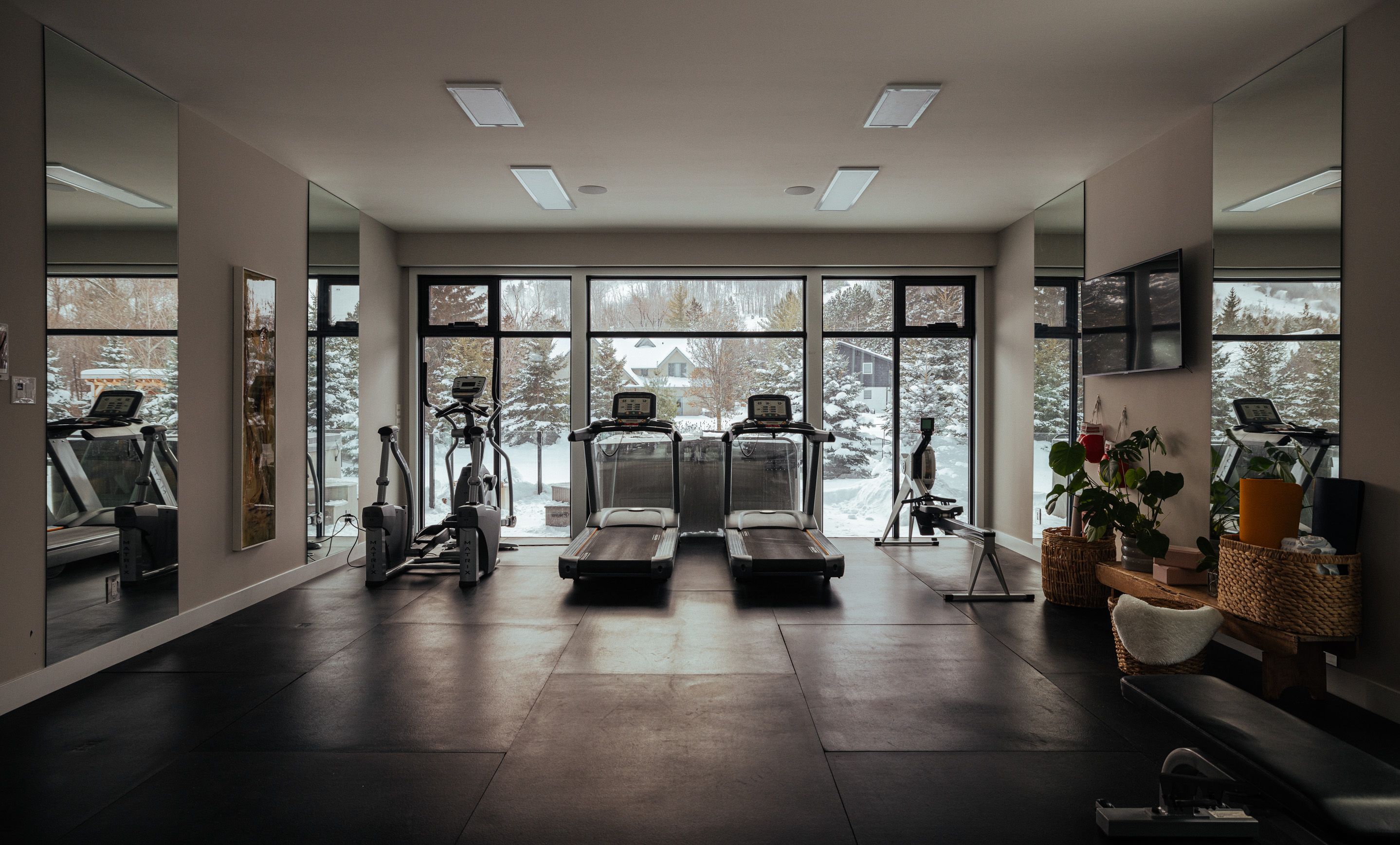 • Private office and gym with mountain views for work and wellness.