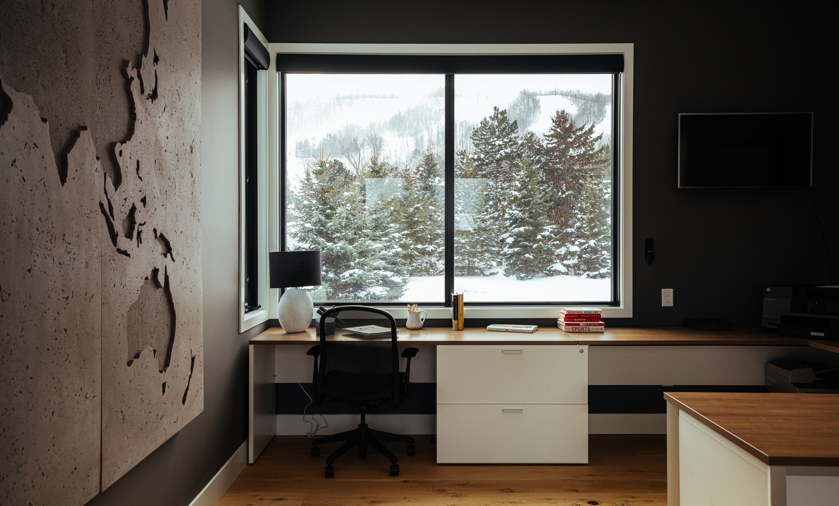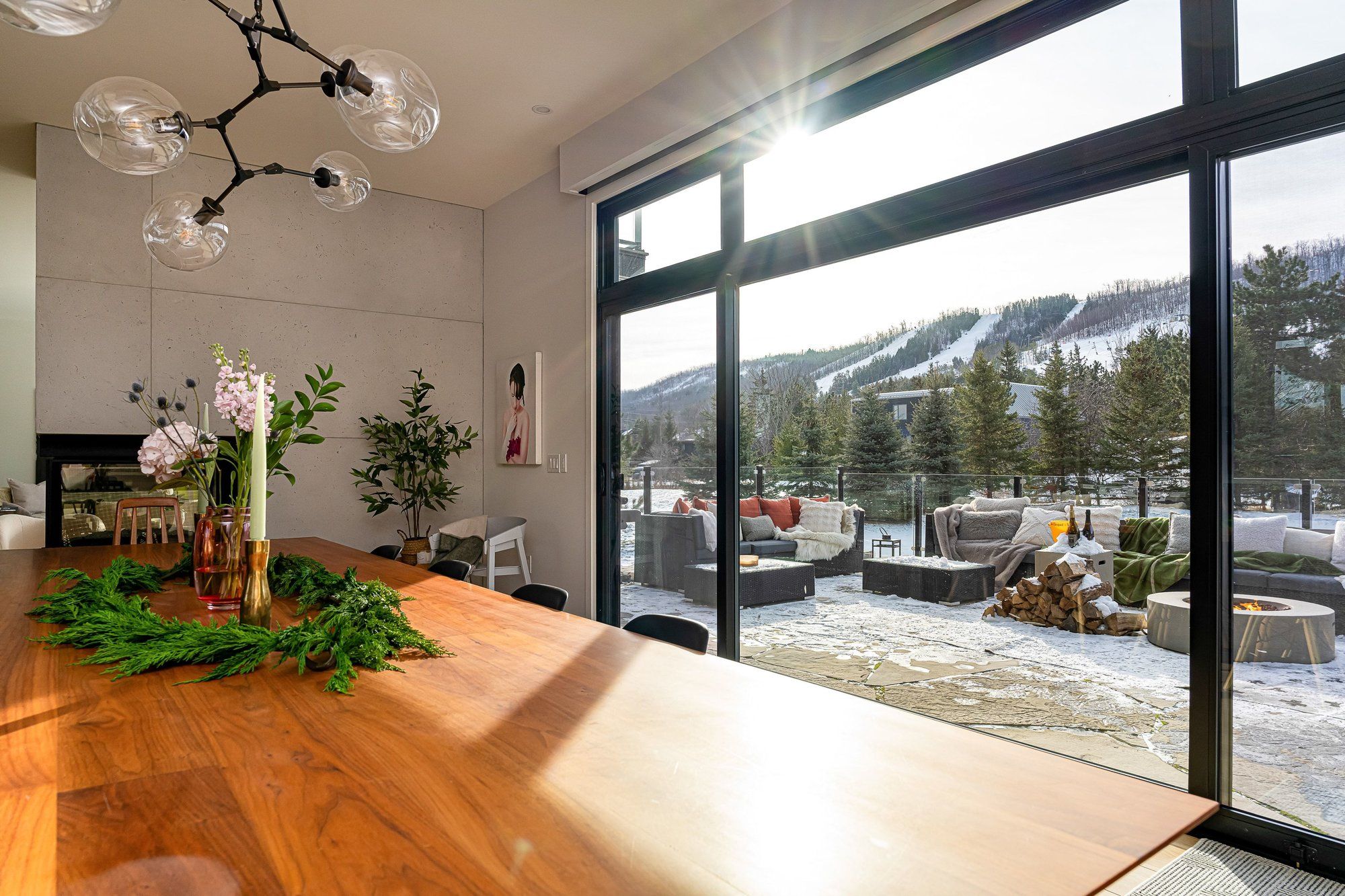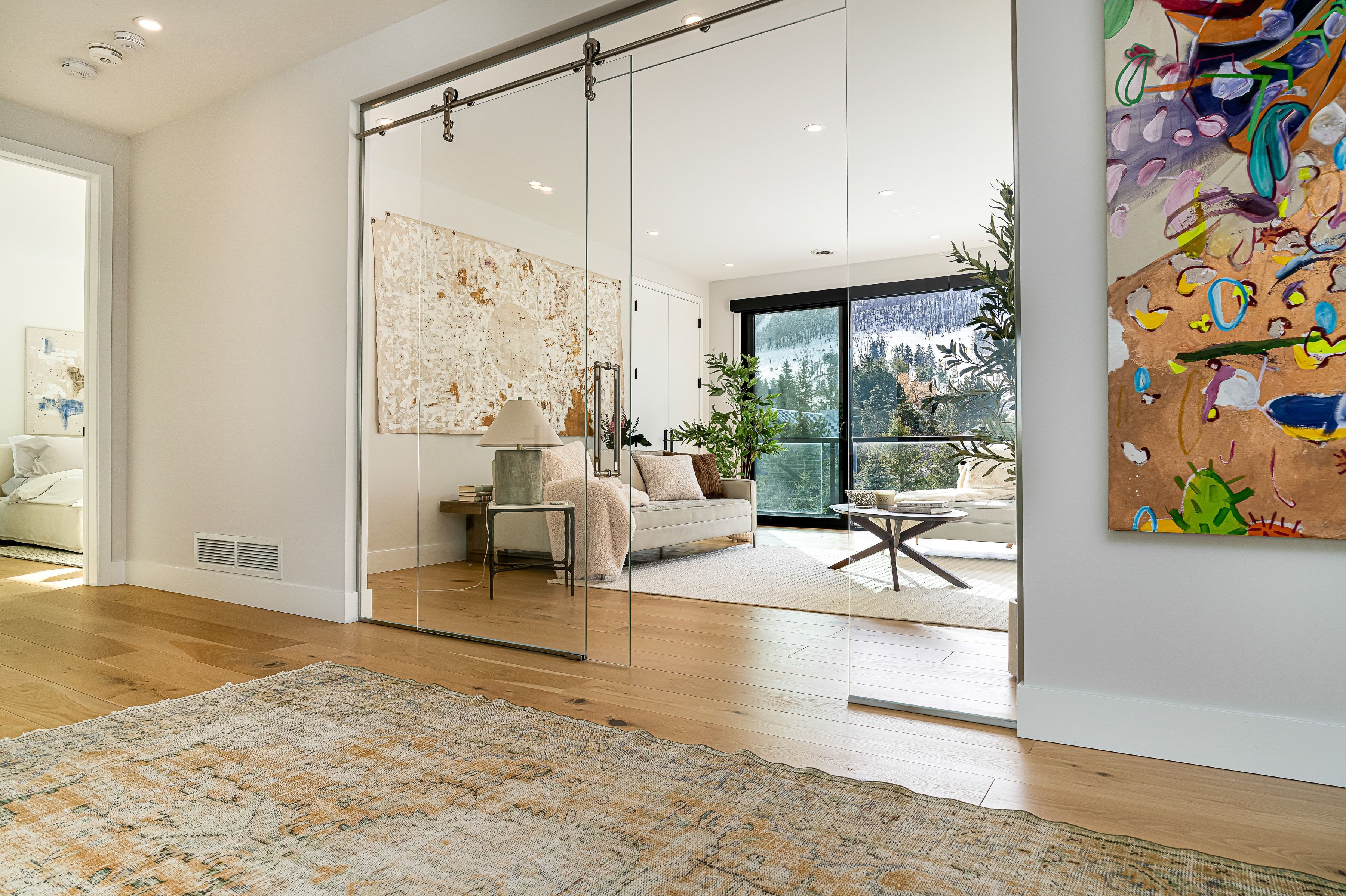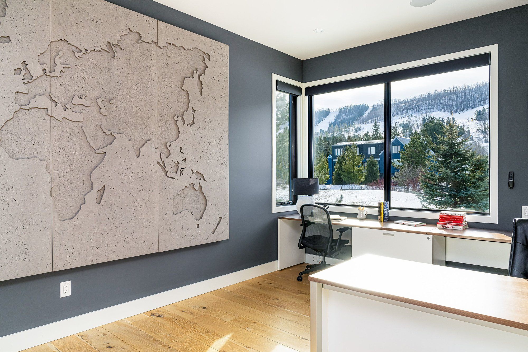• Private office and gym with mountain views for work and wellness.