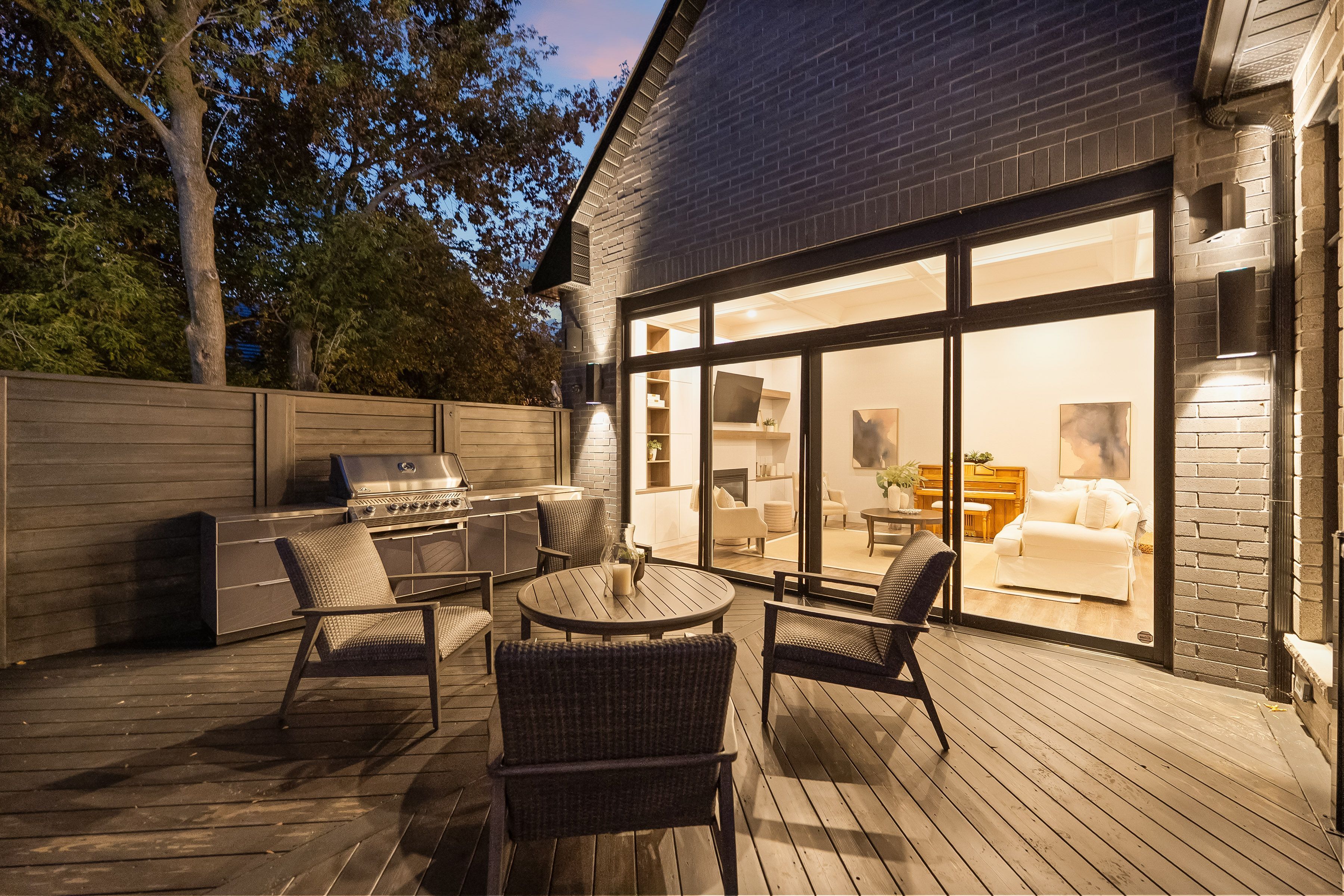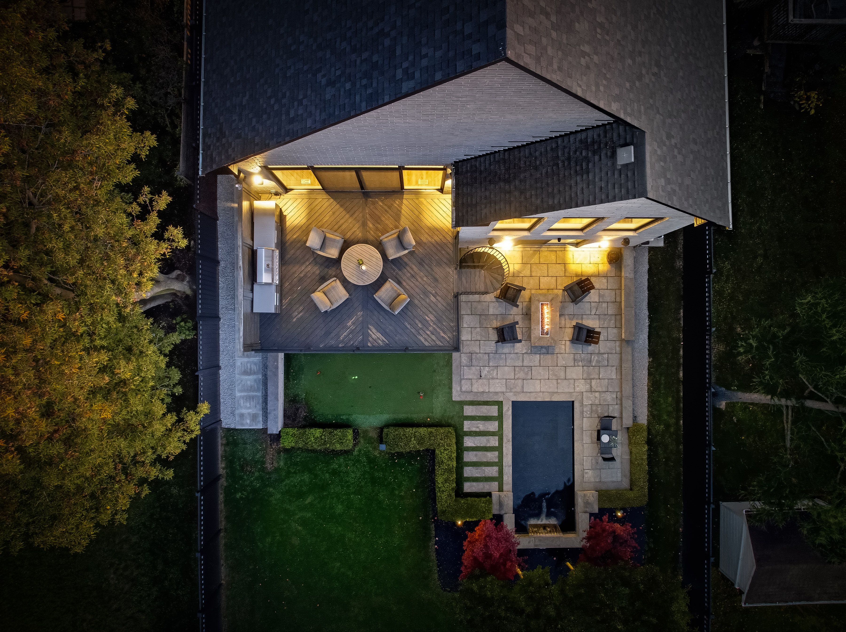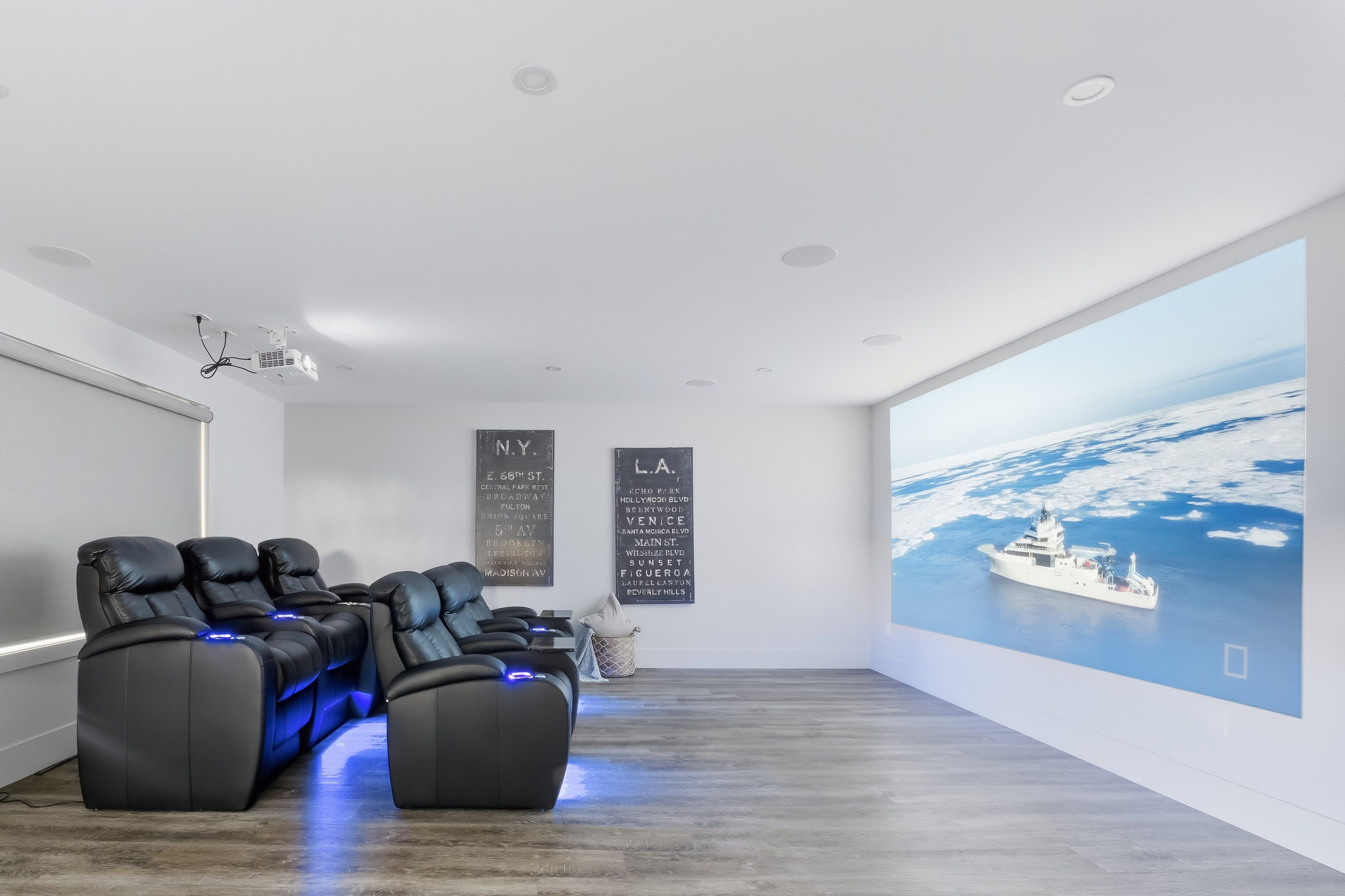 • Entertainment-friendly spaces include a theater room and outdoor patio with fireplace.