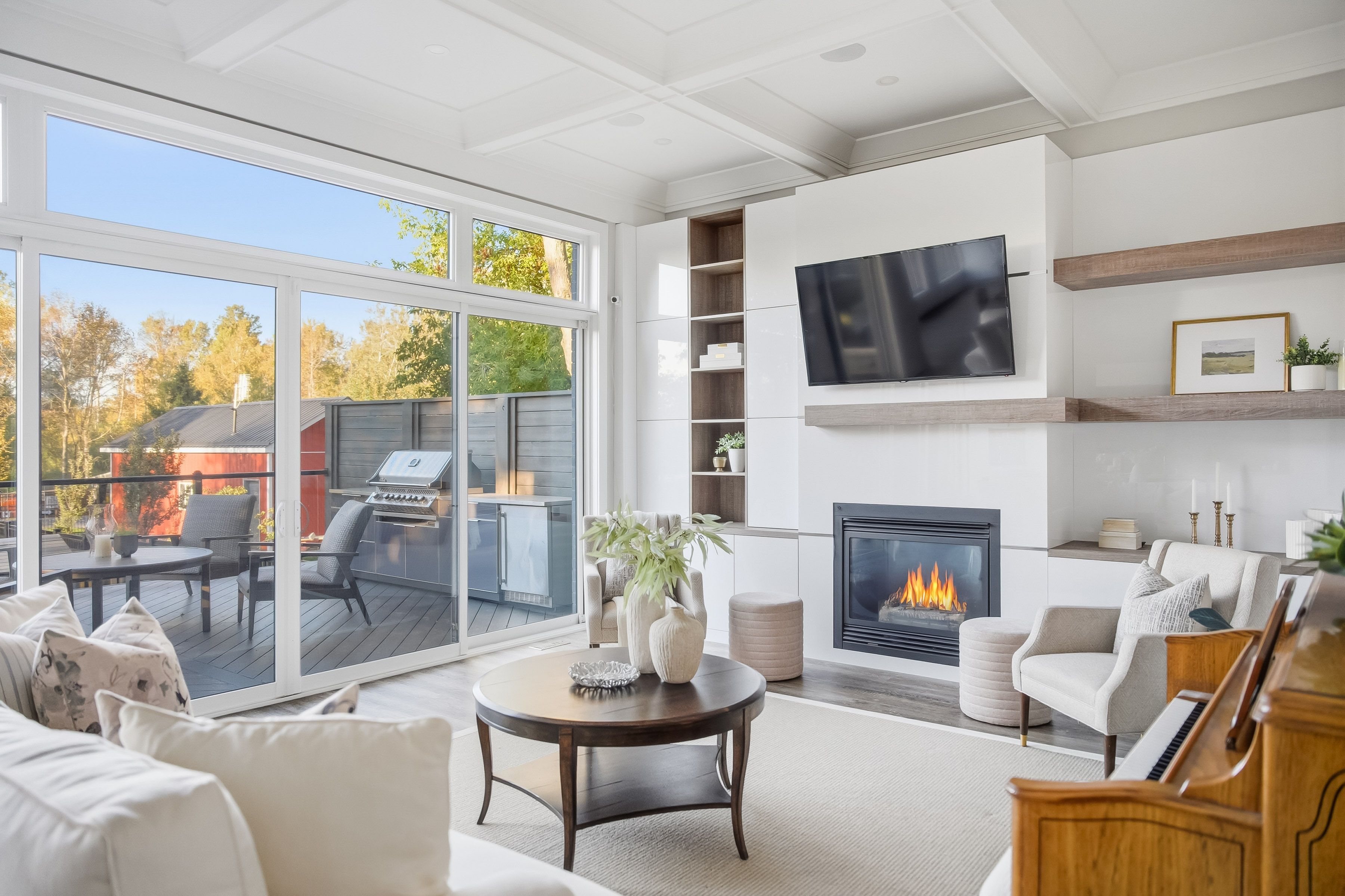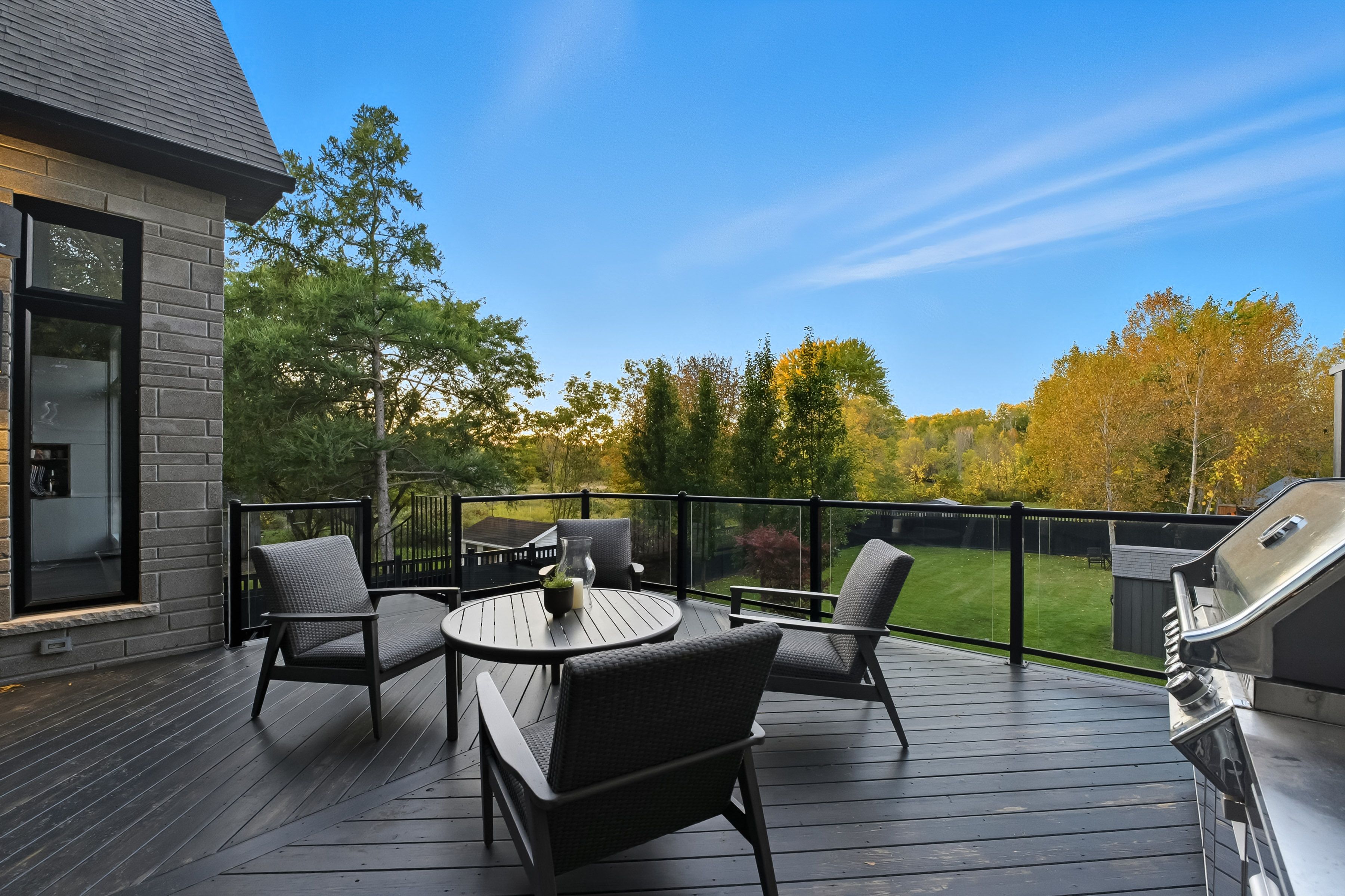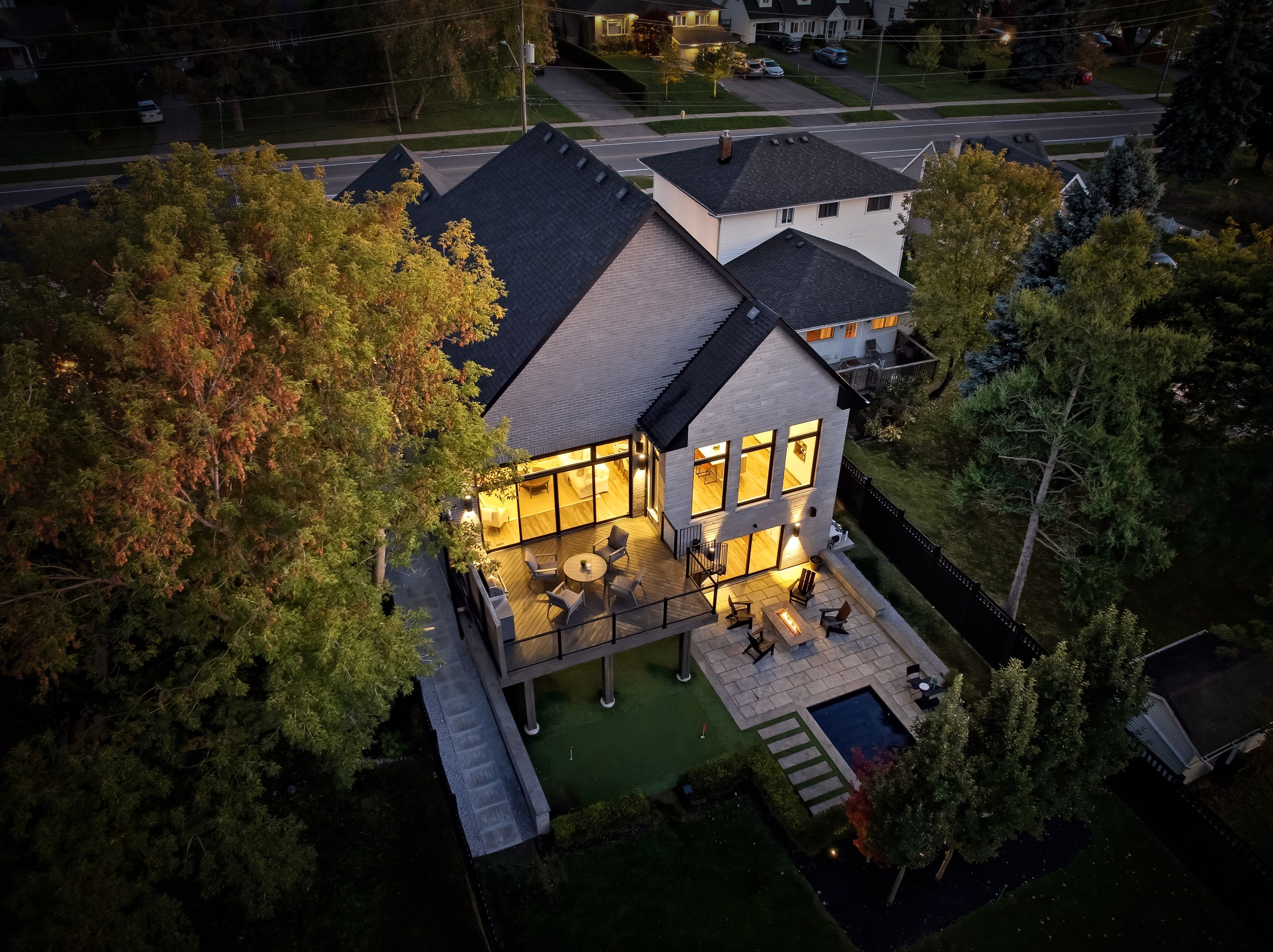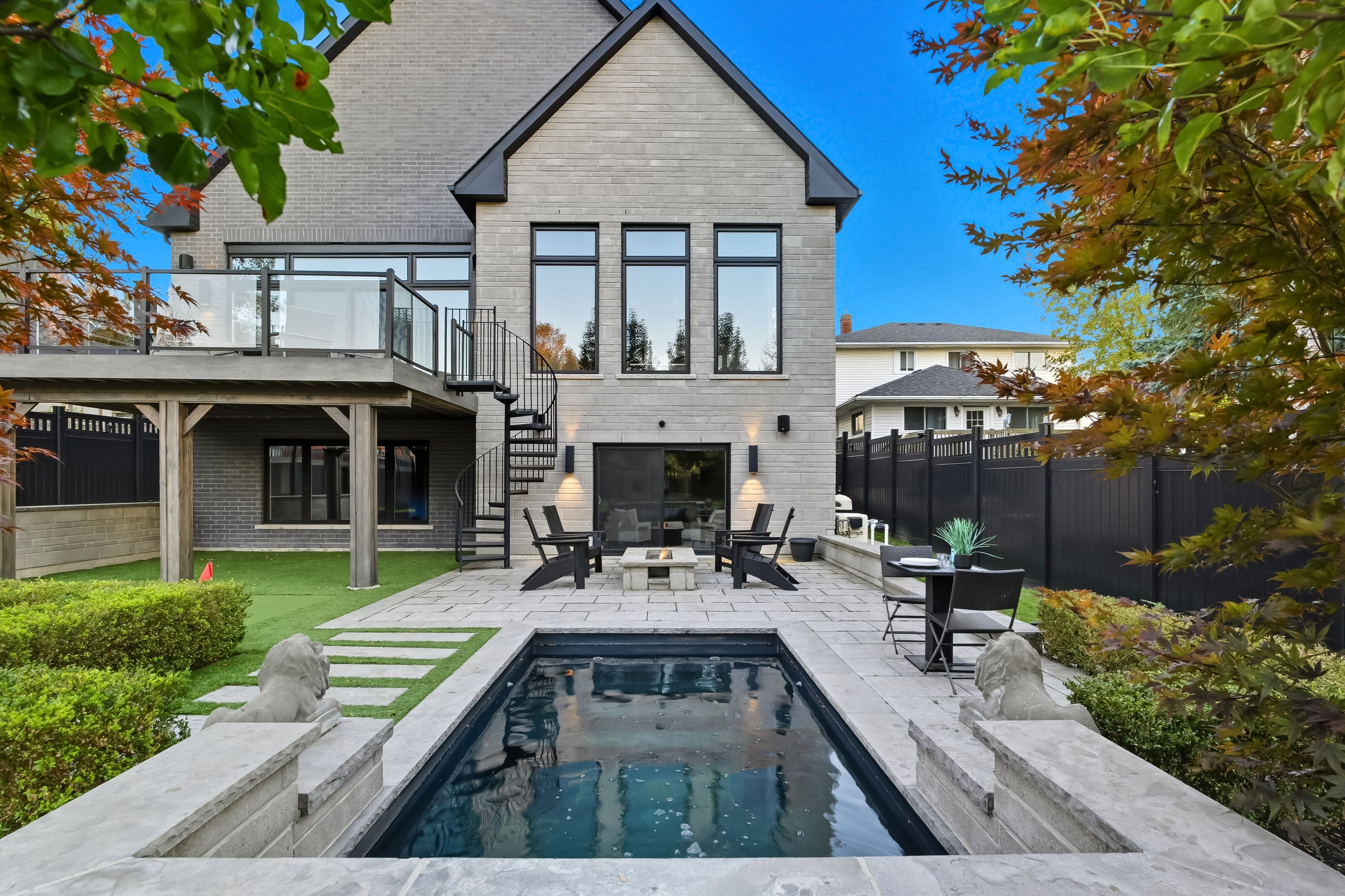 Welcome to an extraordinary custom-built estate offering over 4,000 square feet of luxurious living space on a meticulously landscaped 1. 35-acre lot. Originally built in 2018 and enhanced with hundreds of thousands in recent high-end renovations, this home is a flawless blend of sophistication, comfort, and modern design. From the moment you arrive, you'll be captivated by the grand covered porch, new fluted glass entryway, and stunning curb appeal. Inside, soaring vaulted and coffered ceilings, detailed crown moulding, and expansive floor-to-ceiling windows fill the home with light and elegance. The main floor showcases a modern luxury kitchen complete with a massive center island, wall oven, cooktop, pot filler, and coffee bar, all overlooking the serene, private backyard and greenspace beyond. The open-concept living area features a gas fireplace surrounded by custom built-ins and integrated speakers, perfect for entertaining or relaxing. Two main-floor primary sites each offer walk-in closets and spa like en-suites, with the main primary featuring built-in cabinetry, a lavish dressing room, and a magazine-worthy 5-piece ensuite with heated floors and a built-in speaker system. The windows, a four-piece bathroom with heated floors, a theatre room with surround sound and entertainment zones with beautifully landscaped patio featuring a built-in gas fireplace and heated spa pool with waterfall, a putting green, and a grass area enclosed by a high-quality vinyl fence (+/-$70k). Beyond the fenced area is an extra-wide green space with forest. Additional highlights include a luxury laundry/mudroom with quartz counters and custom cabinetry, indoor/outdoor speakers, 200-amp electrical, hrv humidifier, security system with cameras, and a tankless water heater. Conveniently located near all amenities and highways with easy access to toronto and the airport, this exceptional property offers the perfect balance of luxury, privacy, and convenience.