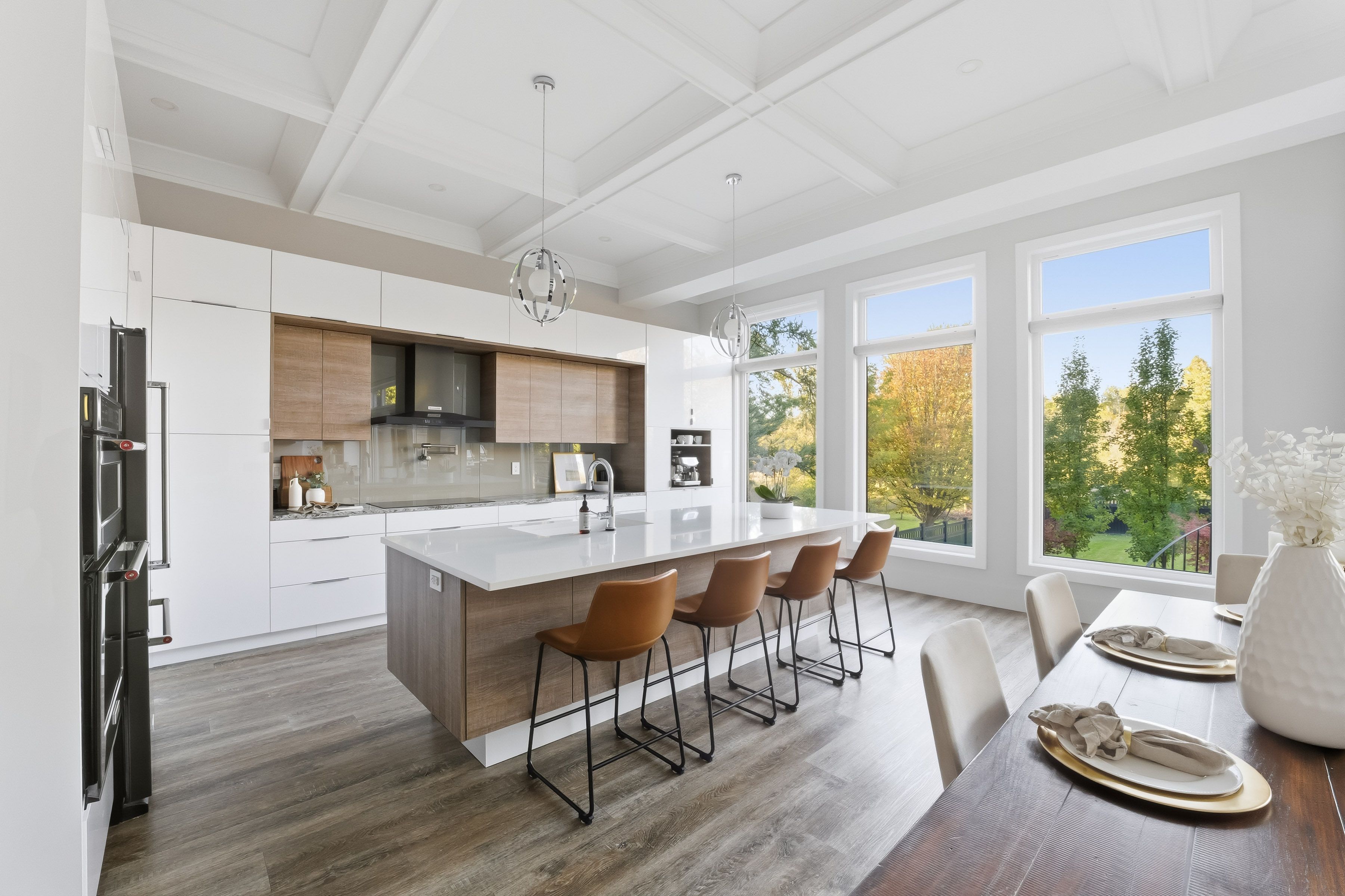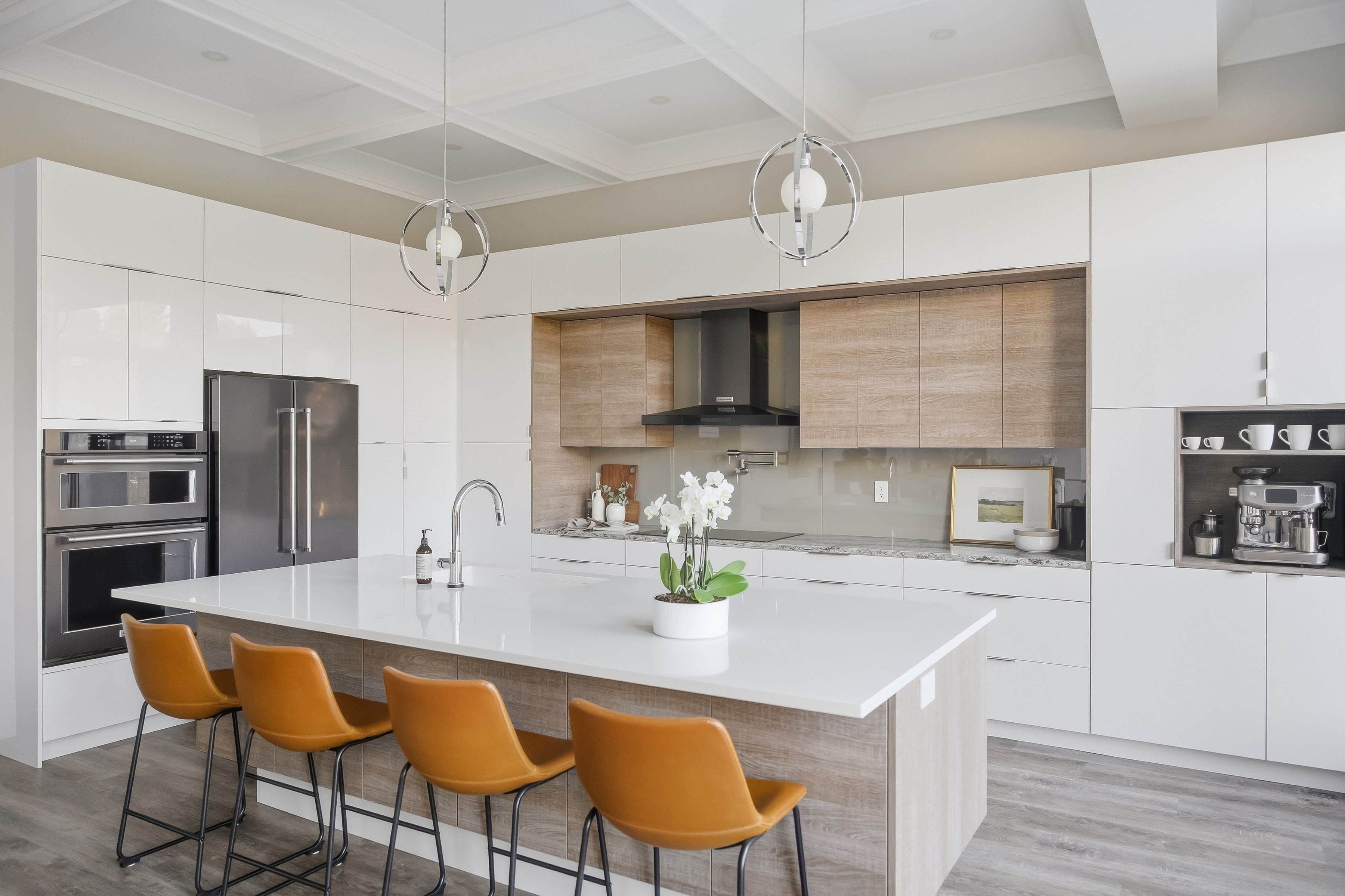• Luxurious, modern kitchen with a massive center island and coffee bar.