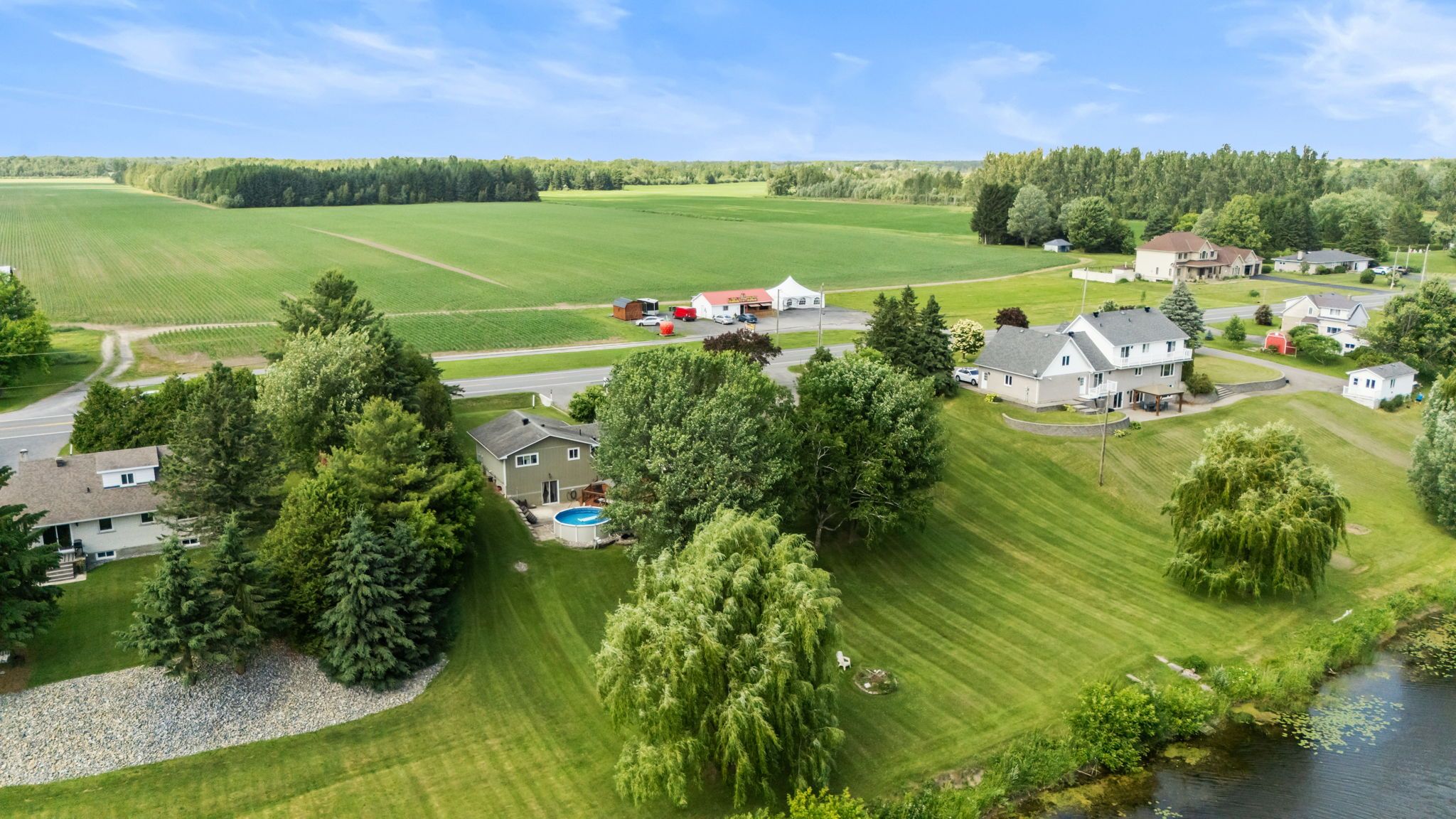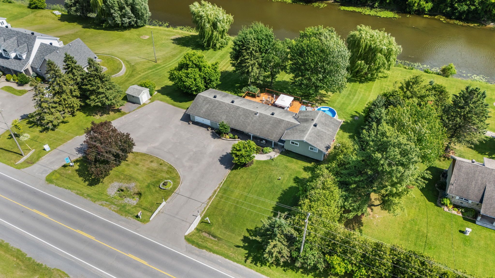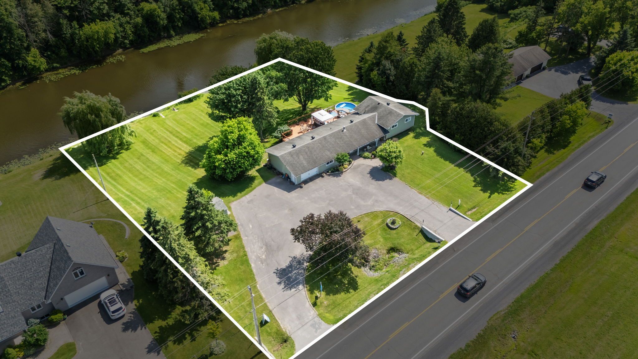 Stunning waterfront bungalow with endless potential in embrun! This spacious bungalow sits on an expansive waterfront lot, offering nearly 200 feet of shoreline and breathtaking views. Featuring a walkout basement, u-shaped driveway with dual entrances, and an above-ground pool, this property is perfect for those seeking both comfort and convenience. Inside, the home boasts 5 bedrooms and 2 full bathrooms, with a beautifully designed kitchen featuring granite countertops and custom cabinetry that seamlessly flows into the bright living and dining areas. From the dining room, step out onto your large rear deck overlooking the water, perfect for entertaining or unwinding. The main home offers 3 bedrooms, including a primary suite w/ cheater access to a luxurious 5-piece bathroom, plus a finished basement with a 2nd natural gas fireplaces for added warmth and ambiance. The in-law suite is currently used as a commercial space, making it an ideal opportunity for a home business (calling hair dressers, estheticians, and more) on one of embrun's busiest streets with prime visibility. Alternatively, the 2-bedroom suite with a spacious walk-in closet is perfect for multigenerational living. A rare waterfront gem with endless possibilities, don't miss out on this unique opportunity!