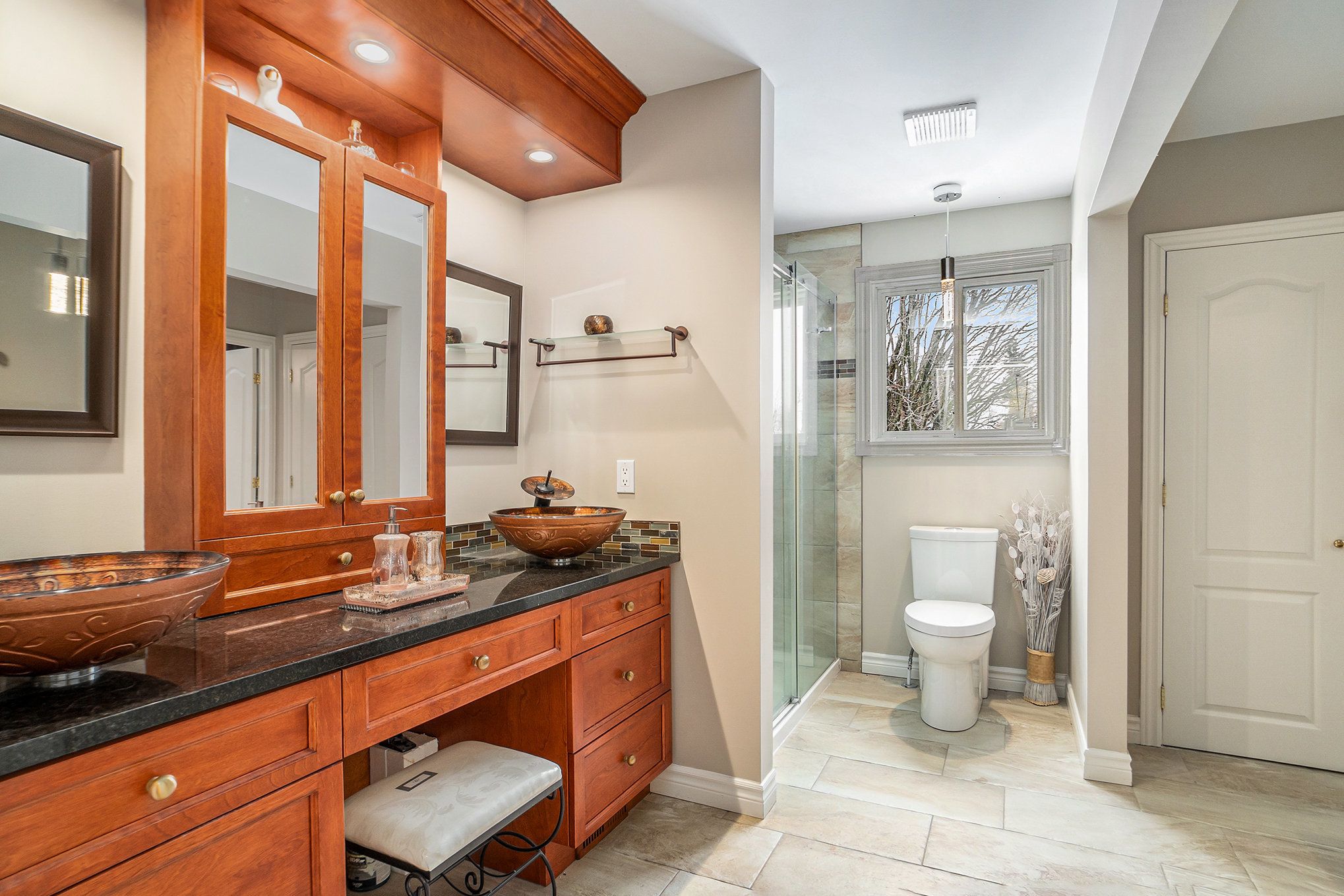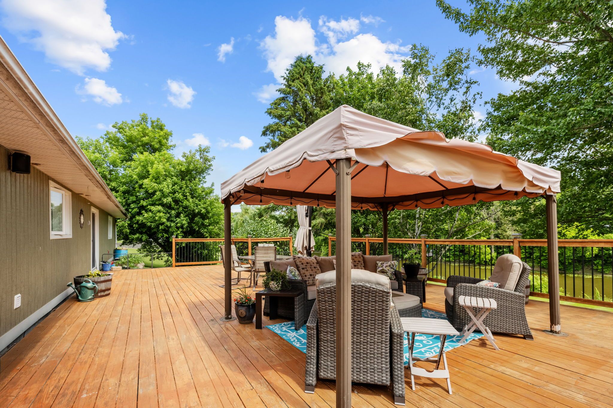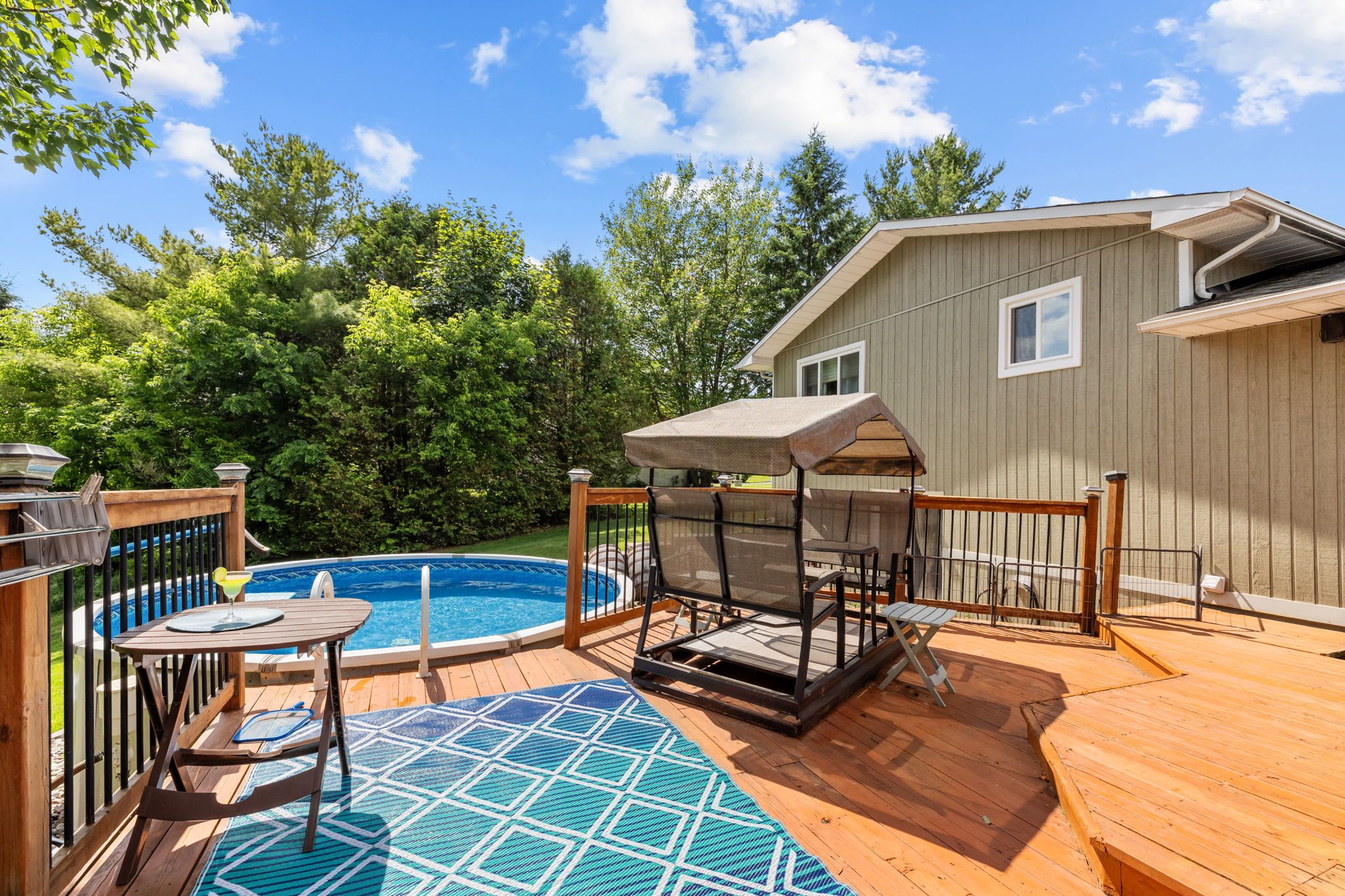 Stunning waterfront bungalow with endless potential in embrun! This spacious bungalow sits on an expansive waterfront lot, offering nearly 200 feet of shoreline and breathtaking views. Featuring a walkout basement, u-shaped driveway with dual entrances, and an above-ground pool, this property is perfect for those seeking both comfort and convenience. Inside, the home boasts 5 bedrooms and 2 full bathrooms, with a beautifully designed kitchen featuring granite countertops and custom cabinetry that seamlessly flows into the bright living and dining areas. From the dining room, step out onto your large rear deck overlooking the water, perfect for entertaining or unwinding. The main home offers 3 bedrooms, including a primary suite w/ cheater access to a luxurious 5-piece bathroom, plus a finished basement with a 2nd natural gas fireplaces for added warmth and ambiance. The in-law suite is currently used as a commercial space, making it an ideal opportunity for a home business (calling hair dressers, estheticians, and more) on one of embrun's busiest streets with prime visibility. Alternatively, the 2-bedroom suite with a spacious walk-in closet is perfect for multigenerational living. A rare waterfront gem with endless possibilities, don't miss out on this unique opportunity!