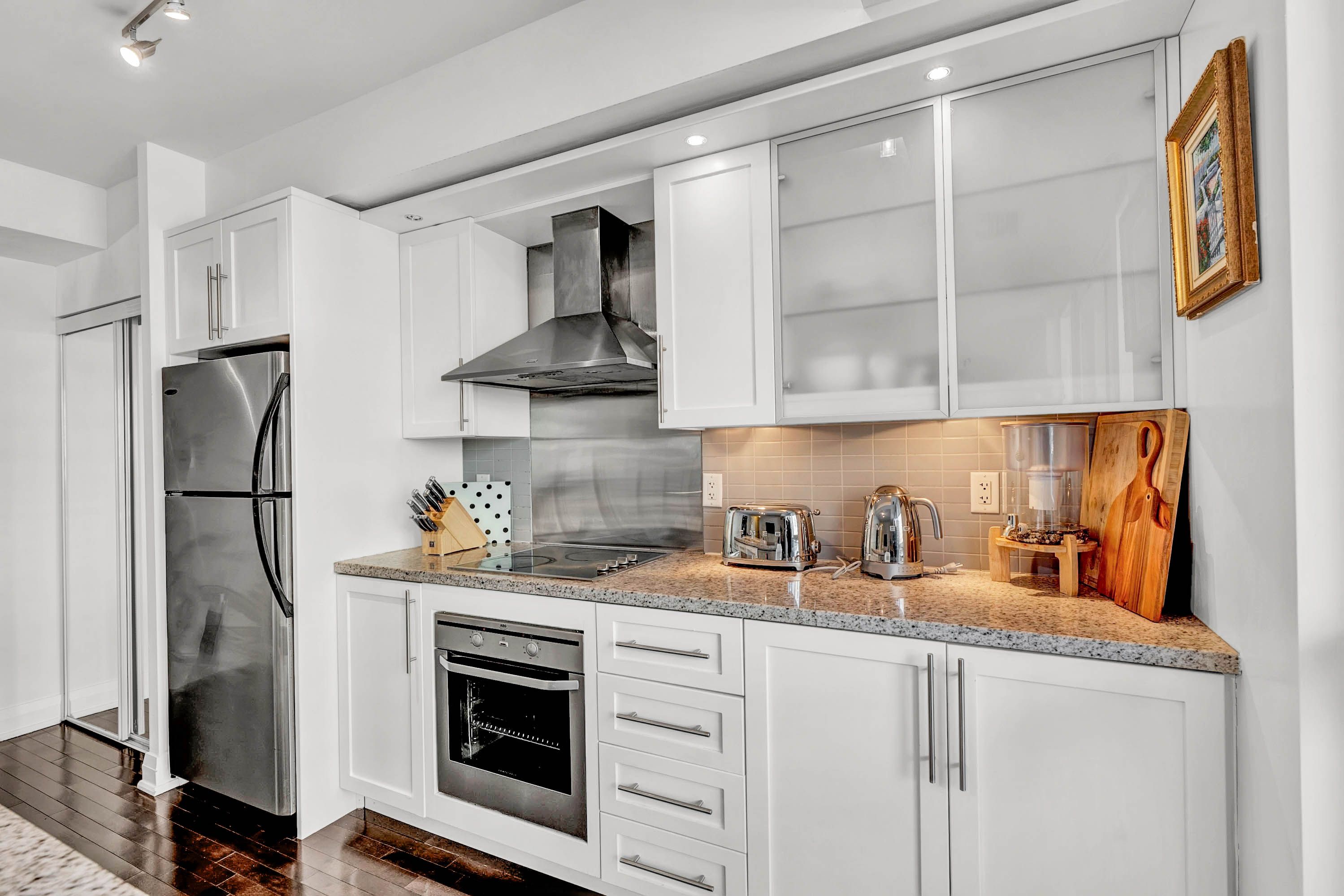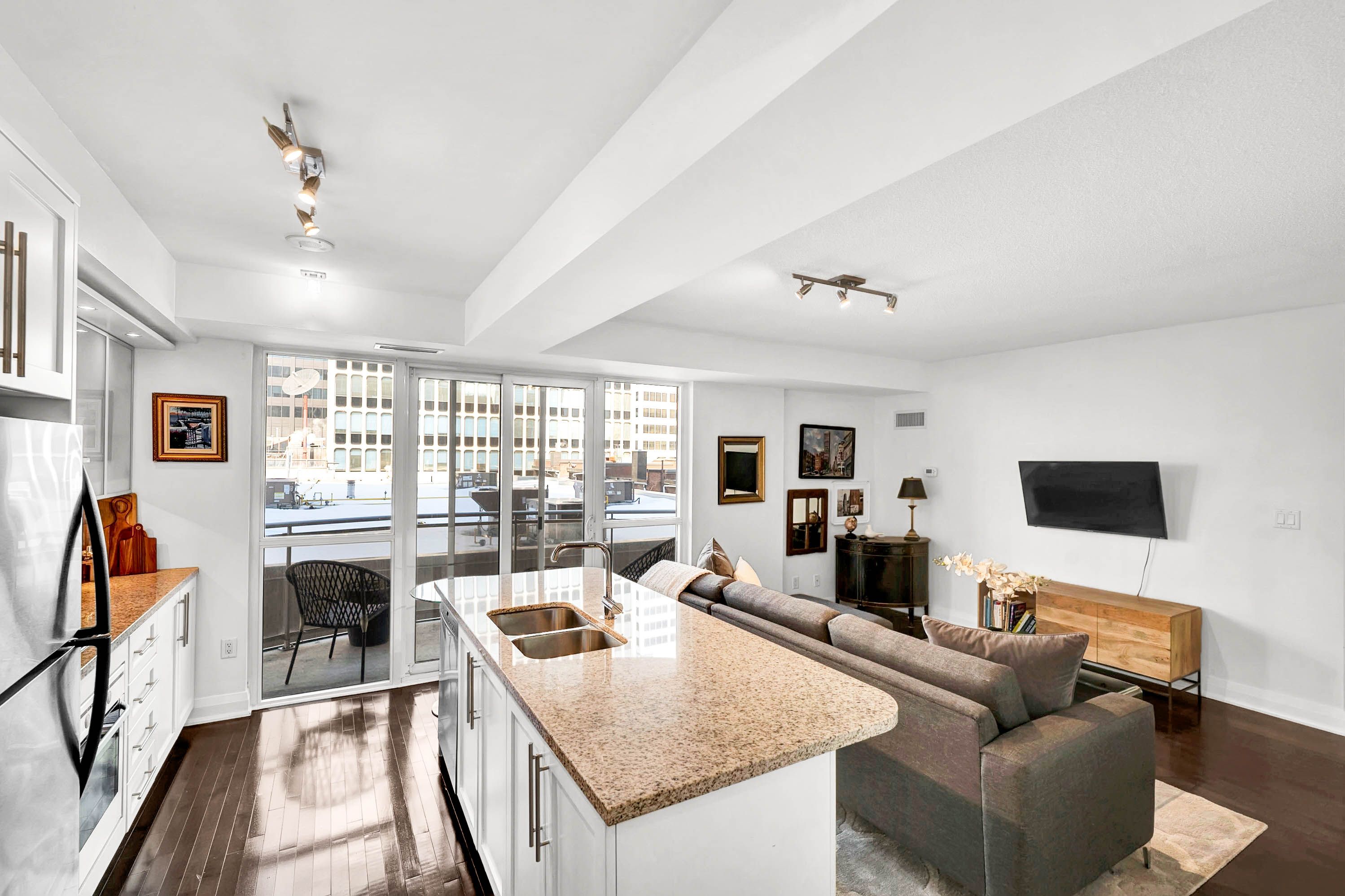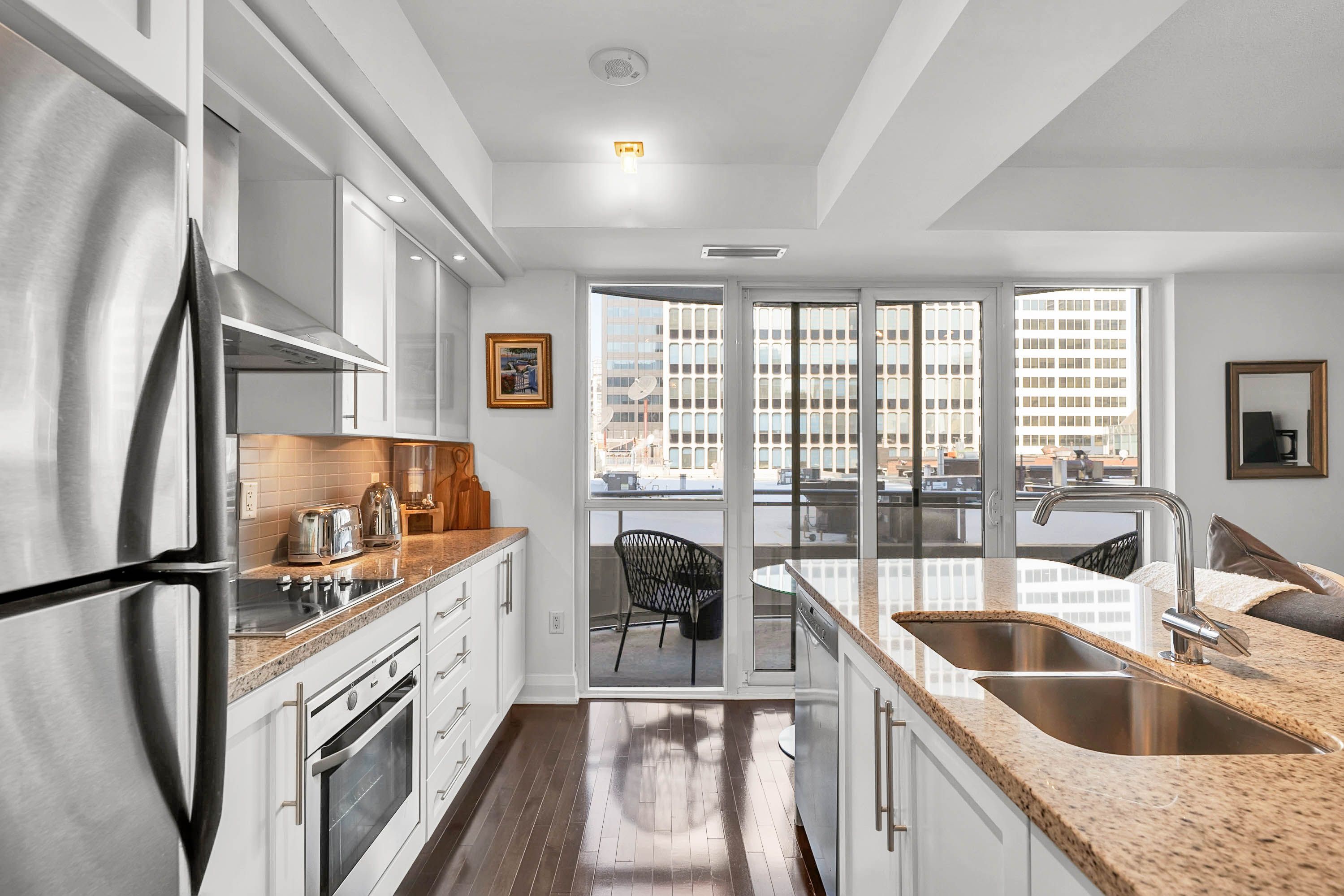 Experience five-star boutique living at 1430 yonge st. This beautifully designed open-concept home offers spacious living with exceptional flexibility and privacy. Thoughtfully upgraded and tastefully decorated throughout. It features a modern granite island kitchen with s/s appliances, spacious centre island with double sink & seating for four. Two private terraces, one off of both bedrooms and one off of kitchen. -perfect for relaxing or entertaining. The serene primary bedroom includes a spa-like ensuite, a generous walk- in closet, and a four piece guest bath. You will have access to premium amenities such as 24 hr concierge, parking, gym, a stylish party /meeting room and rooftop deck/garden & terrace equipped with gas barbeque, guest parking available. Fitness steam room. This building is a rare blend of comfort, style, and convenience in one of midtowns most desirable boutique residences.