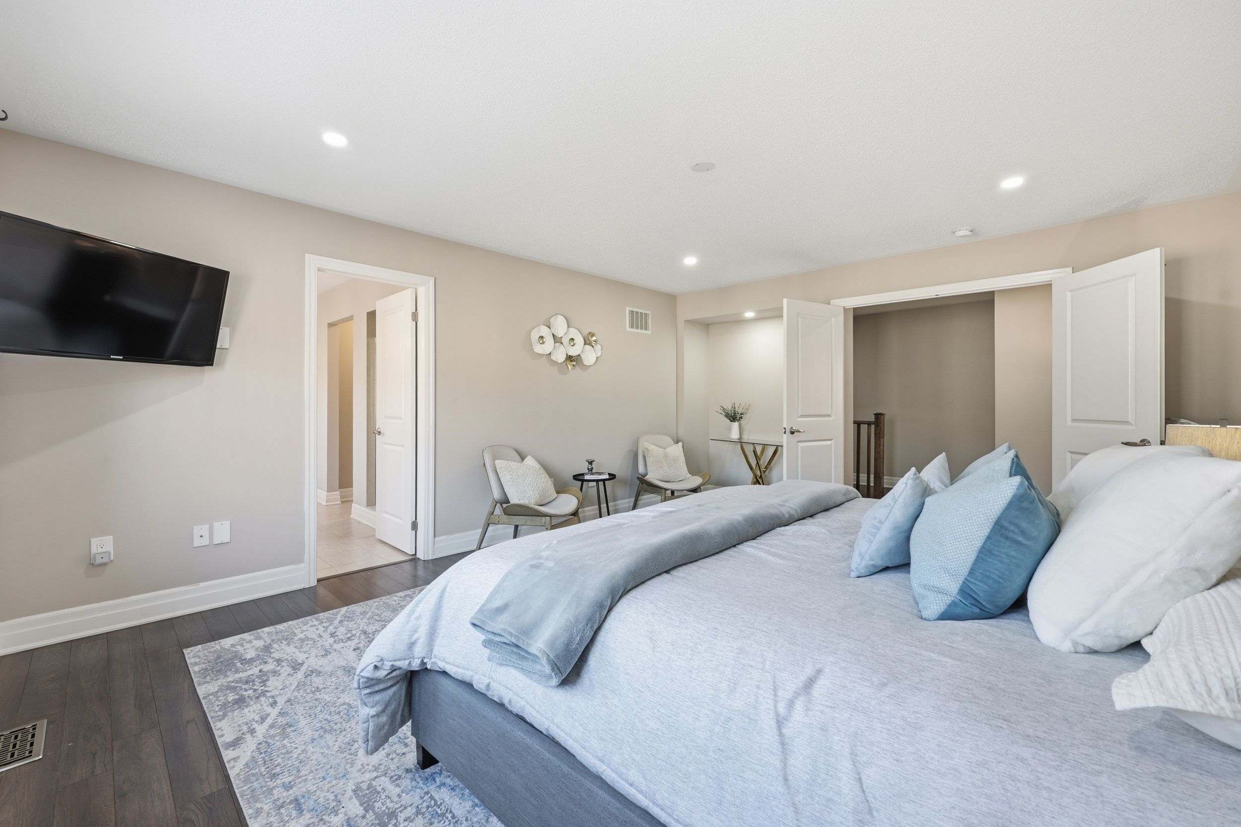 Welcome home to mattamy's desired baldwin model in milton's prestigious ford commnity. This impeccably maintained 2700 sqft home is a masterclass in design, boasting premium finishes and thoughtful structural u[grades throughout. Situated in one of ford's most family-friendly pockets, this home showcases premium finishes, smart structural upgrades, and a layout tailored for modern living. From the moment you enter, the quality is unmistakable. The foyer features ceramic tile that seamlessly transitions into 3-1/4" maple hardwood, setting an elegant tone throughout the main level. The main floor features a large den with upgraded french doors, perfect for a guest room or a home office, large dinning area with coffered ceiling and a generous size family room with a gas fireplace and a tv-ready feature wall . The heart of this home is the "grande kitchen," a chef's dream featuring floor-to-ceiling stacked cabinetry with crown molding and elegant glass inserts. Premium quartz countertops and a custom glass tile backsplash. A large island with a faux cabinet upgrade and high-end hardware. Top-tier built-in stainless steel appliances and professional-grade faucets. The second floor features four large bedrooms with three full bathrooms, making it ideal for growing or multi-generational families.. The primary bedroom features a 5piece ensuite and a oversize walk-in closed. Three additional large bedroom with two additional full washroom bathrooms upgraded with cultured marble vanities ideal for large family living. Bonus built-in office nook ideal from work from home.