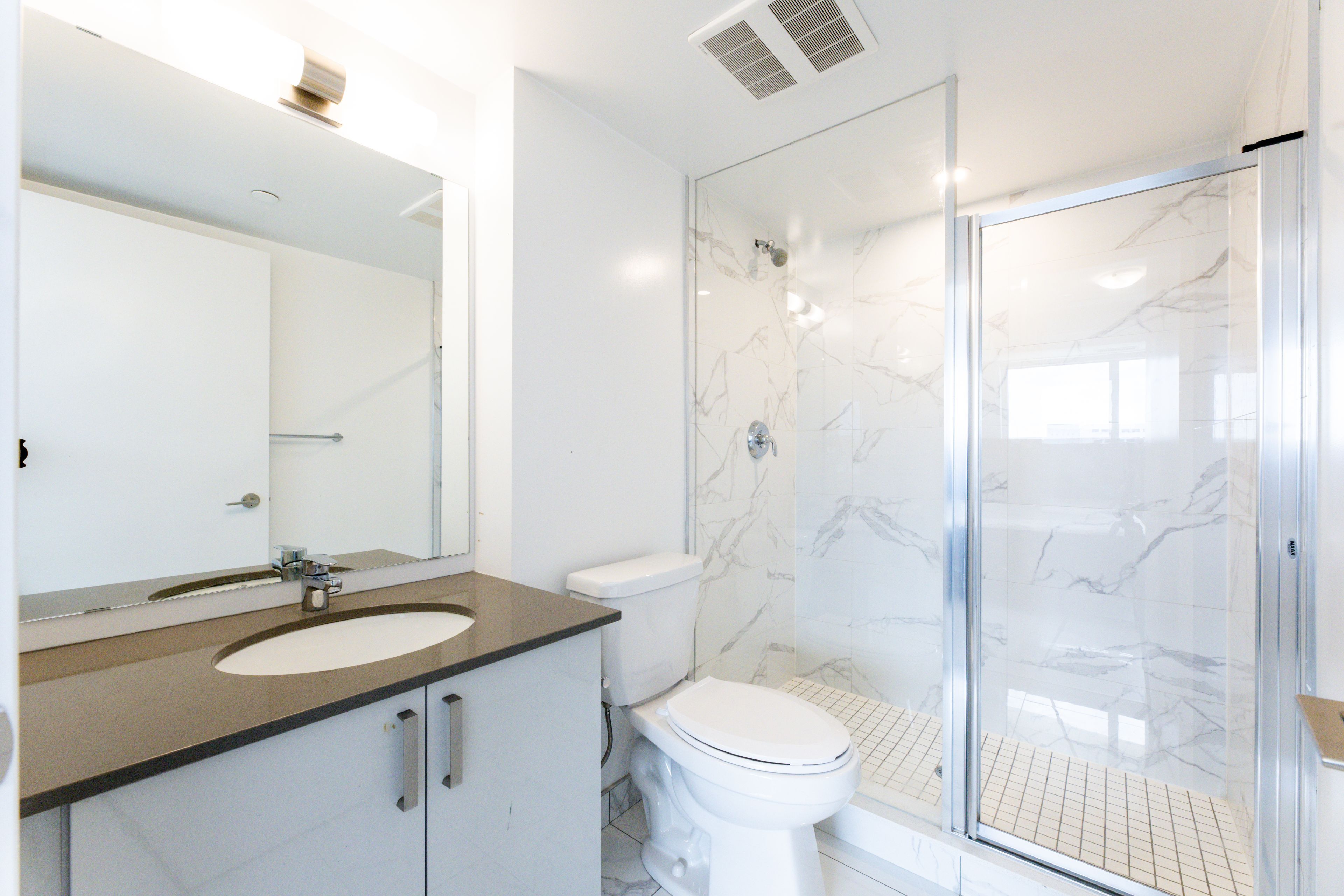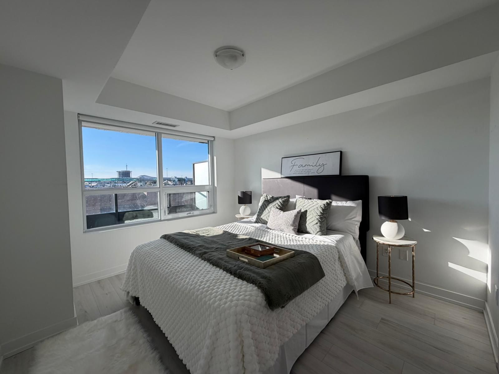 Welcome to this oversized two-bedroom + den condo, perfect for those seeking a sunny south-west exposure on a lower floor. This unit comes with parking and a locker. The unit has two walk-in closets. Split bedroom plan and fully enclosed den. Be the first to enjoy this spacious and well-laid-out condo, located in the incredible universal city master-planned community. Can be rented unfurnished as well.