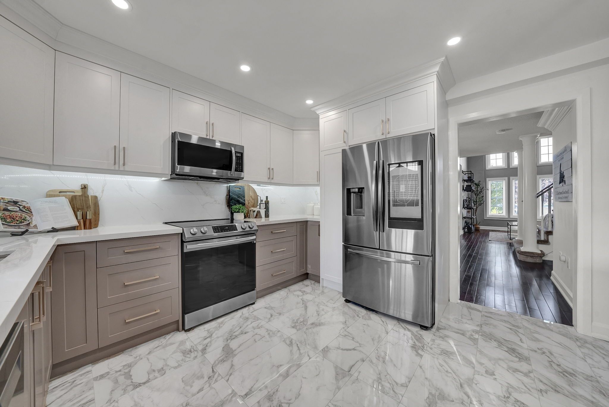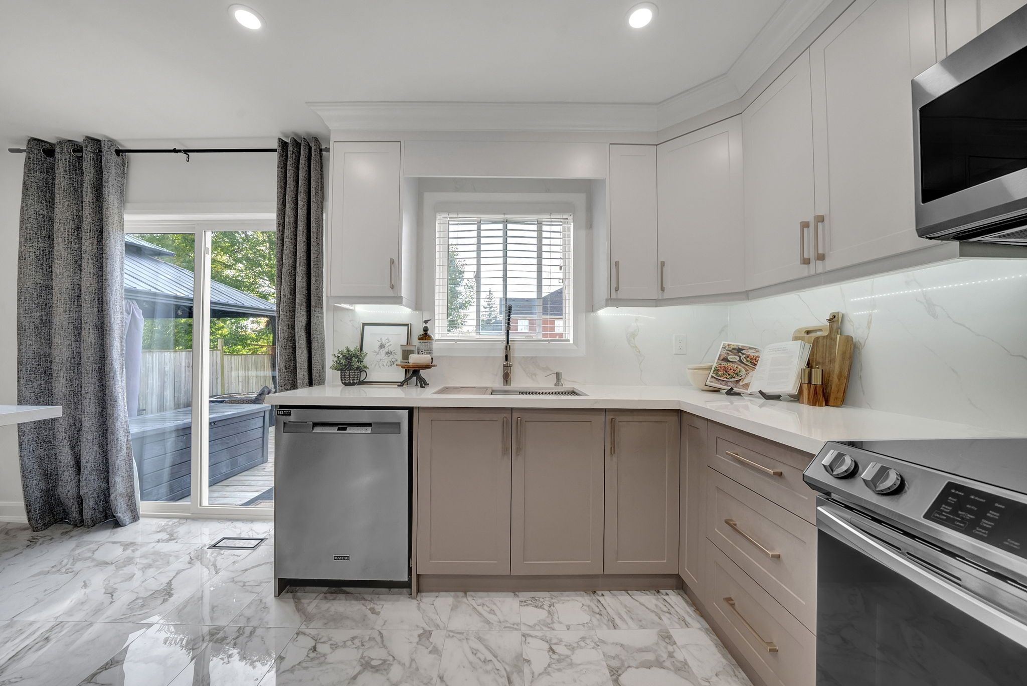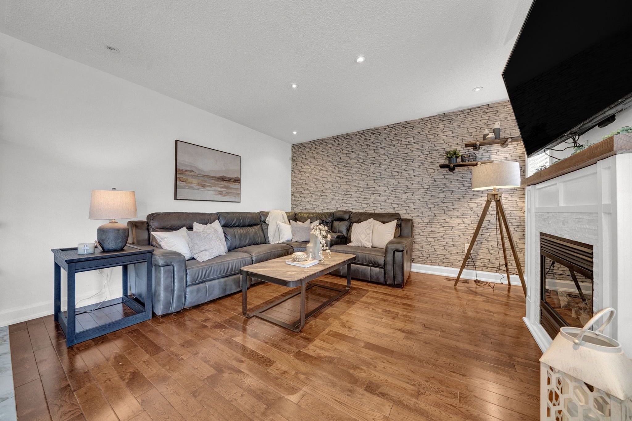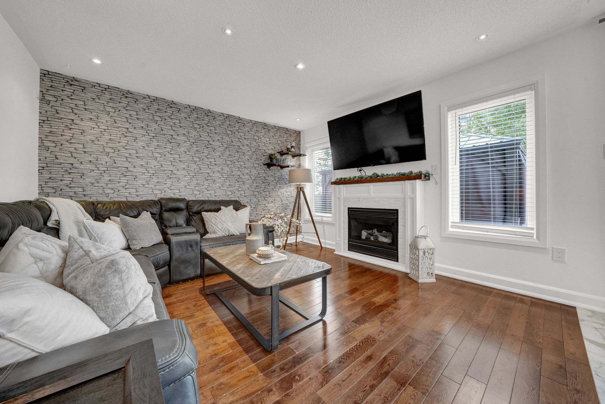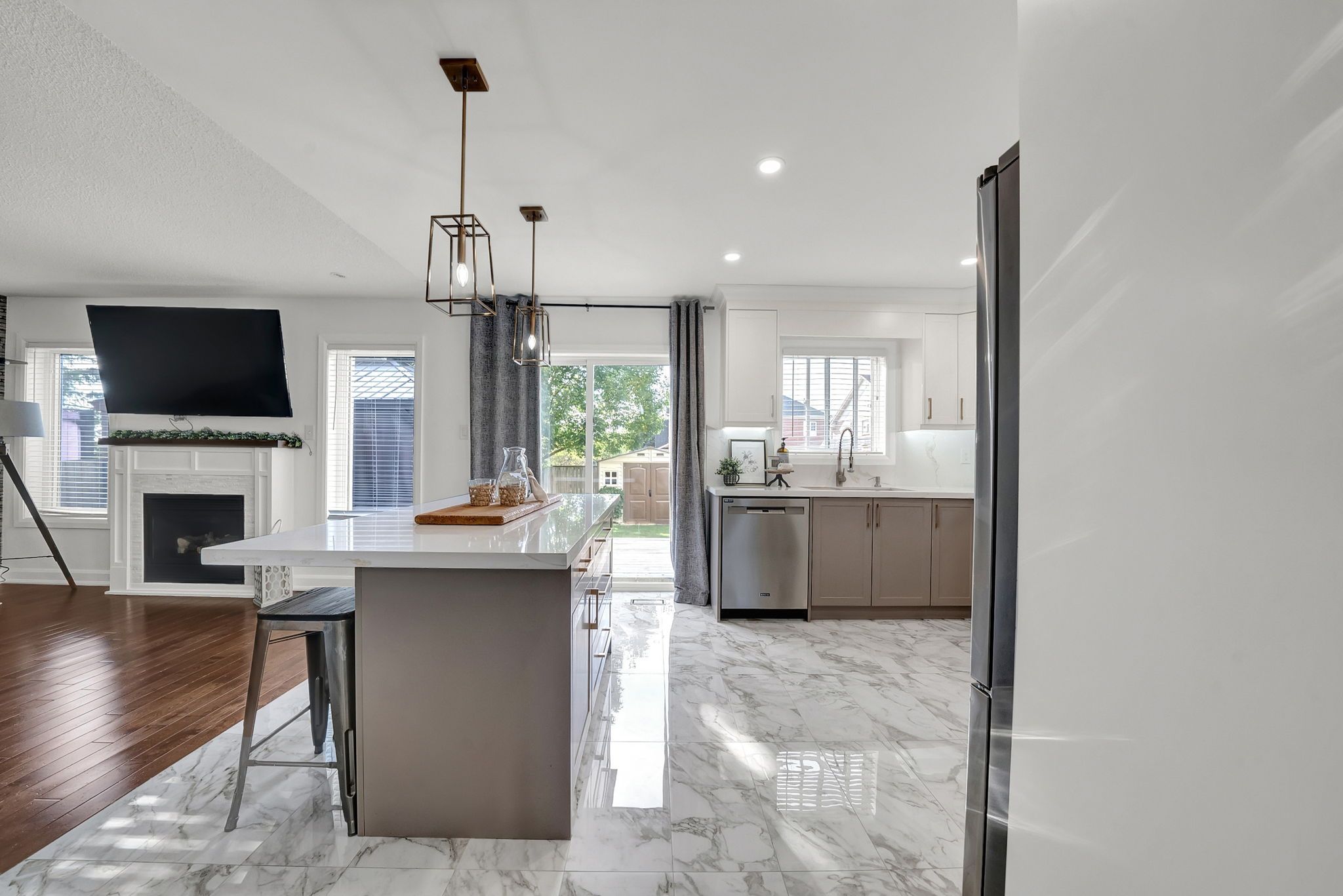 Welcome to this exceptional fully detached residence, offering nearly 2,000 sq. Ft. Of elegant living space above grade plus a professionally finished basement. With 4+1 spacious bedrooms and 3 beautifully appointed bathrooms, this home blends timeless sophistication with modern comfort. Step into the gourmet chef's kitchen, showcasing sleek quartz countertops, custom cabinetry, premium stainless steel appliances, and a sun-filled eat-in breakfast area. The layout flows effortlessly into the open-to-above family room, where soaring ceilings, expansive windows, anda cozy gas fireplace create the perfect setting for gatherings. Every detail has been carefully curated - from the hardwood floors to the pot lights and freshly painted interiors. Bathrooms have been fully updated with spa-inspired finishes, ensuring a true retreat at home. The lower level adds even more space with a finished basement, with an additional bedroom, home office, gym, or media lounge. Perfectly situated in a prestigious, family-friendly community, this home is surrounded by top-ranked schools, lush parks, shopping, dining, and easy access to major amenities and 407. A rare opportunity to own a move-in ready home that truly checks every box. Don't miss it!