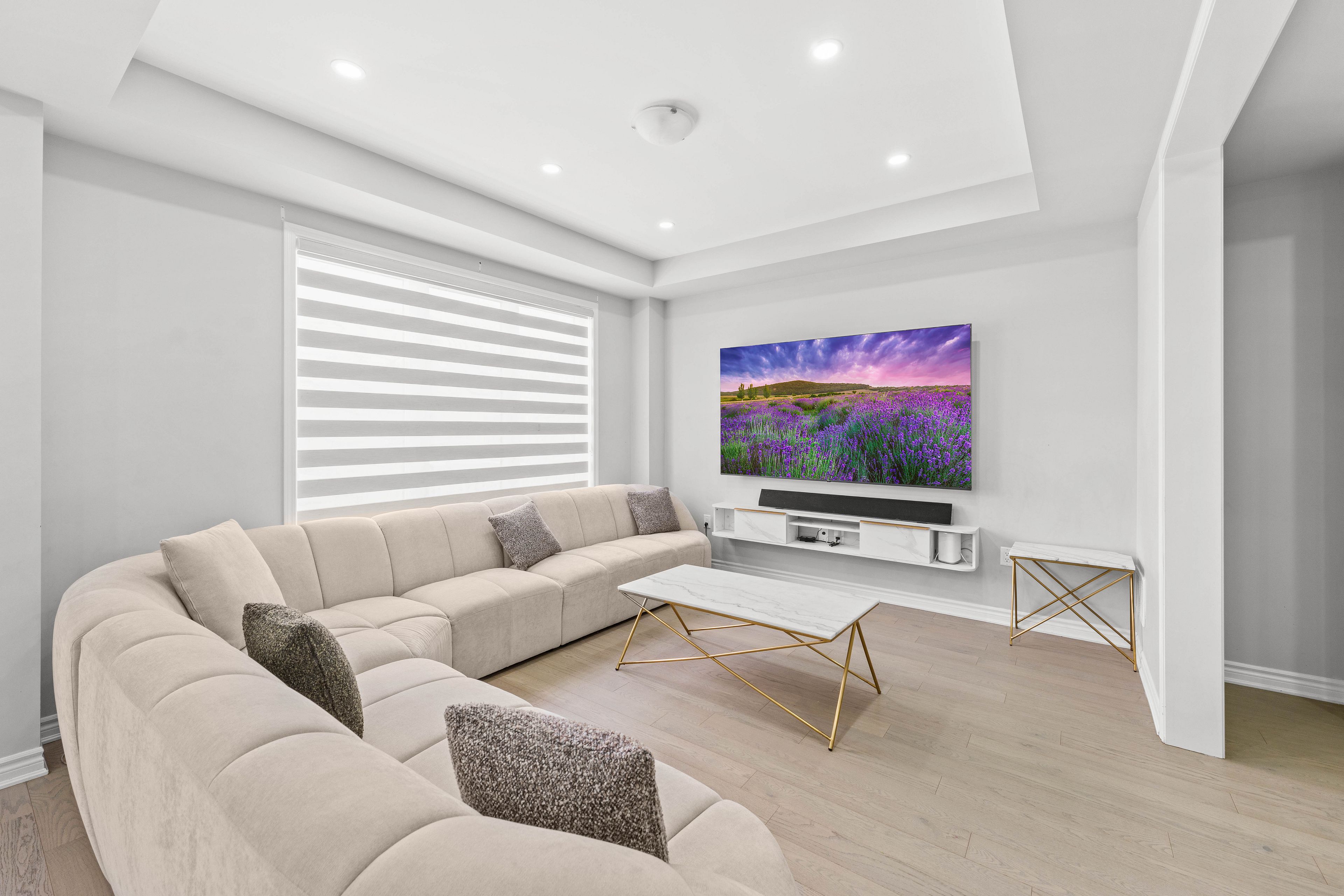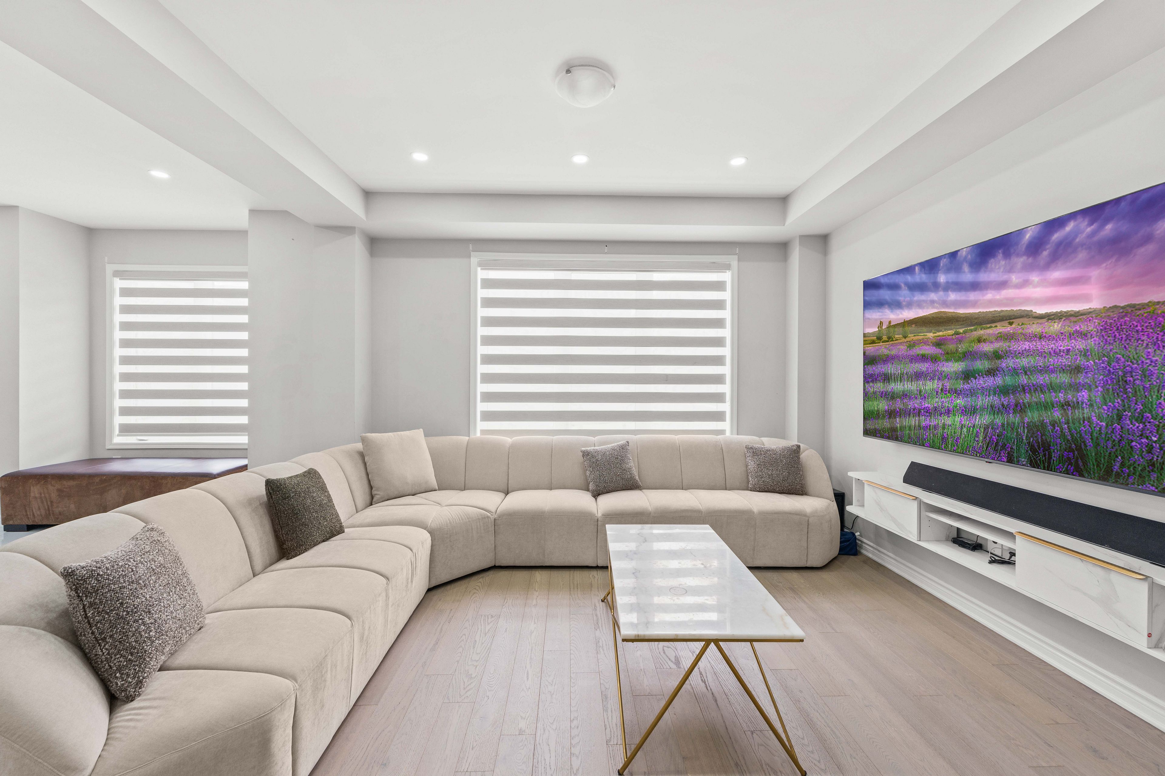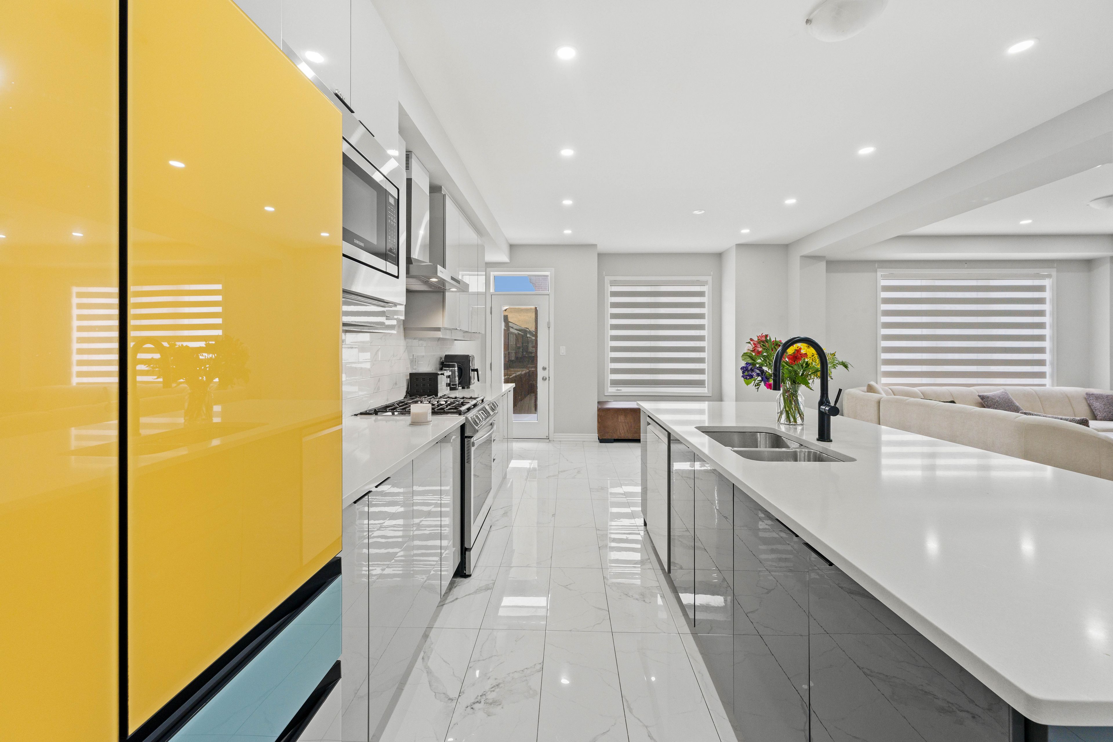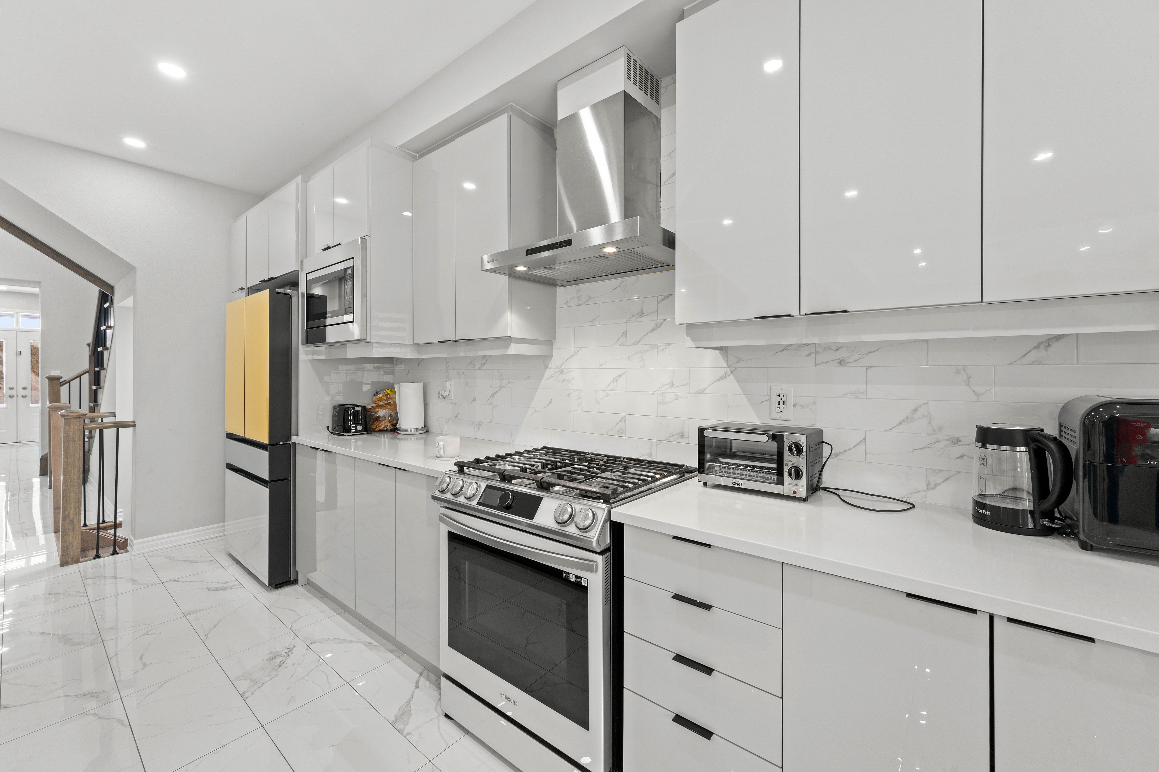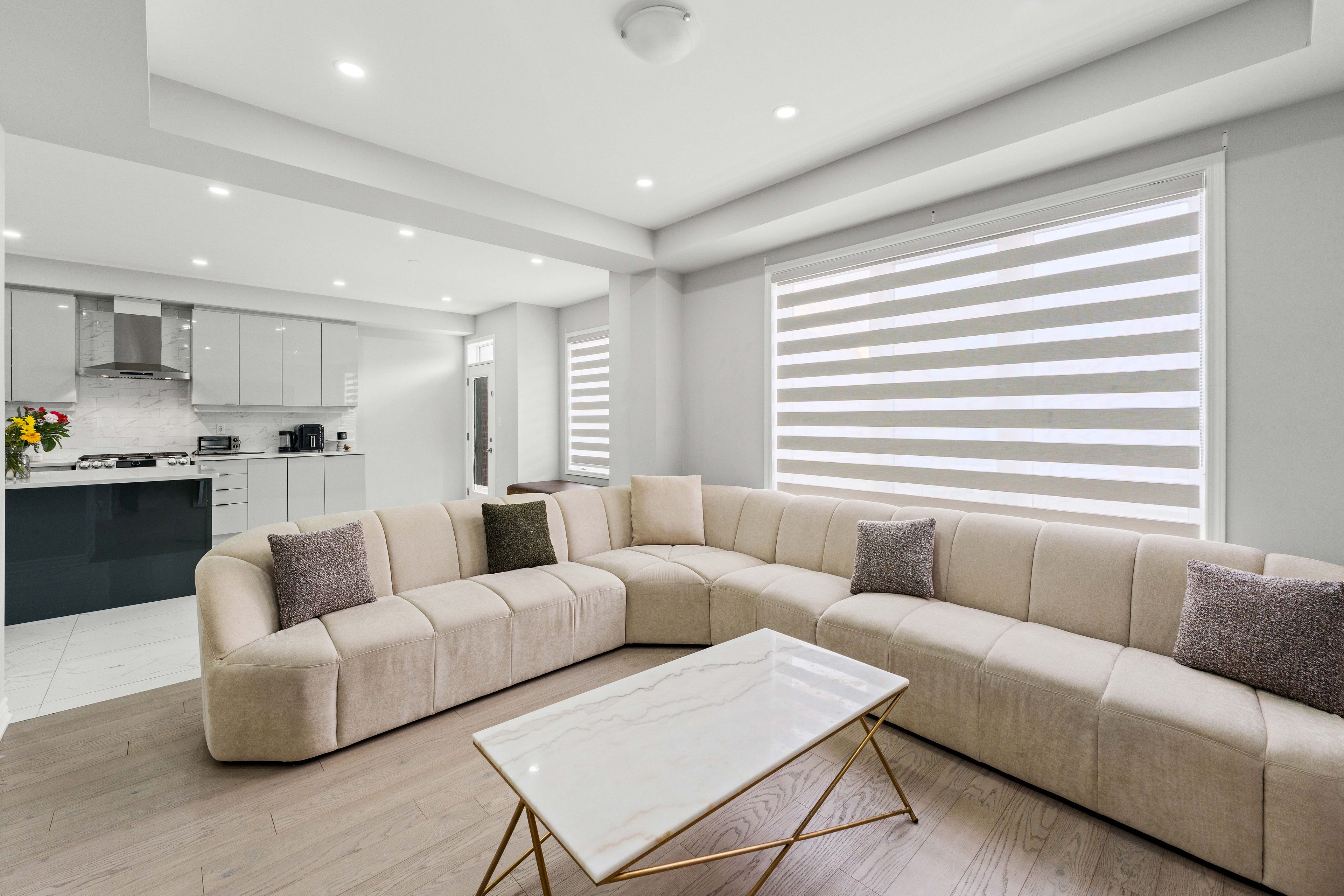 • Modern kitchen with upgraded appliances and a large center island.